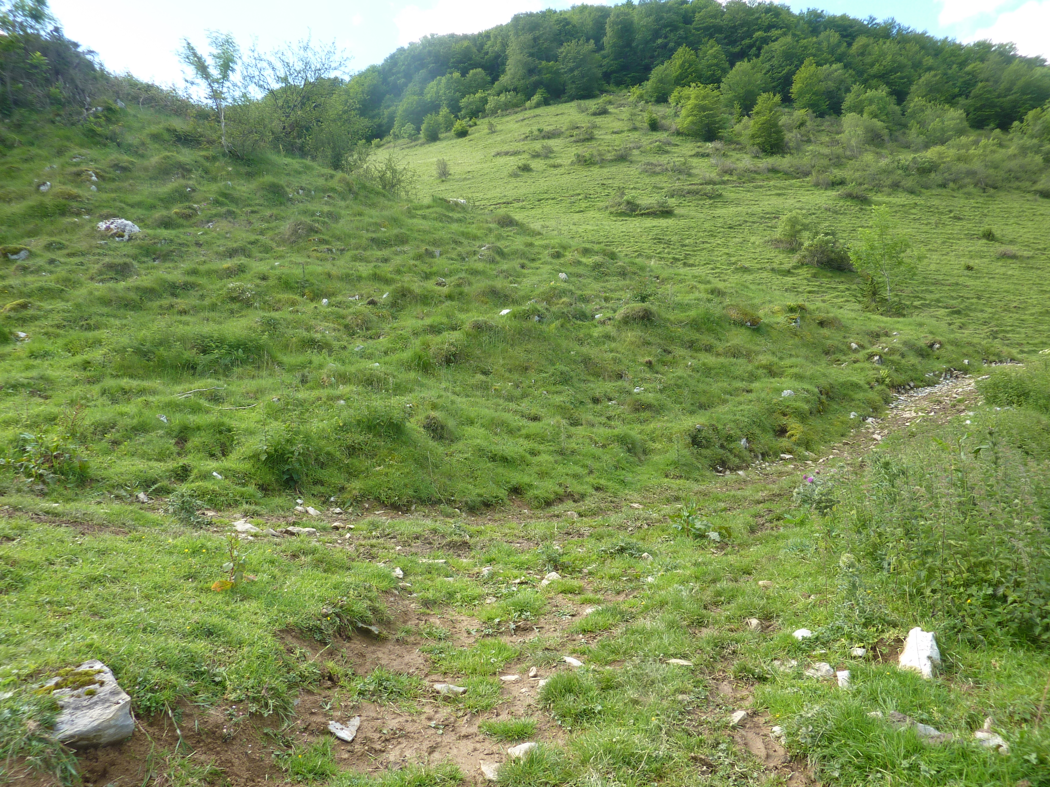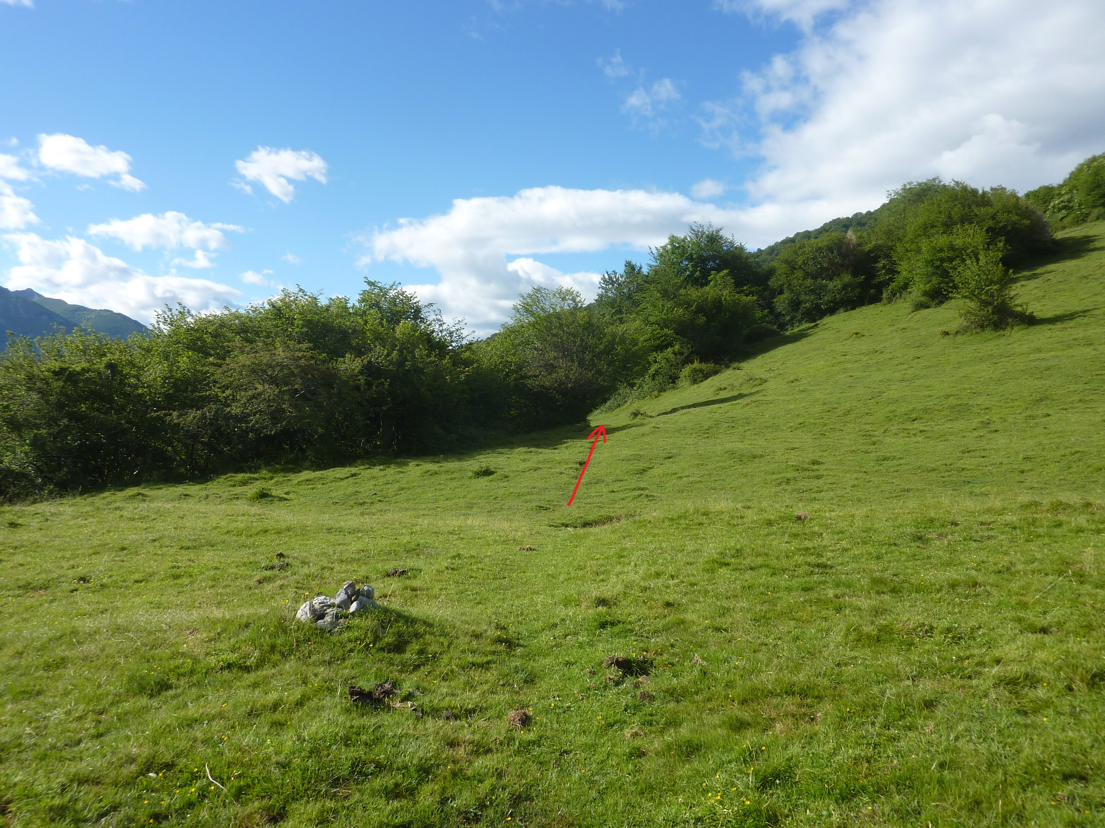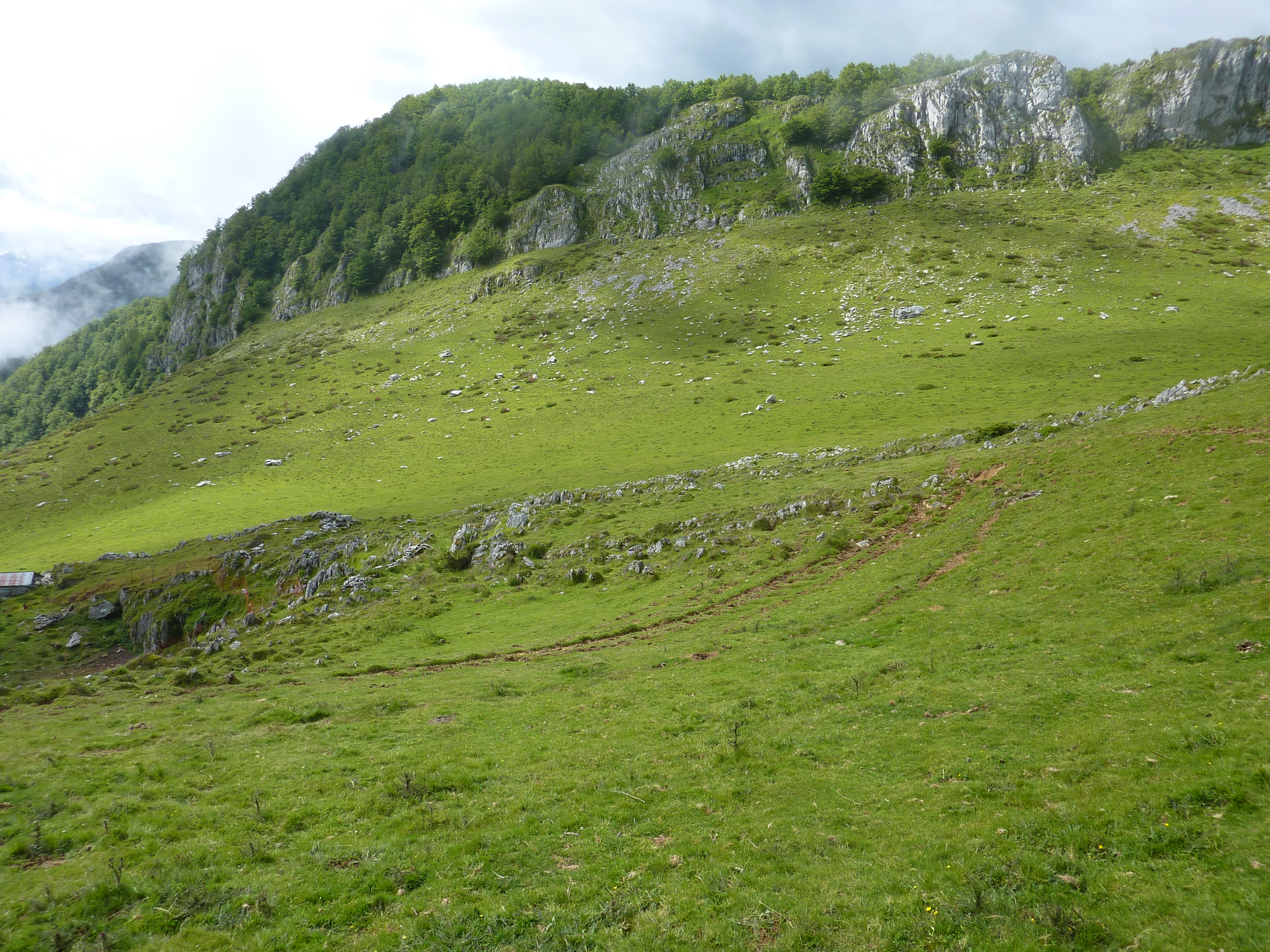 Col d'Isou (847 m) : suivre le chemin montant légèrement sur la droite direction Col d'Arriulé, aucun balisage dorénavant