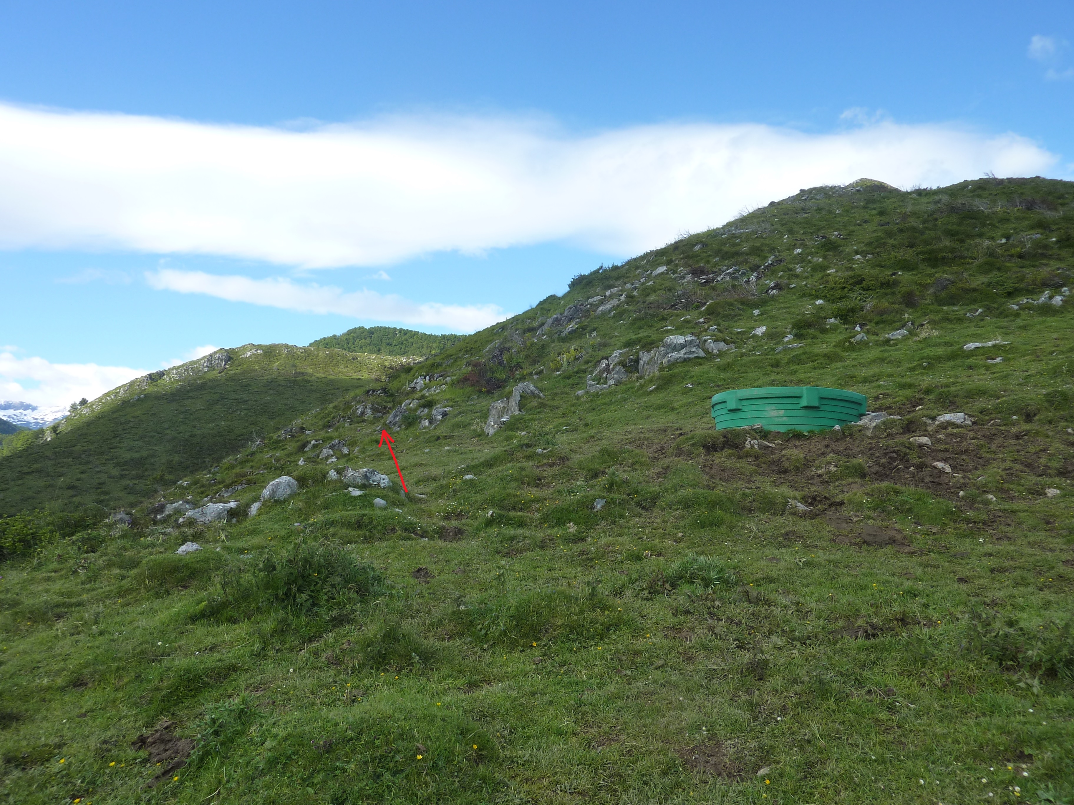 Dès que le chemin sort du sous-bois, suivre le chemin mal tracé (cairné) longeant ce poste de guet de chasseur direction Col d'Arriulé