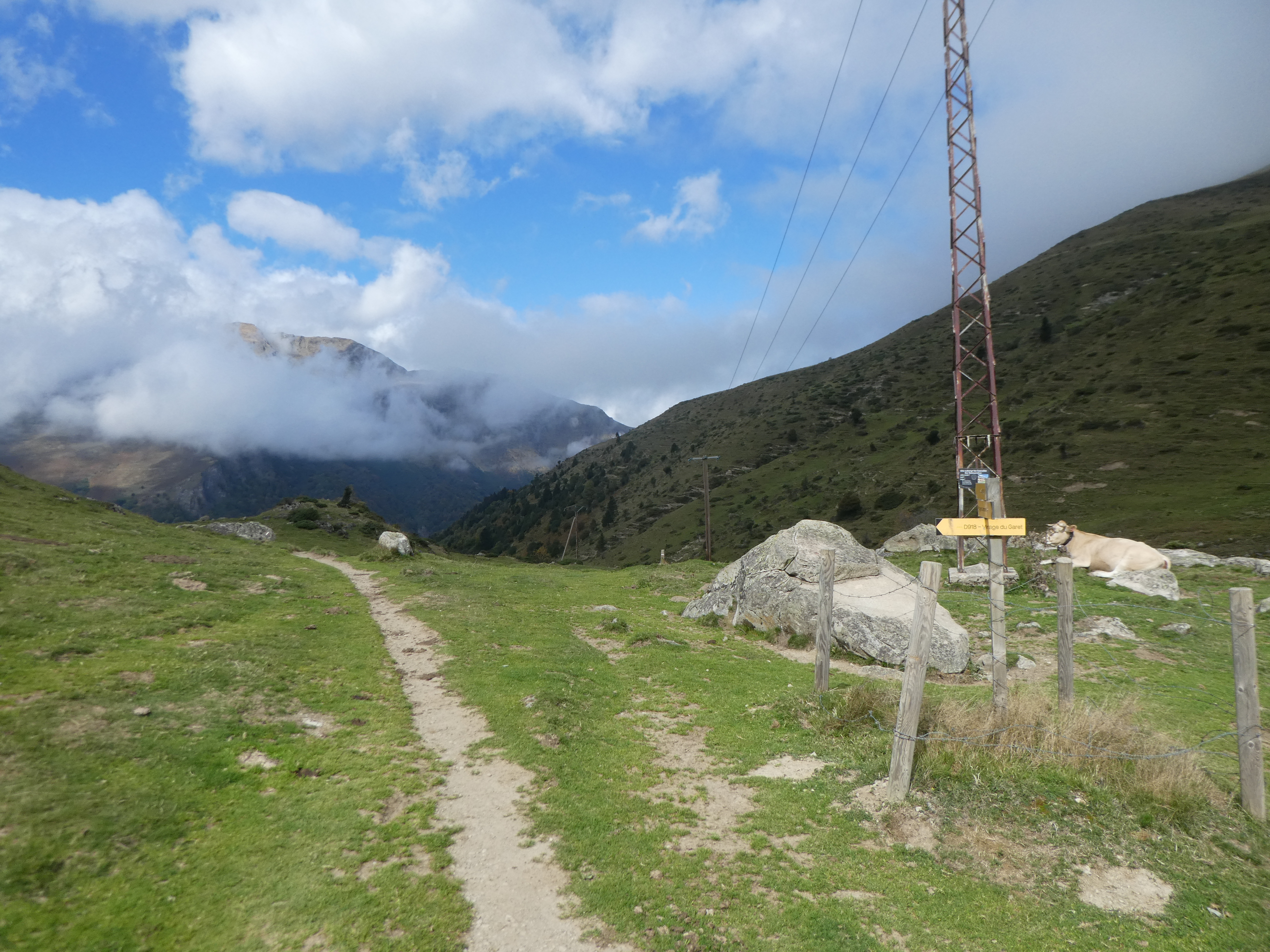 Refuge de Campana de Cloutou (2225 m) : suivre le GR10 accès partant légèrement sur la gauche direction Col de Bastanet, balisé en rouge et blanc