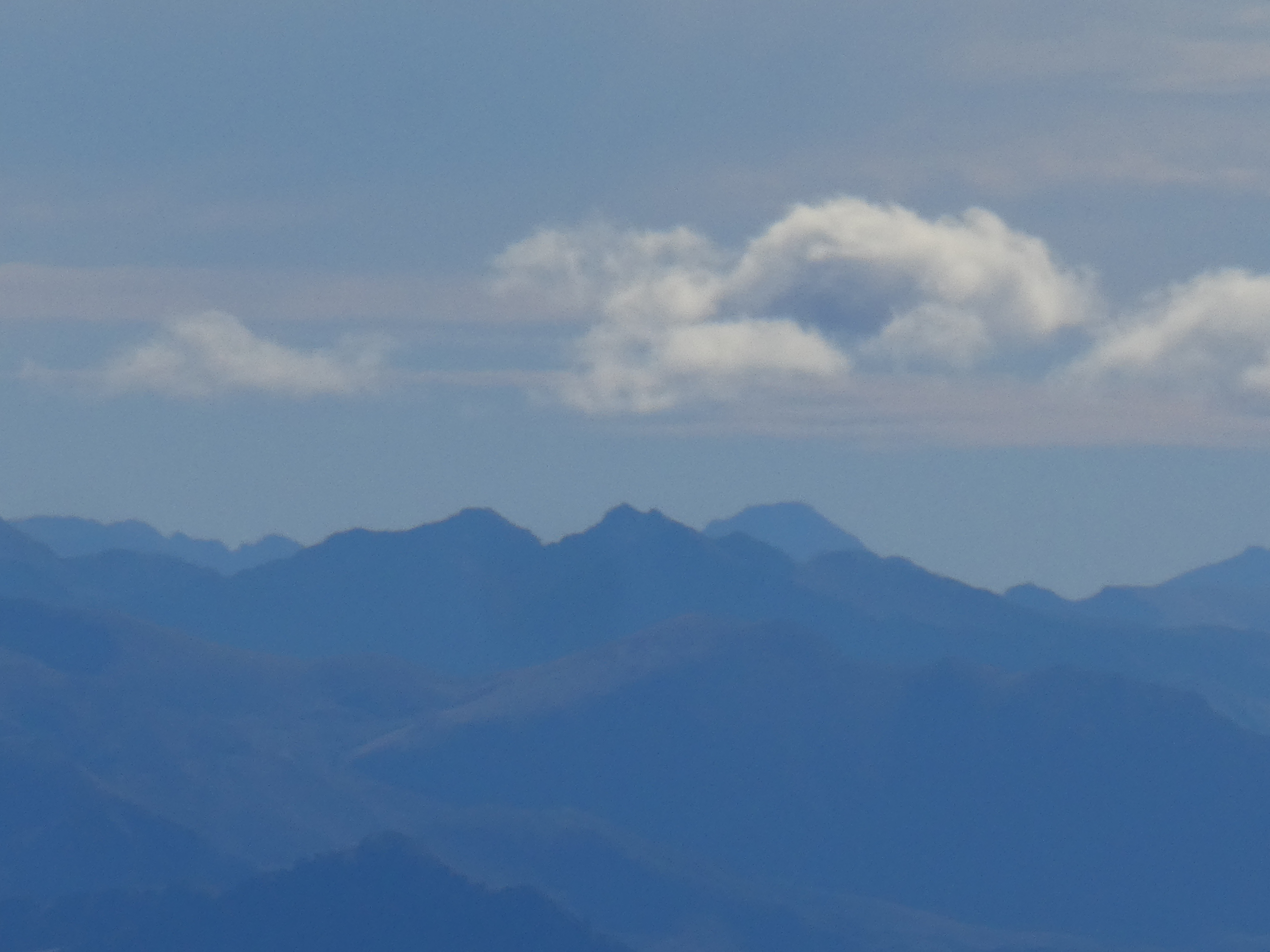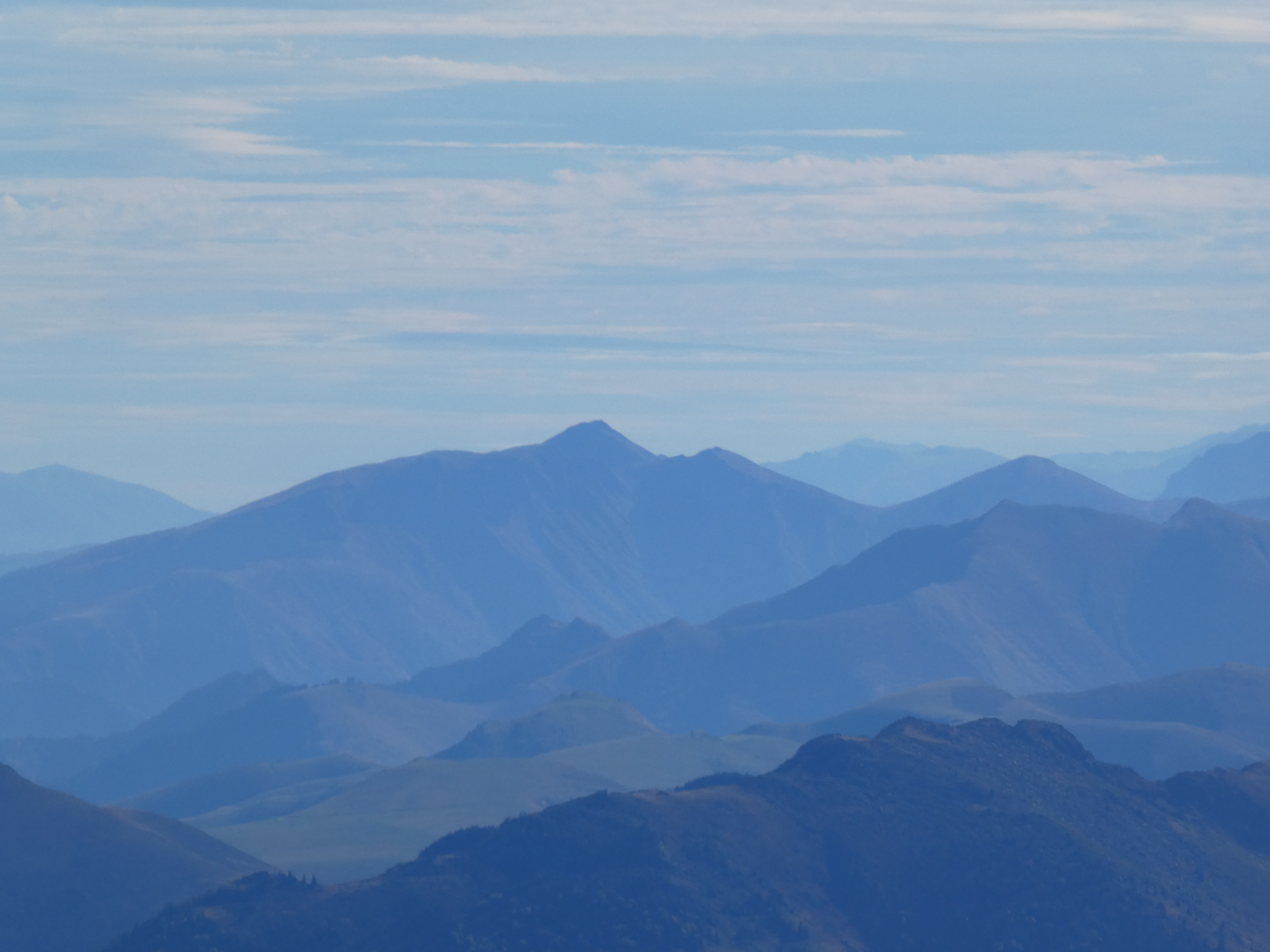 Zoom sur le sommet de Montcoustan (917 m) au centre-gauche et le Pic de Calamane (1363 m) à droite