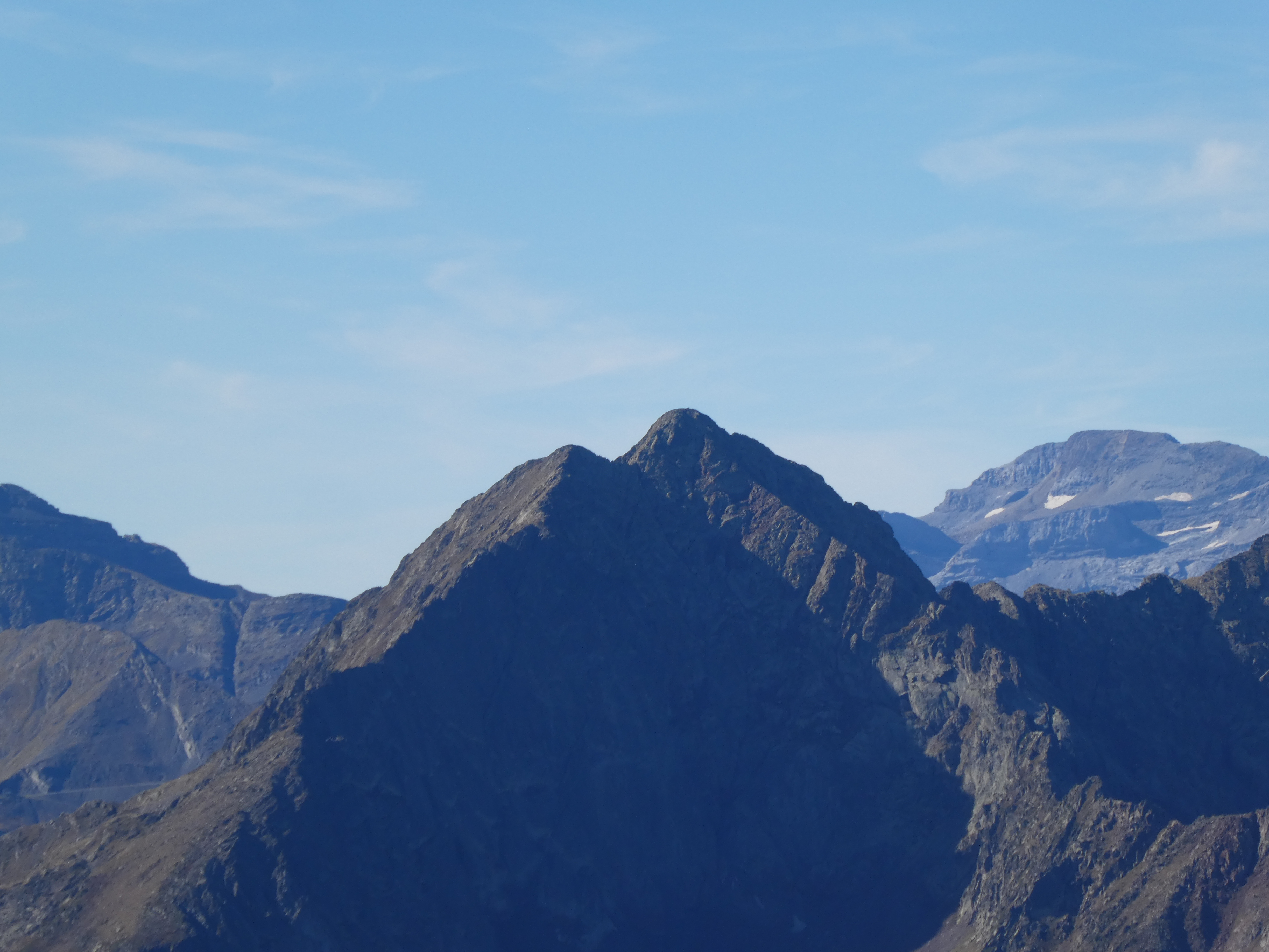 Zoom sur le Pic de Sarroués (2835 m) à gauche, la Punta Suelza (2972 m) au centre, et le Pic d'Arriouère (2866 m) et la Punta Fulsa (2866 m) à droite