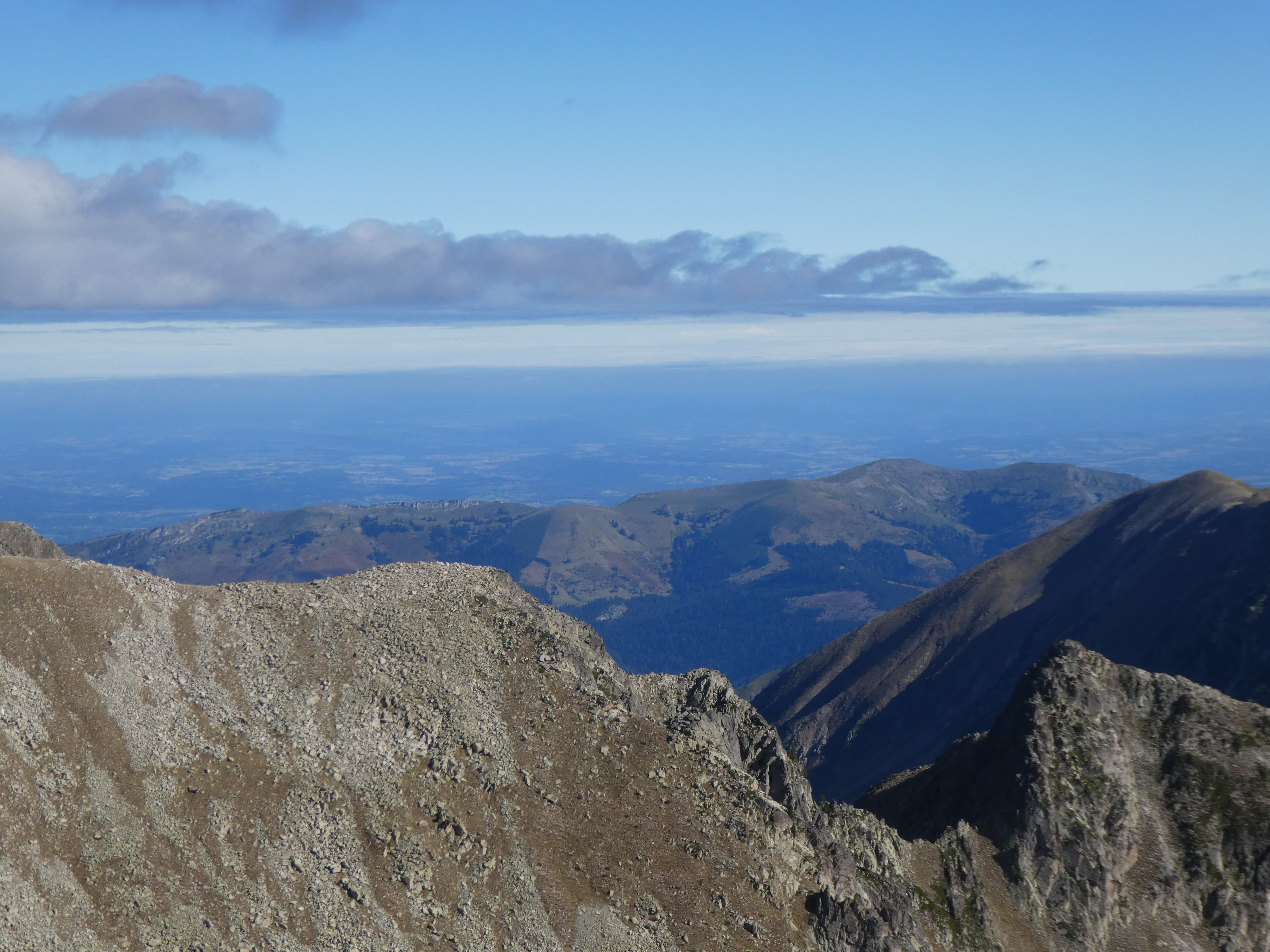 Arrivée au sommet du Pic de Bastan d'Aulon (2721 m) : panorama semblable à celui du Pic de Portarras avec vue plus étendue sur les sommets du Couserans et la plaine bigourdane et haut-garonnaise