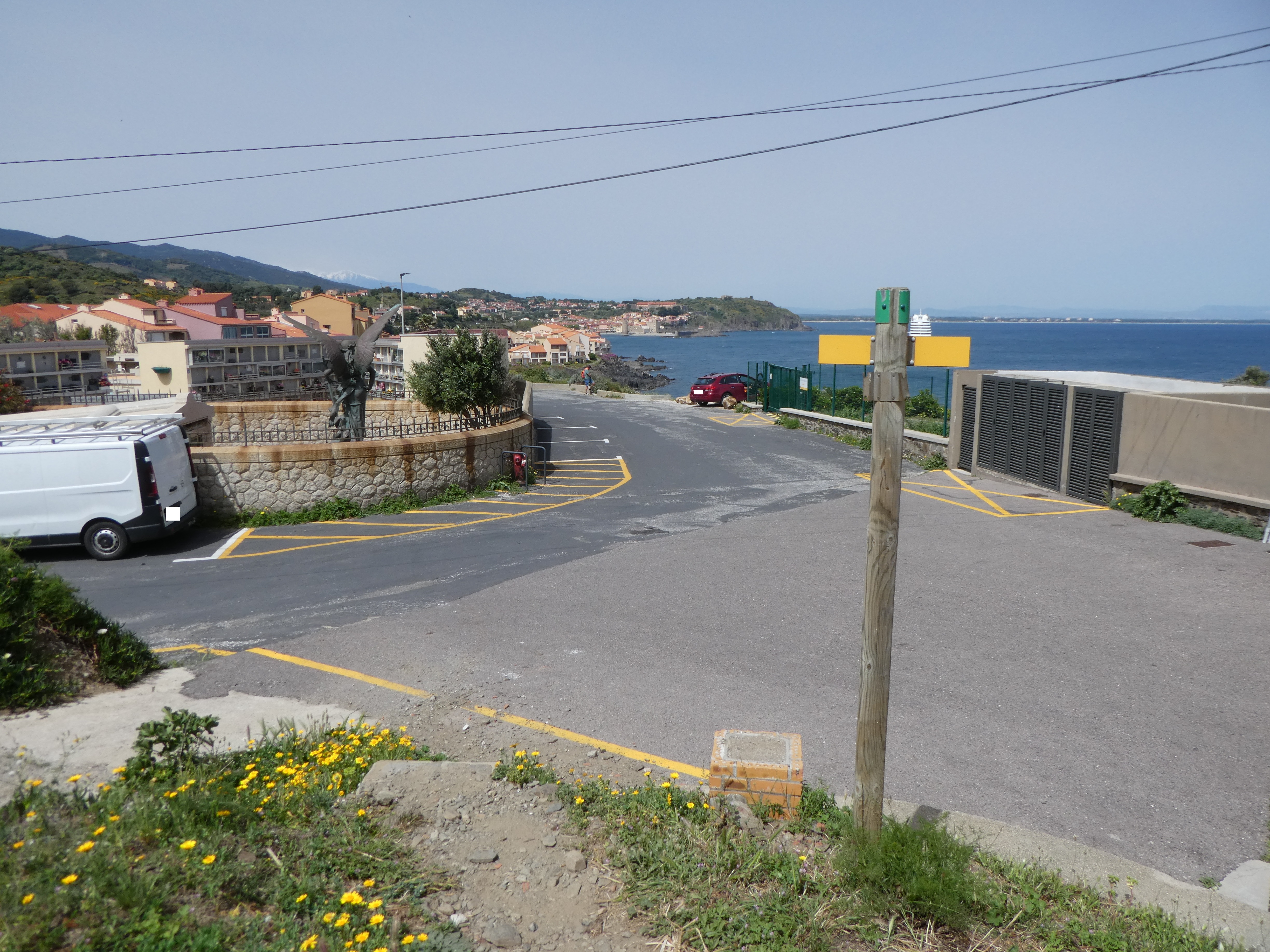 La Moresca (27 m) : suivre la route partant tout droit direction Collioure, balisé en jaune (direction non mentionnée sur le panneau directionnel)