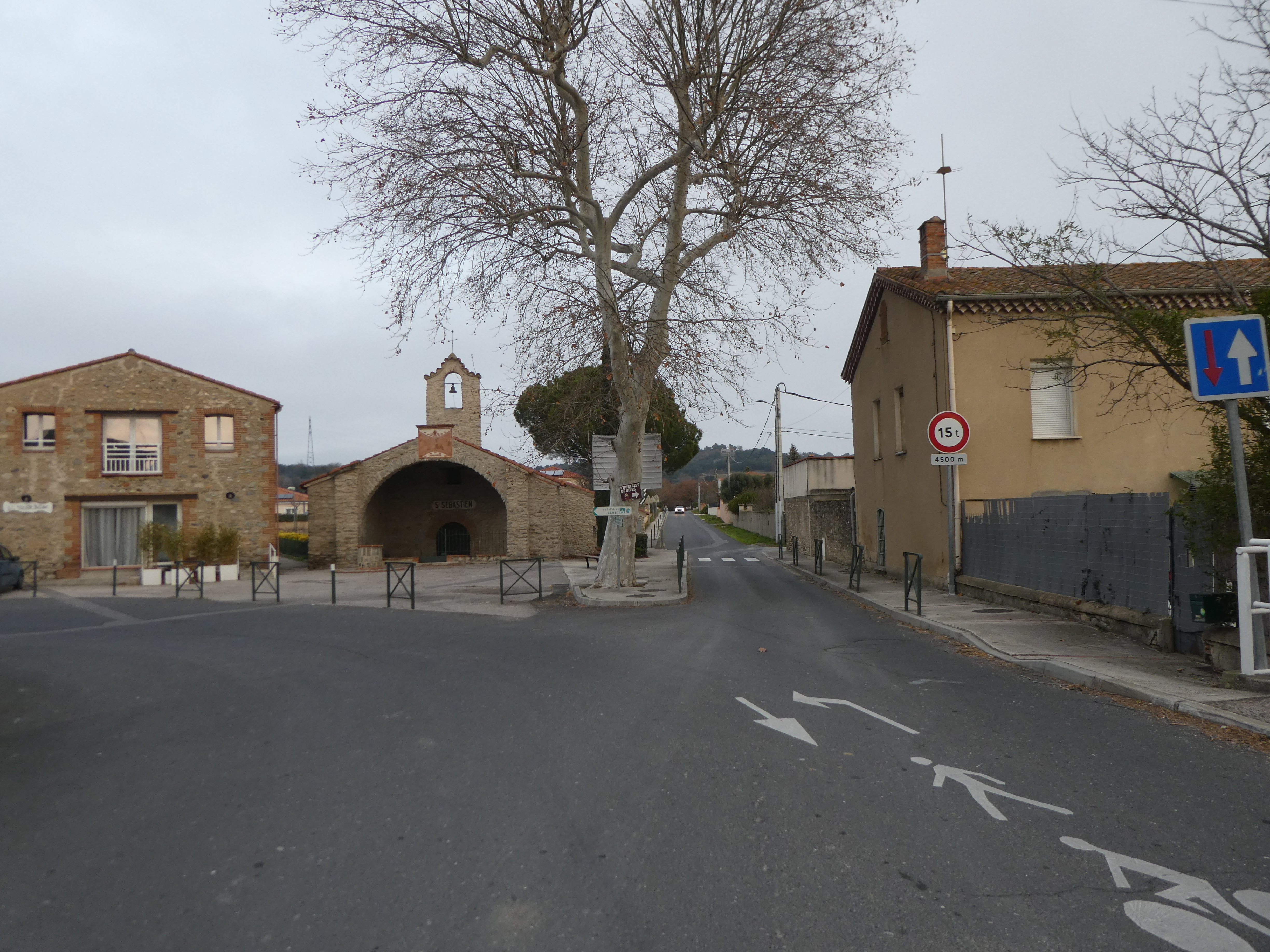 A cette intersection marquée par la présence d'un panneau directionnel (1000 mètres après avoir quitté la Fontaine des Écureuils) (320 m), suivre la rue partant tout droit direction Llauro, balisé en jaune et blanc