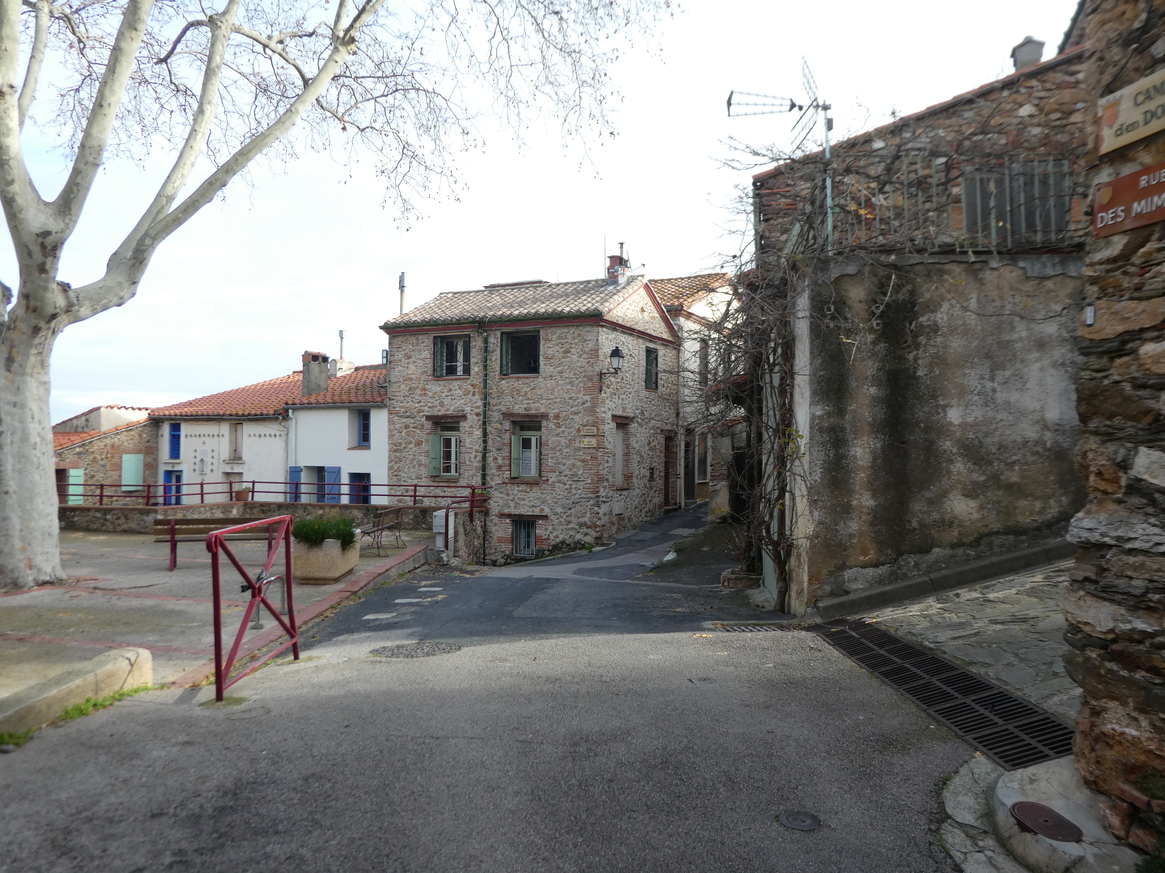 A ce croisement situé au centre-ville de Vivès (3500 mètres après le départ), suivre la rue partant le plus à gauche direction Llauro (par le Sentier du Liège), balisé en jaune et blanc dorénavant (ignorer la croix jaune peinte sur le muret de droite)