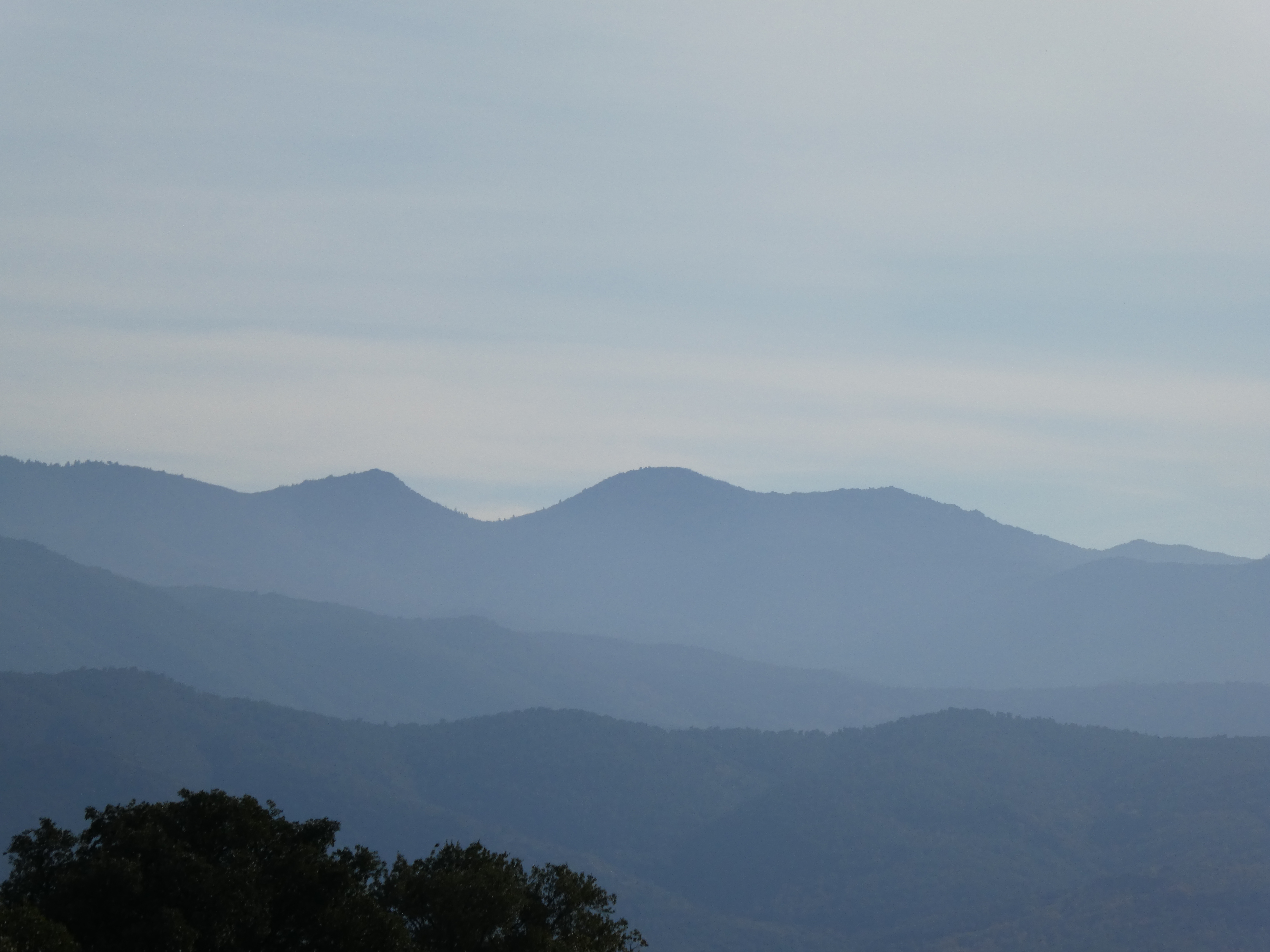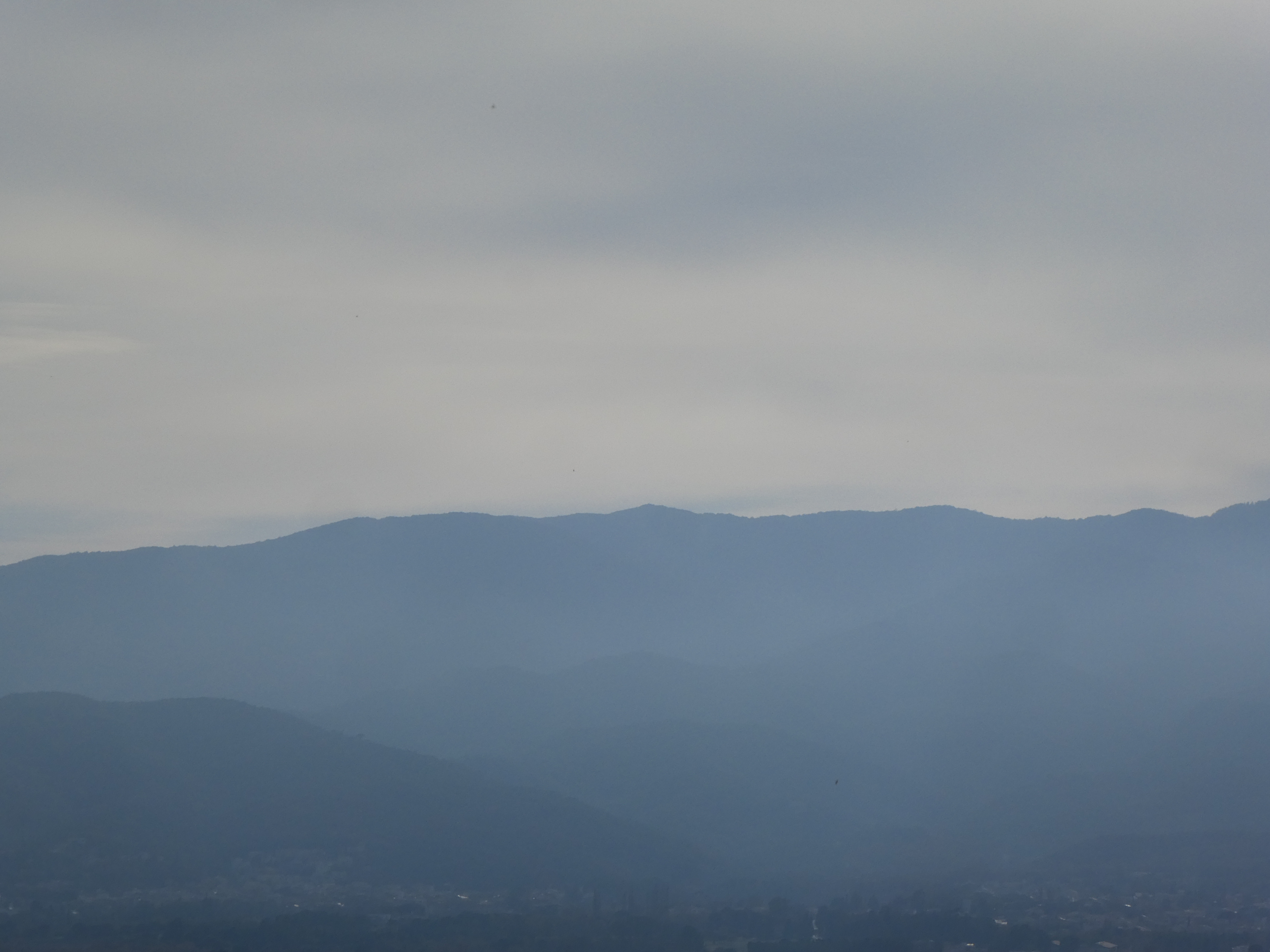 Zoom sur le Mont Falgars (1611 m) au centre-gauche et le Puig de Montesquiu (1580 m) au centre-droit