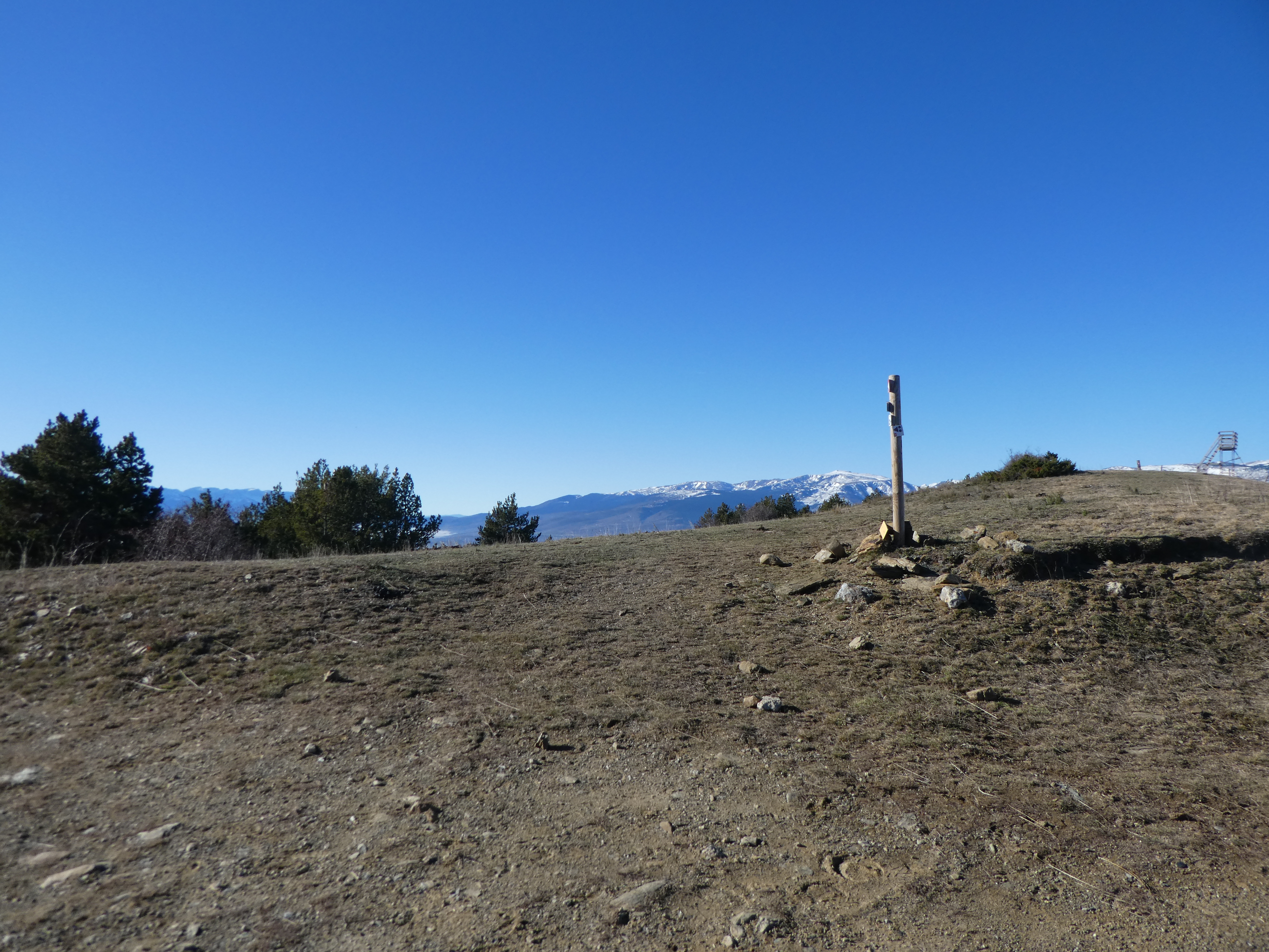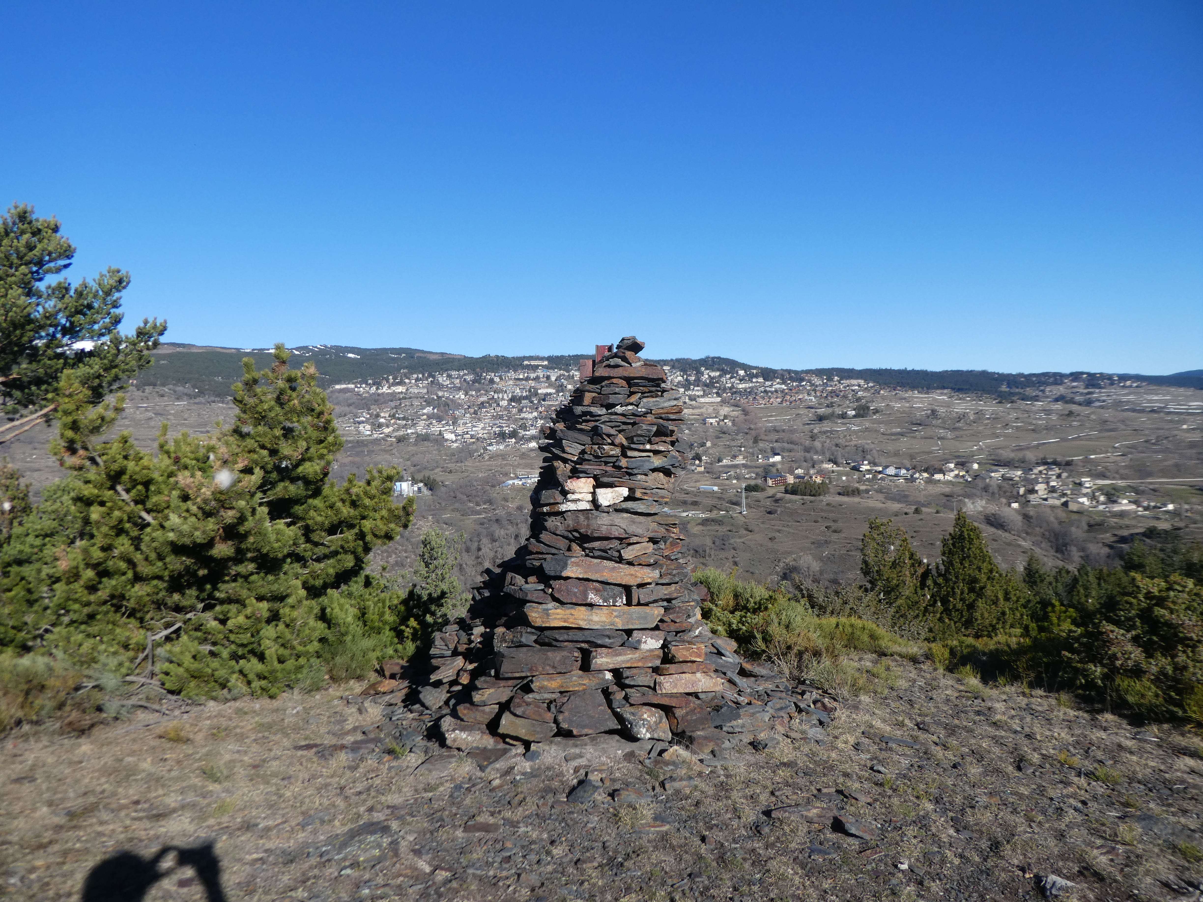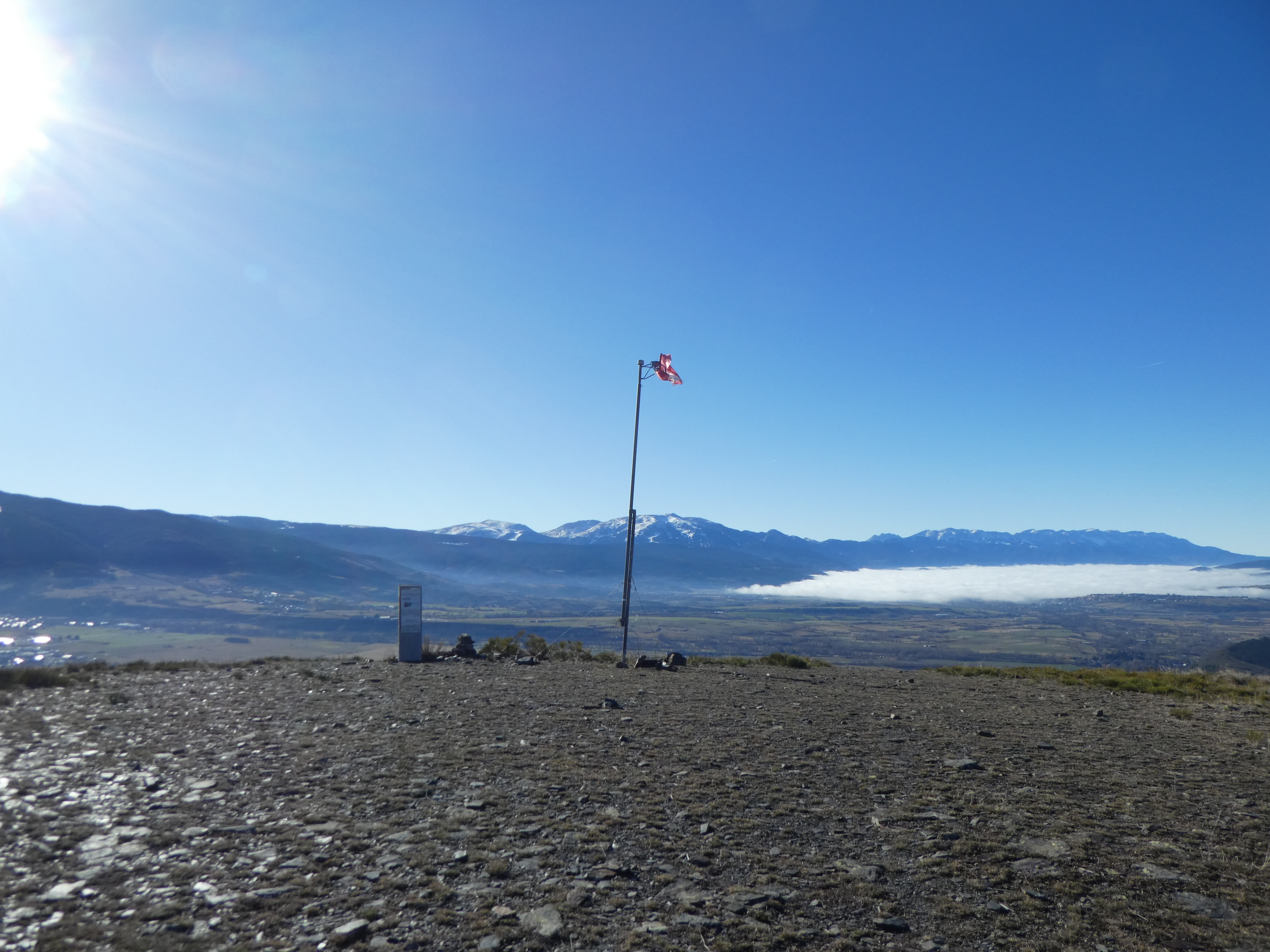 Arrivée au sommet du Puig de Llívia (1359 m) : beau panorama sur les sommets de la Cerdanya, de la Haute-Cerdagne, du Haut-Conflent ainsi que sur la Vall del Segre