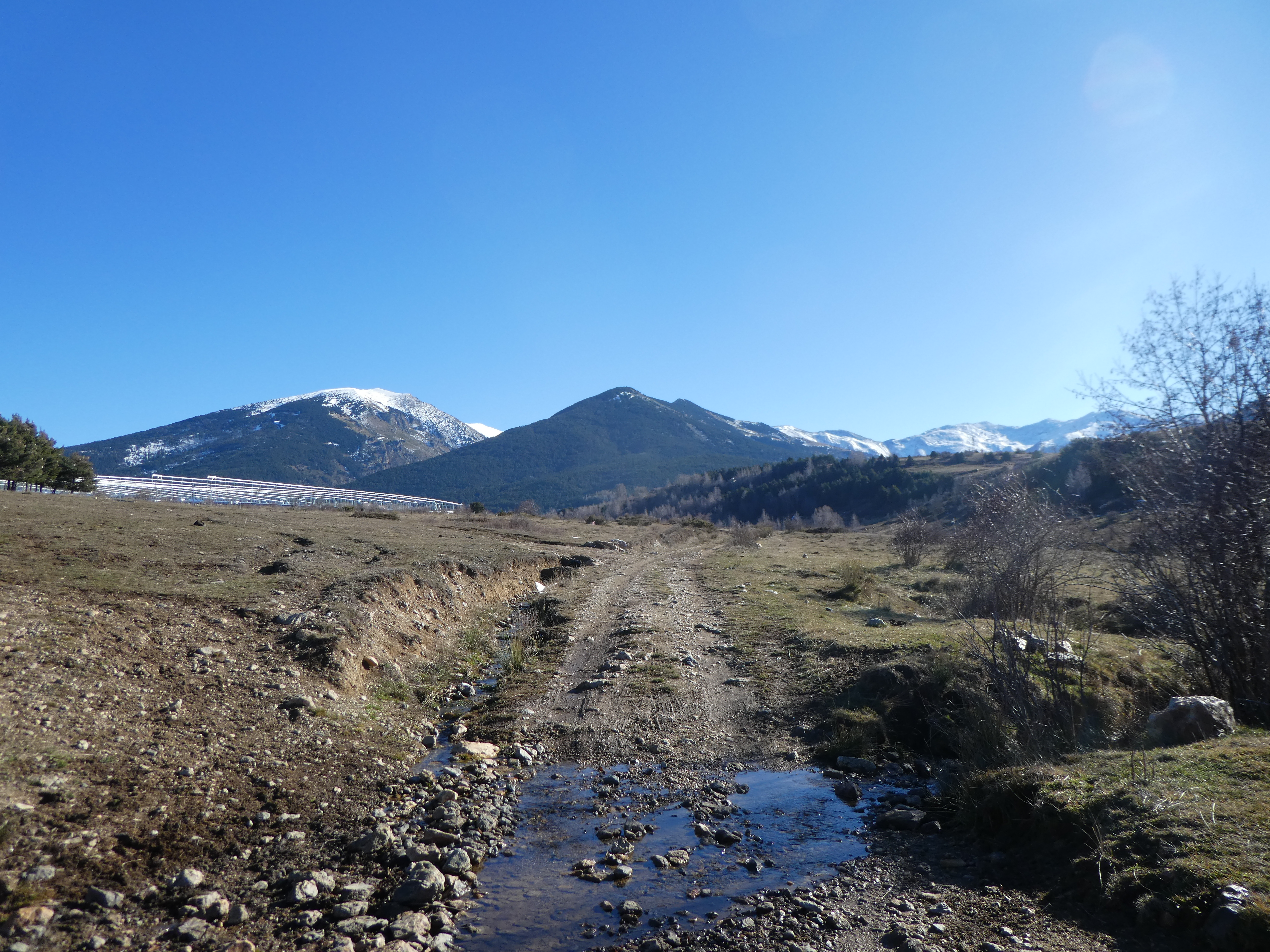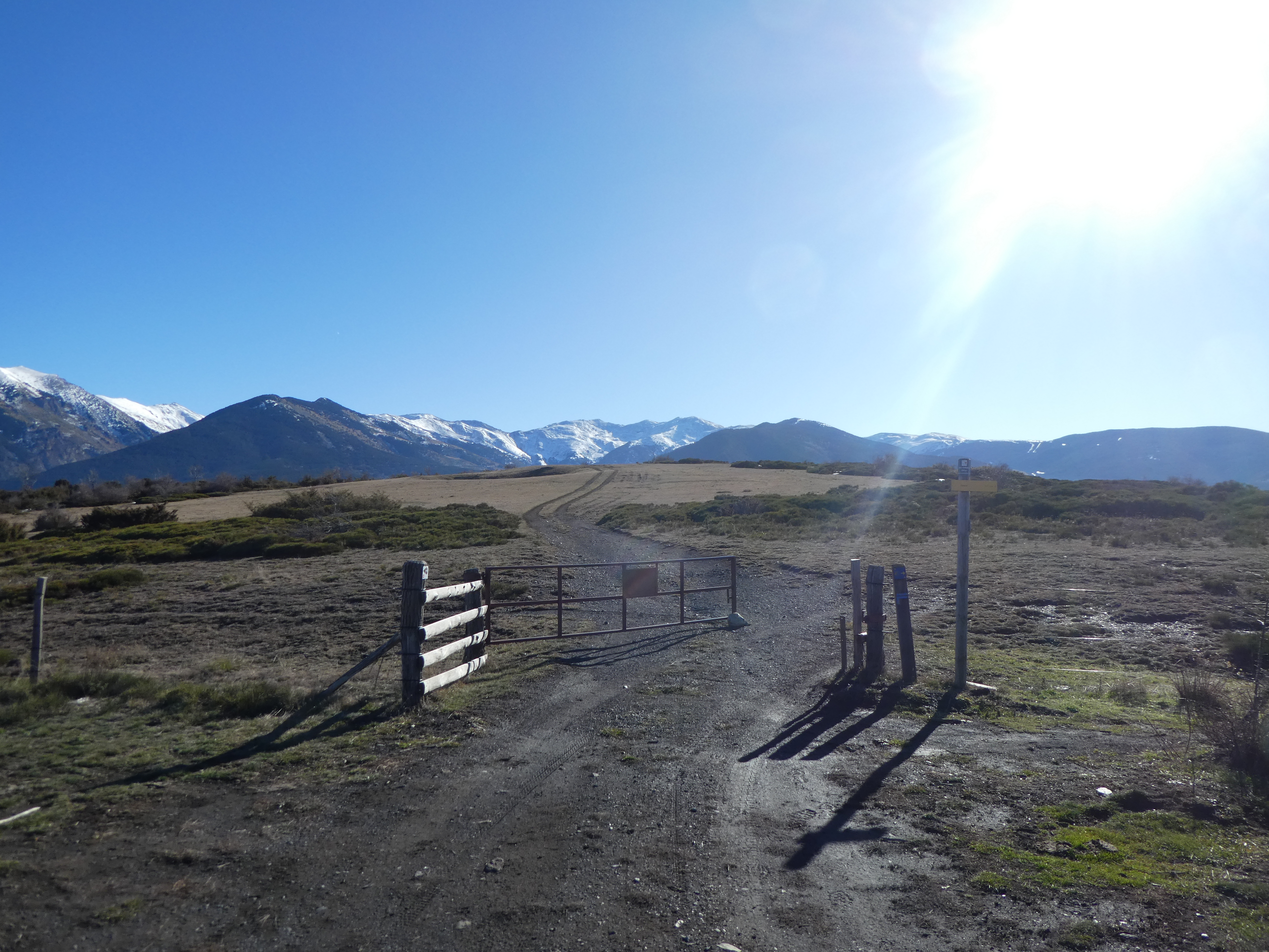 A ce croisement avec la N116 (300 mètres après le précédent) (1322 m), suivre le chemin partant légèrement sur la gauche en face de la route direction Llívia, balisé en jaune (prudence lors du franchissement de la N116)