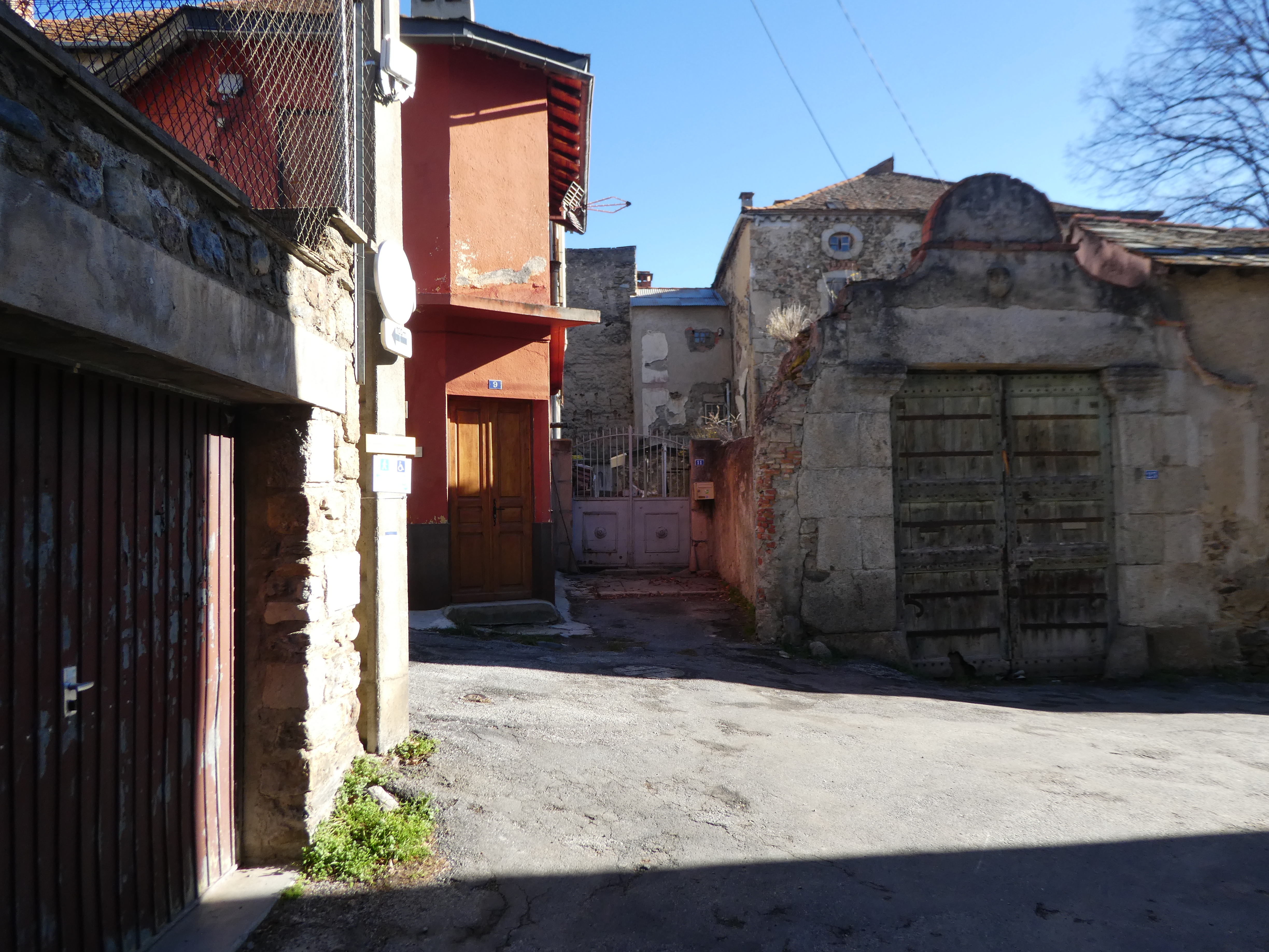 A cette intersection avec le GR36 située au centre de Vedrinyans (300 mètres après le précédent croisement mentionné), suivre la ruelle partant tout droit direction Err, balisé en rouge et blanc, et en jaune dorénavant