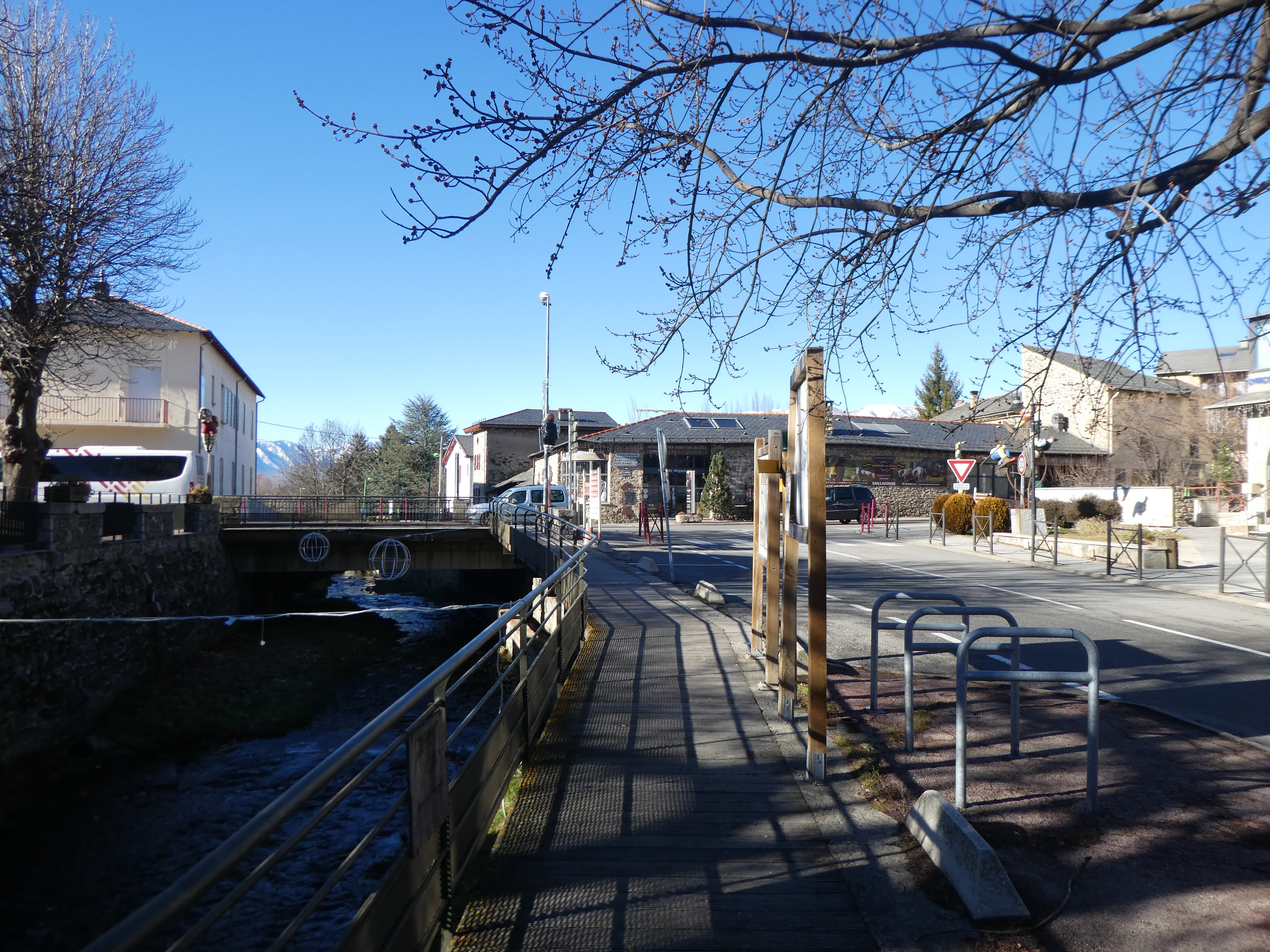 A cette intersection avec la N116 située au niveau du restaurant "Planès" (200 mètres après la précédente mentionnée), suivre la rue partant tout droit direction Saillagouse, balisé en jaune
