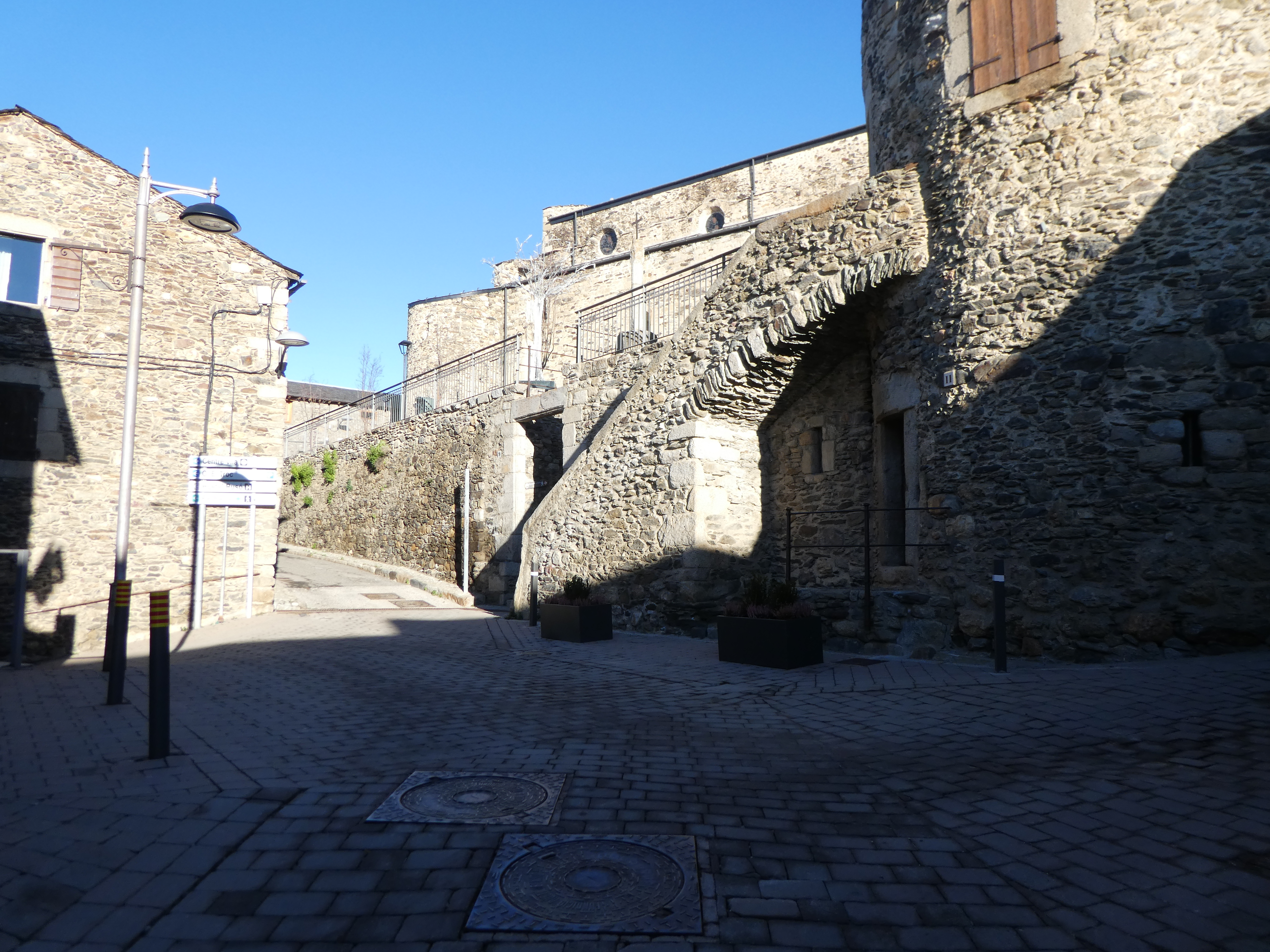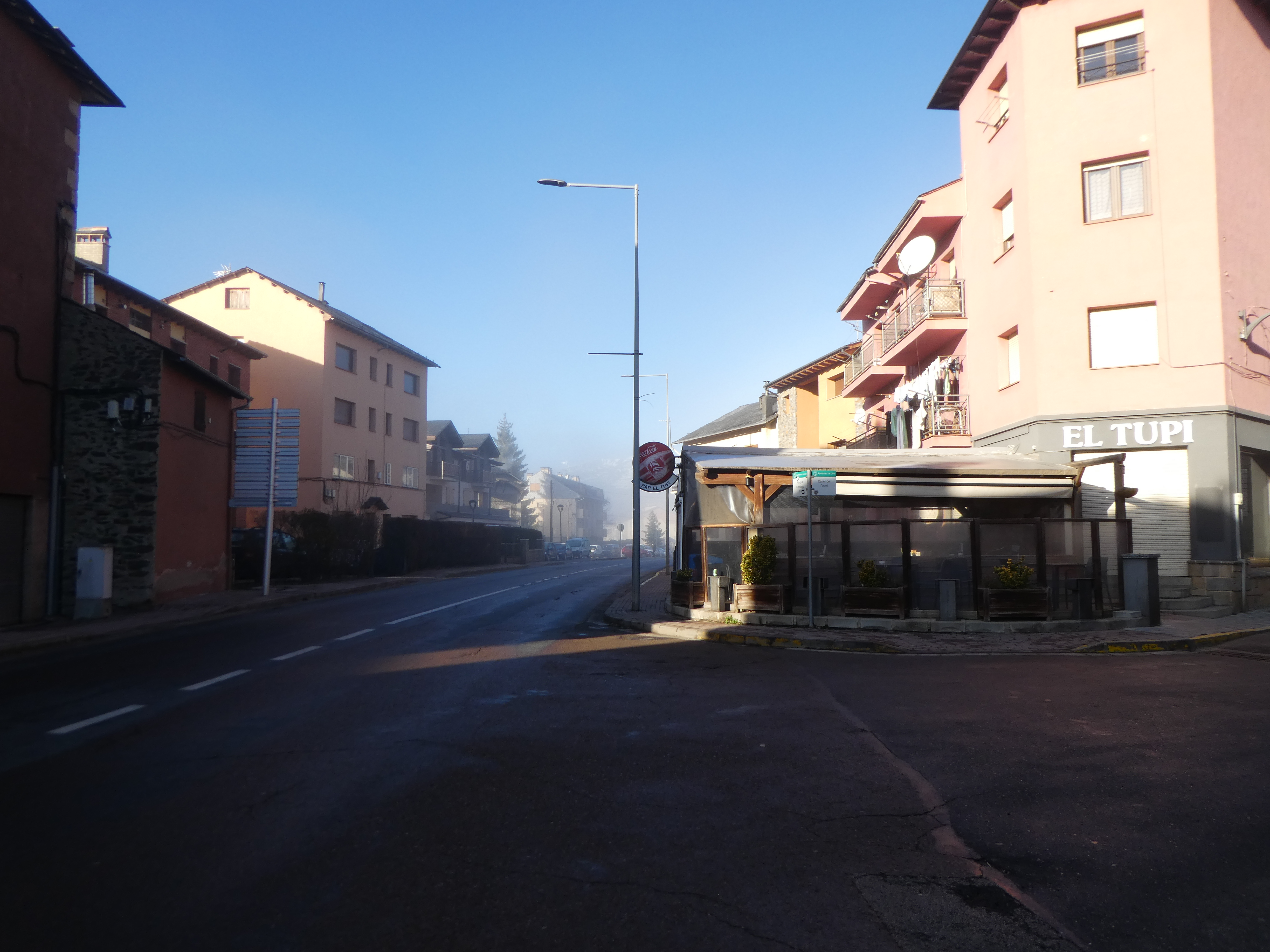 A cette intersection située au niveau du bar "el Tupi" (250 mètres après le précédent croisement), suivre la rue partant sur la droite direction Puig de Llívia, balisé en jaune dorénavant (bien suivre les balises jaunes pour arriver jusqu'à la mairie)