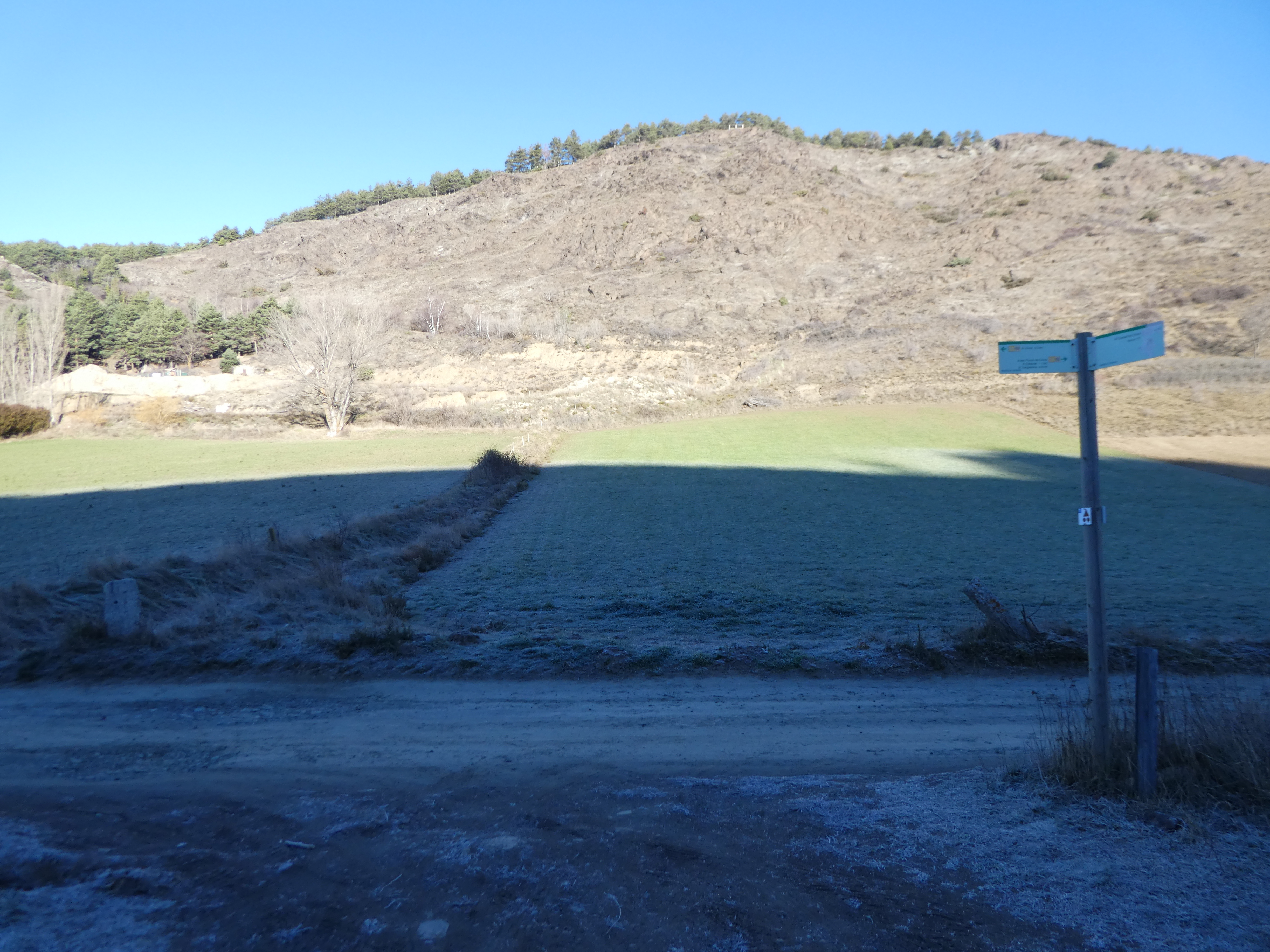 Départ Saillagouse (1304 m) : suivre la rue partant tout droit direction Vedrinyans, balisé en jaune (direction non mentionnée sur le panneau directionnel)
