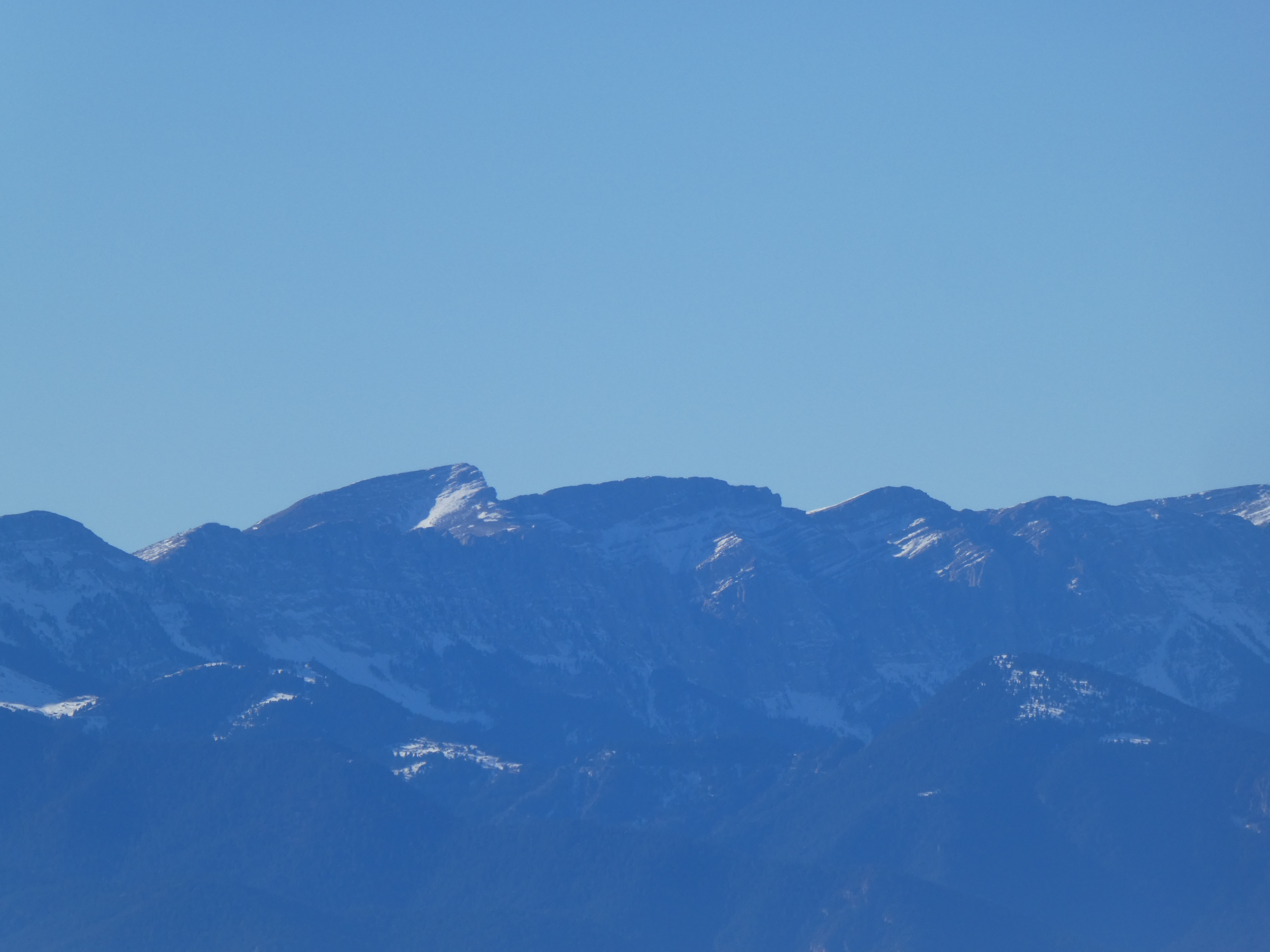 Zoom sur la Pica del Quer (2288 m) au centre-gauche et la Serra dels Clots (2544 m) au centre-droit