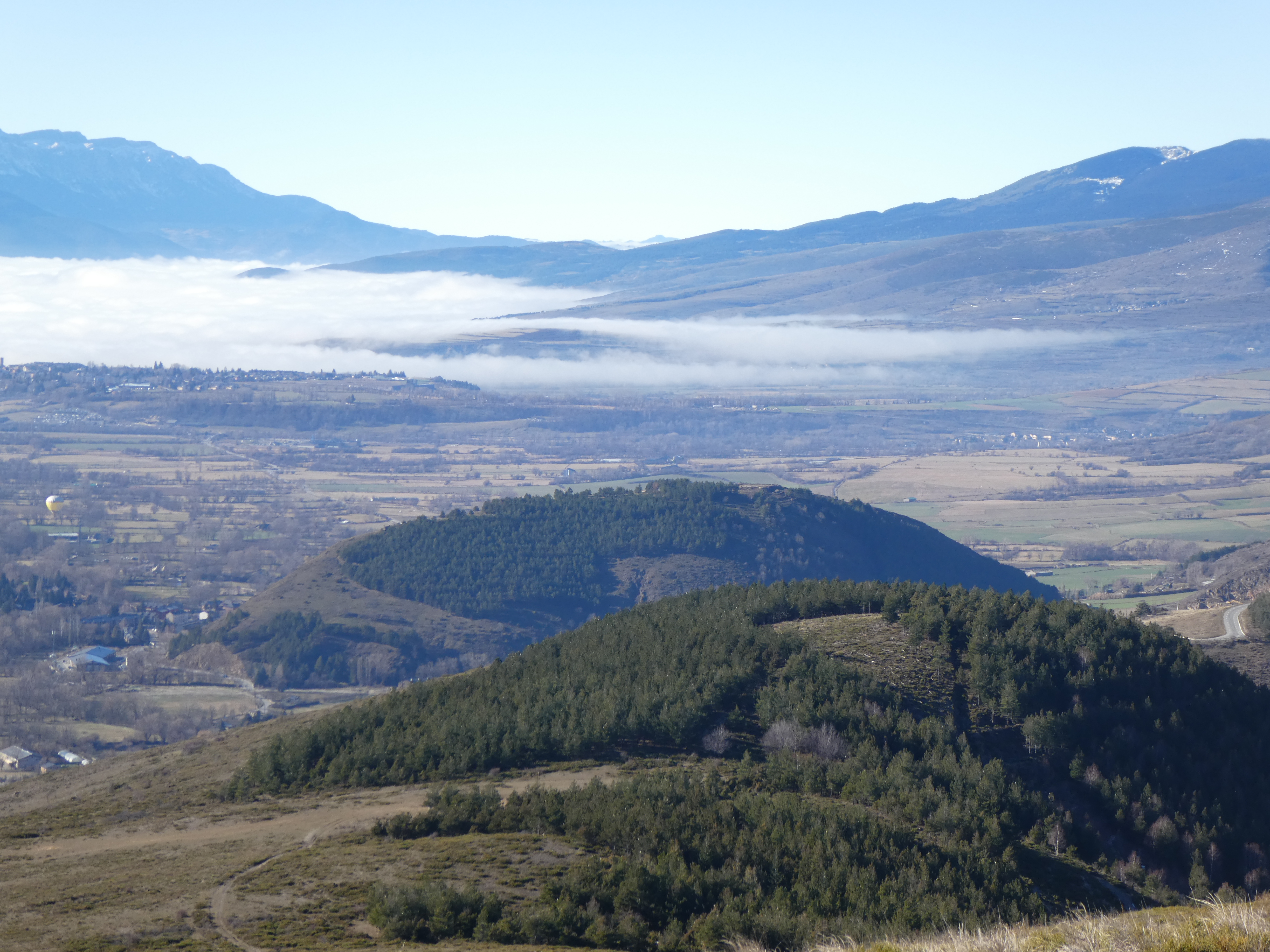 Arrivée au sommet de l'Hippopotame (1582 m) : beau panorama sur les sommets du Haut-Conflent, de la Cerdagne, de la Cerdanya ainsi que sur la Vallée du Sègre