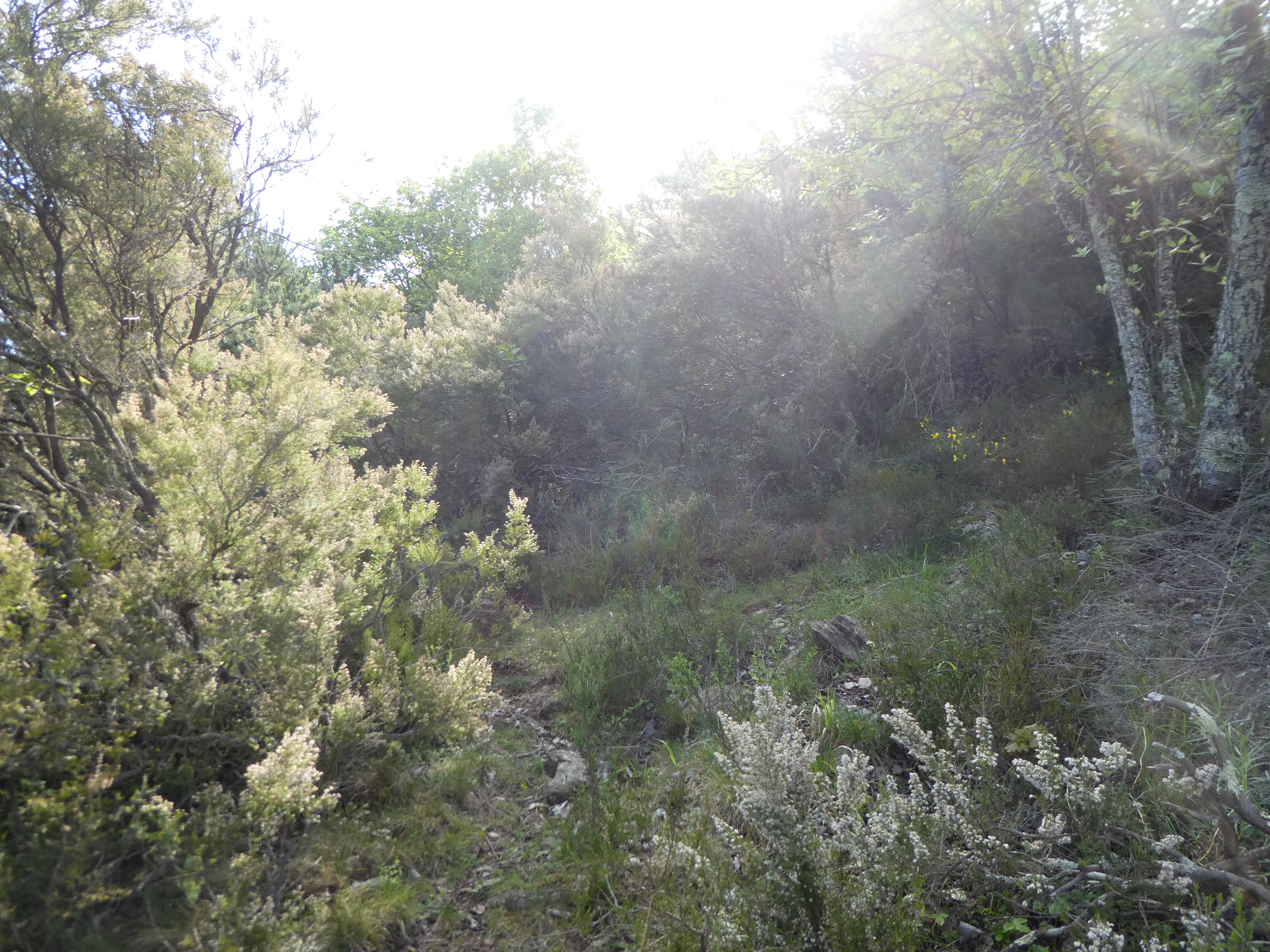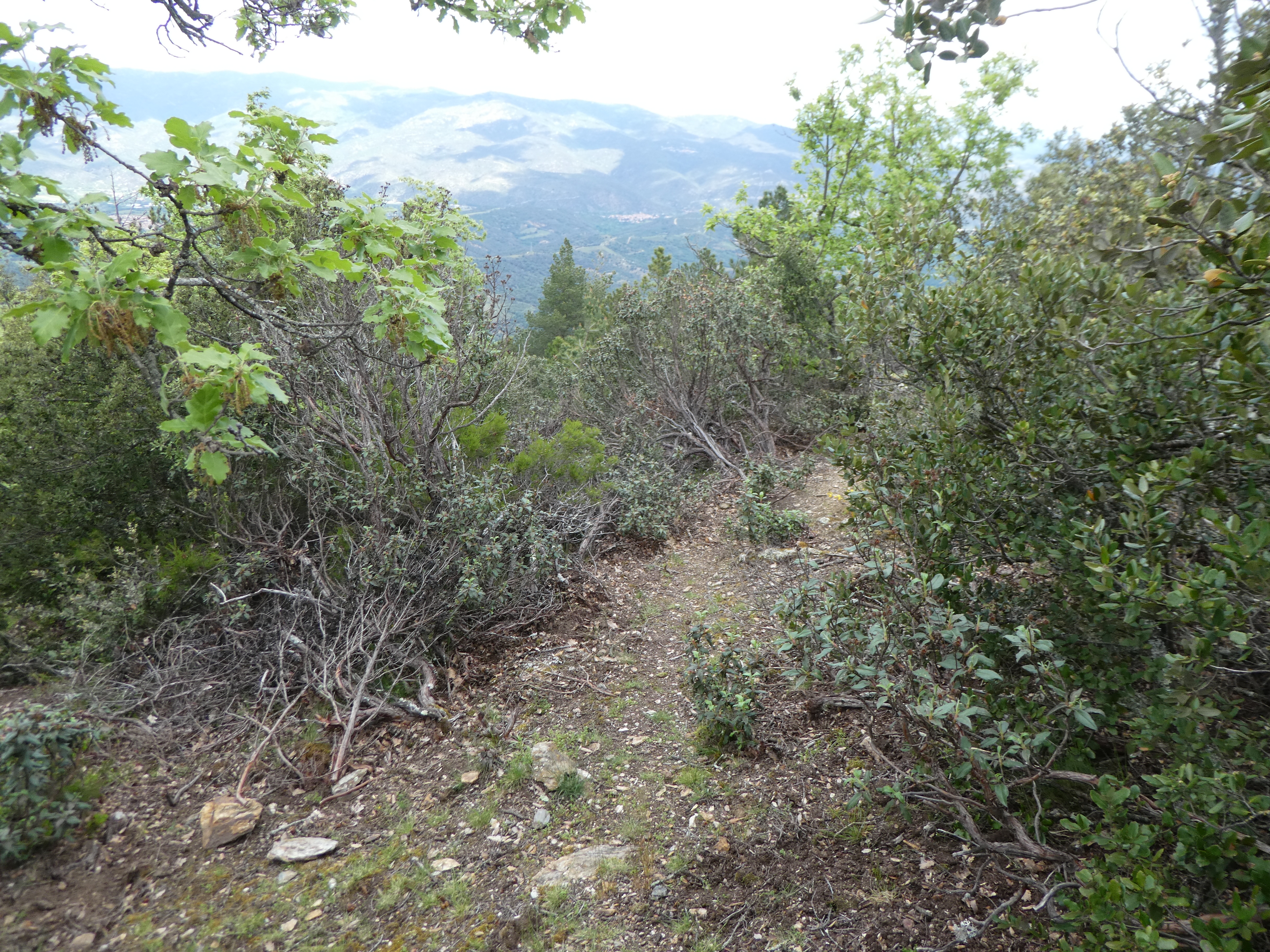 Le sentier très discret et raide de montée vers le Puig dels Moros