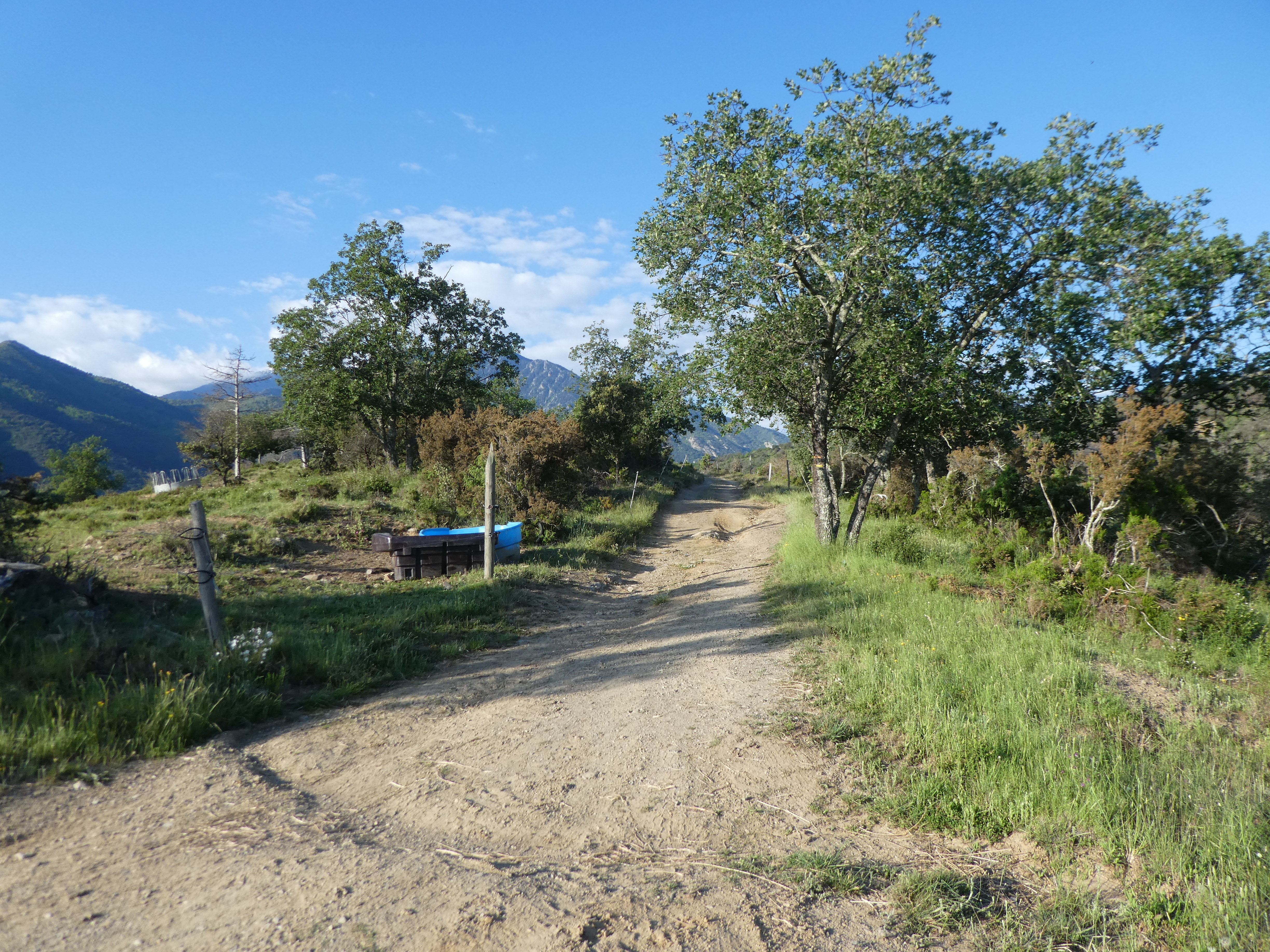 A ce croisement situé au niveau de la mairie d'Espira-de-Conflent (700 mètres après la précédente intersection mentionnée), suivra la D55a partant tout droit direction Coll dels Grecs, balisé en jaune dorénavant (bien suivre les balises jaunes pour sortir du village)
