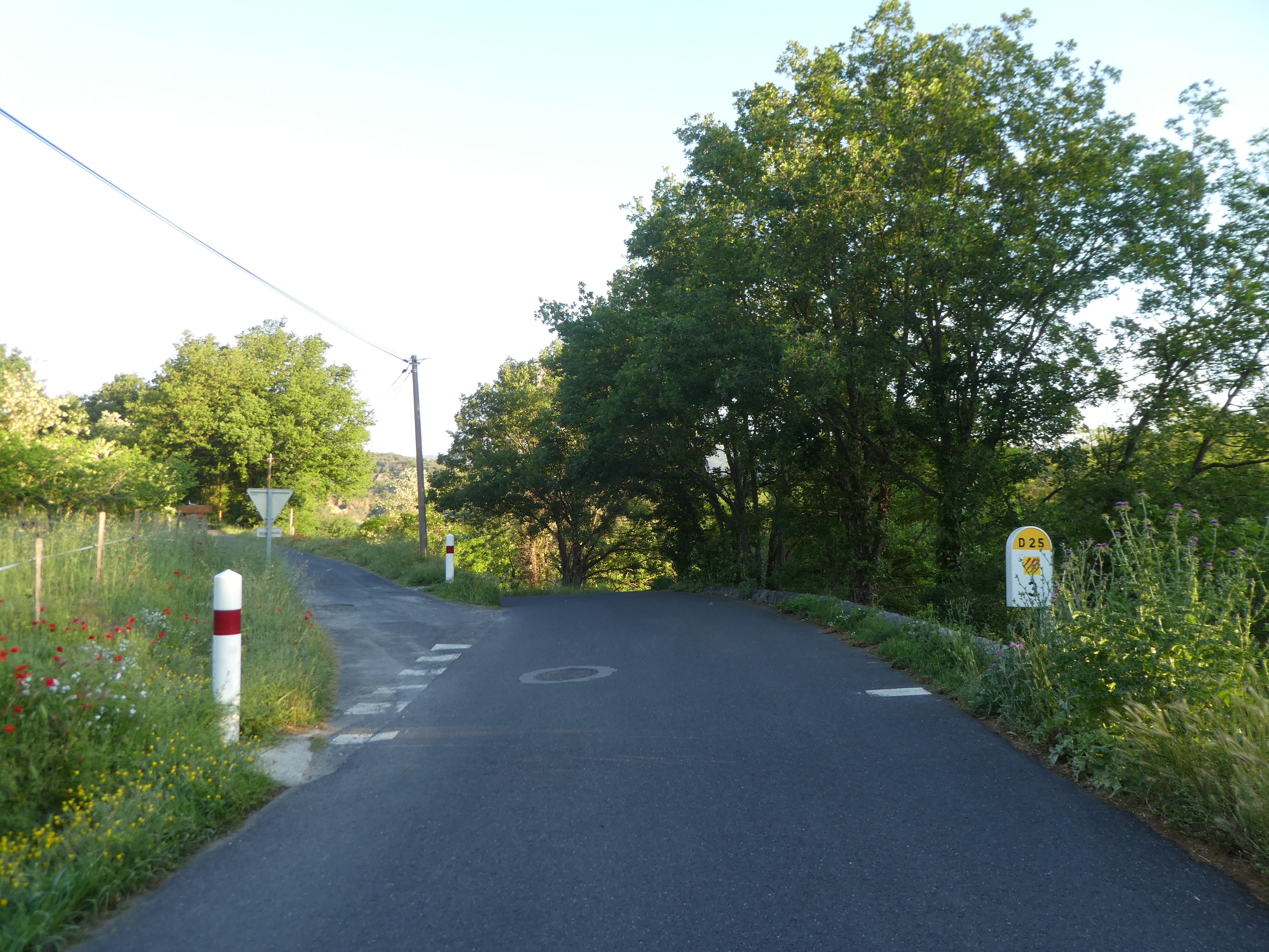 A cette intersection (500 mètres après le lieu-dit "Finestret") (294 m), quitter la D25 partant tout droit pour suivre la route partant sur la gauche direction Espira-de-Conflent