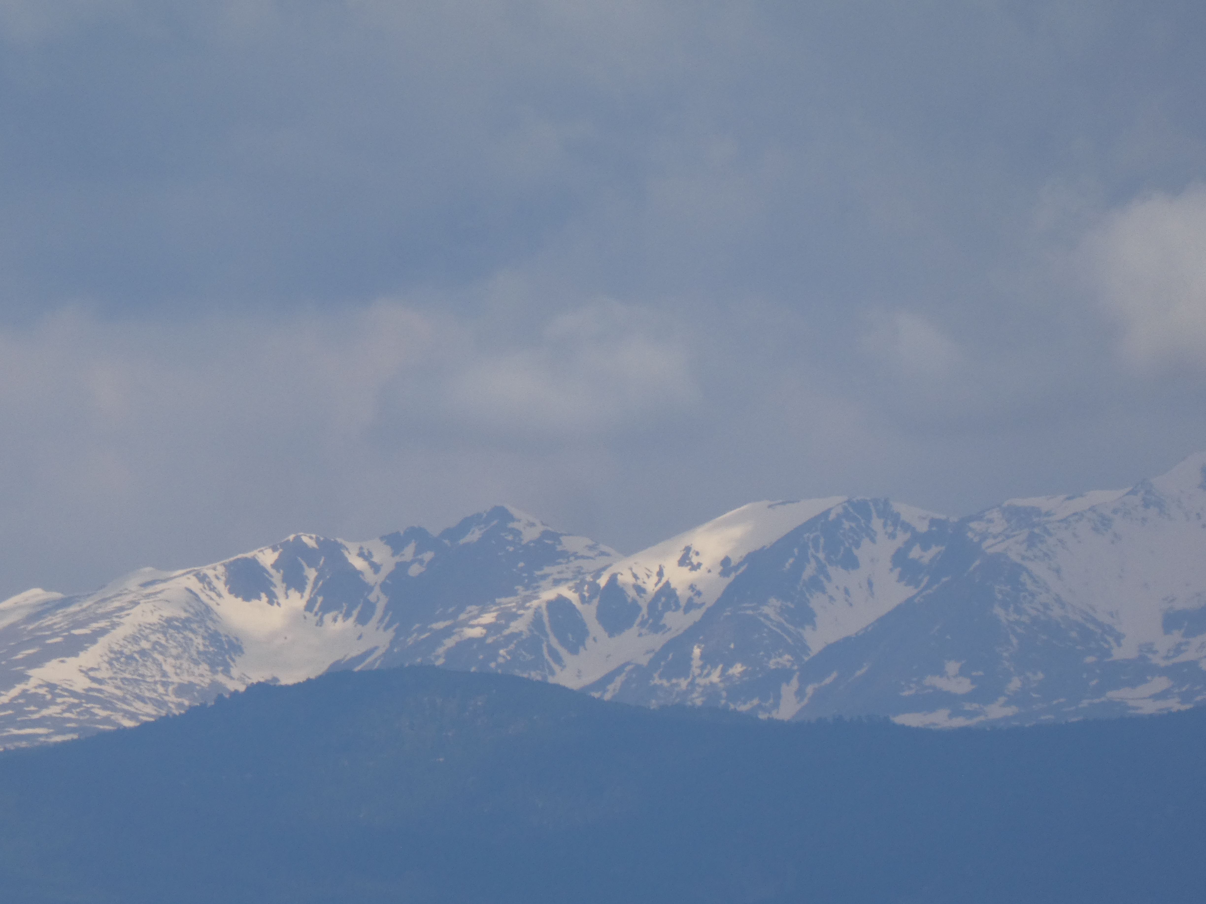 Zoom sur le Puig de Solana Carnicera (2878 m) au centre-gauche et le Puig Carlit (2921 m) au centre-droit