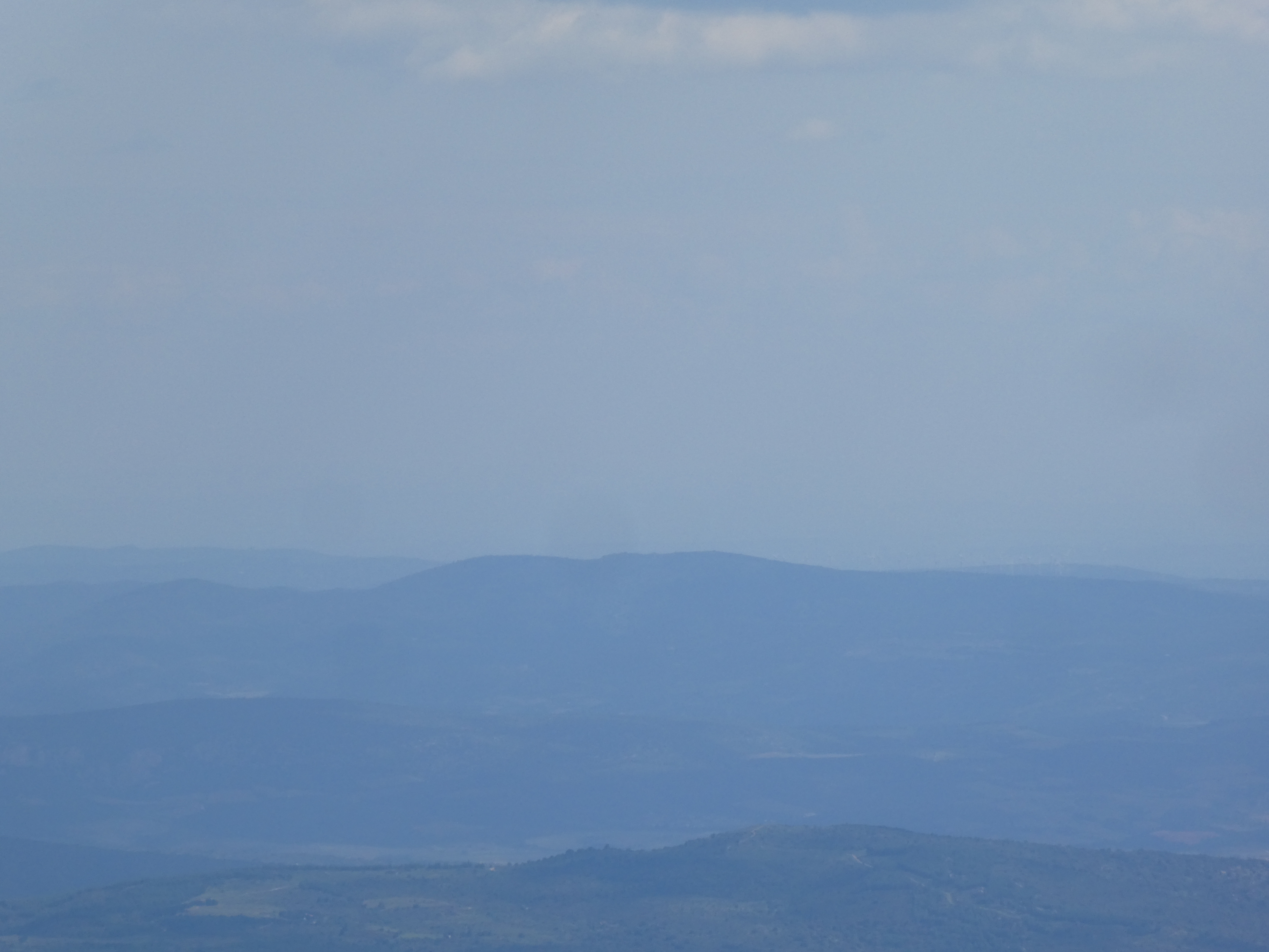 Zoom sur le Pech d'Auroux (940 m) à gauche, le Sarraoute (929 m) au centre et le Milobre de Massac (907 m) à droite
