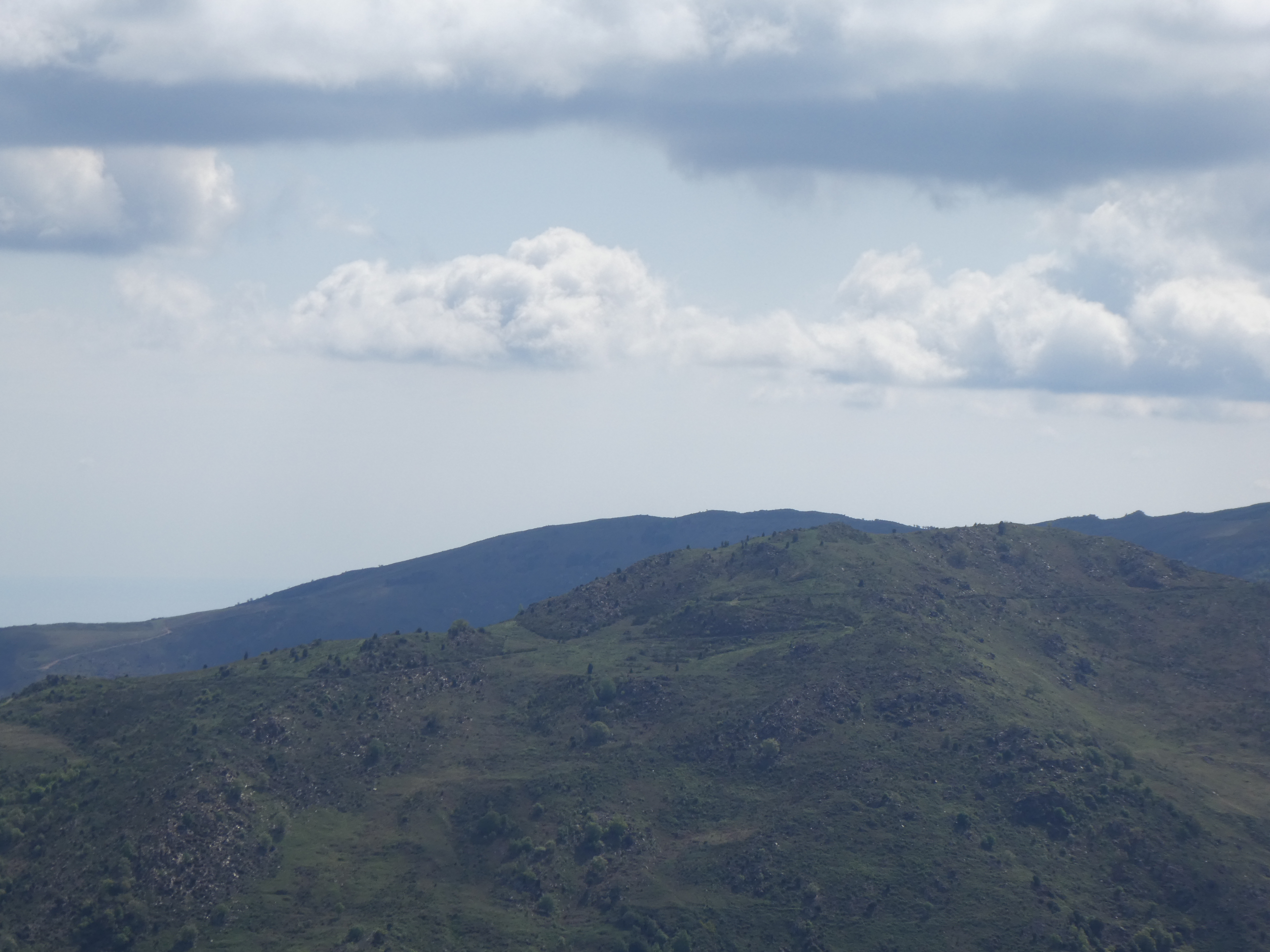 Zoom sur la Serre de la Grande Crémade (609 m) au centre et le Montolier de Perellós (707 m) à droite