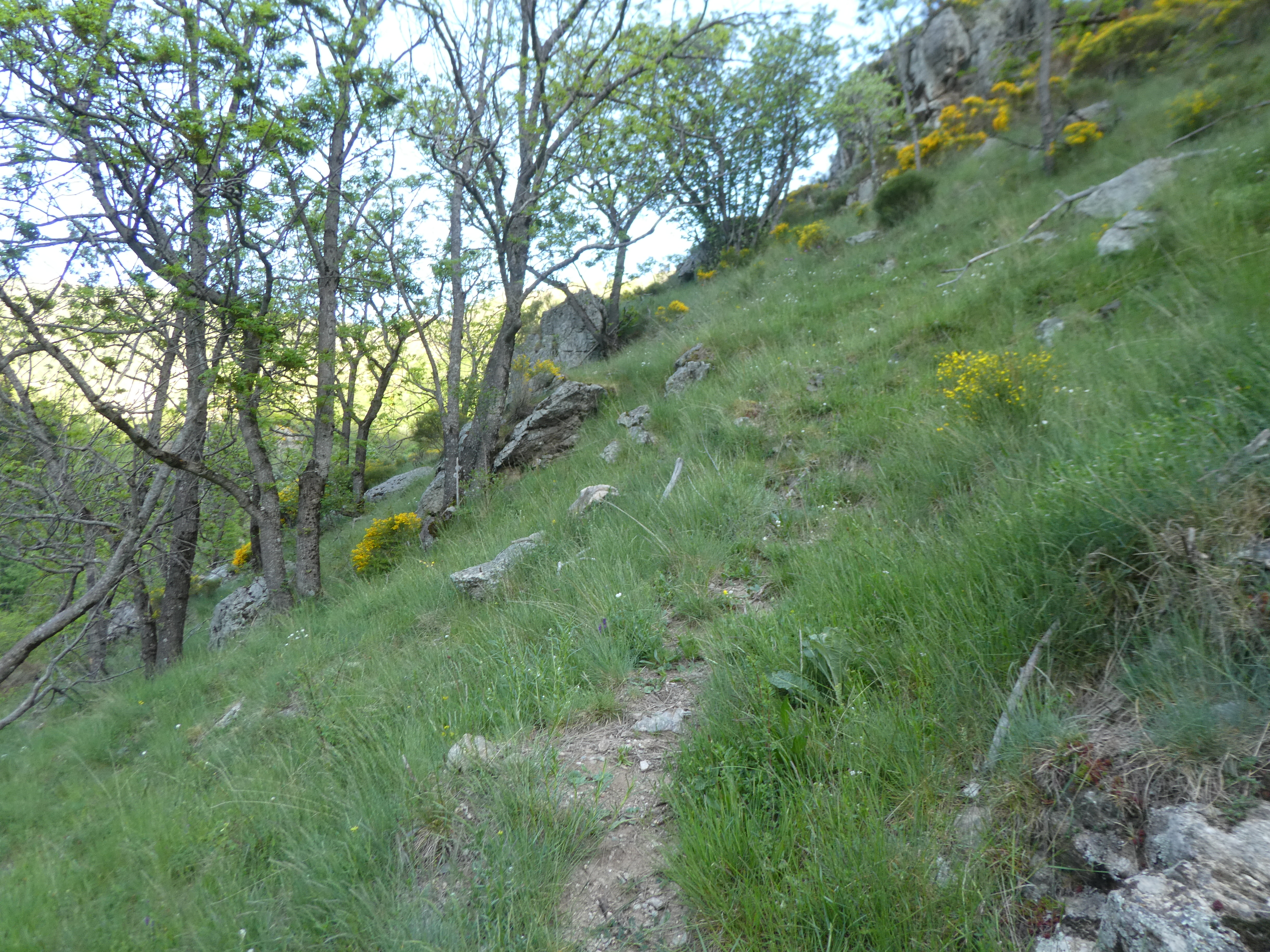 - Portions de descente raide du Puig de Ribes Blanques au Coll del Pal