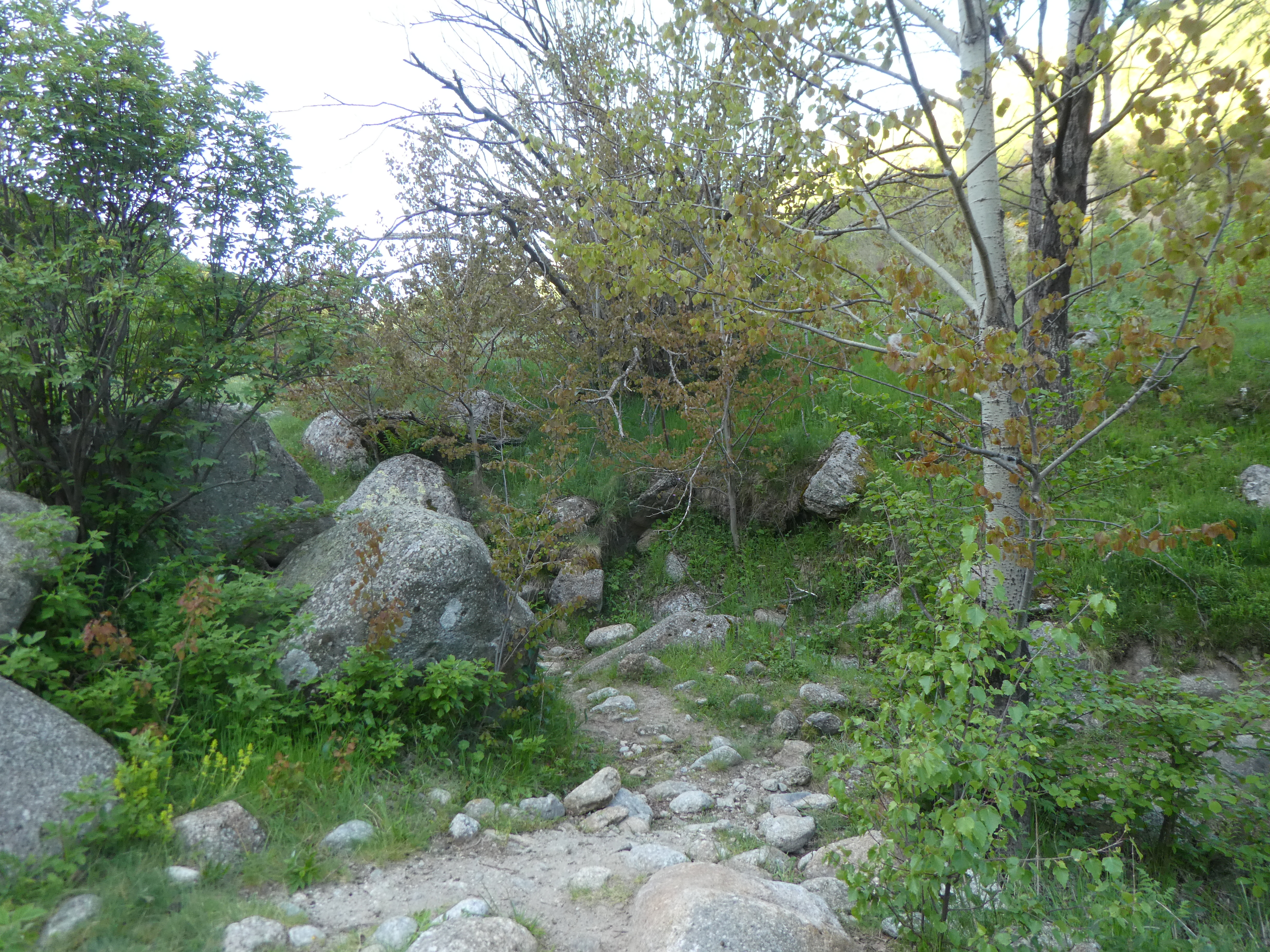 El Ressec (1474 m) : suivre le chemin partant tout droit et passant à gué le Ressec direction Mantet, balisé en rouge et blanc (boucle bouclée)