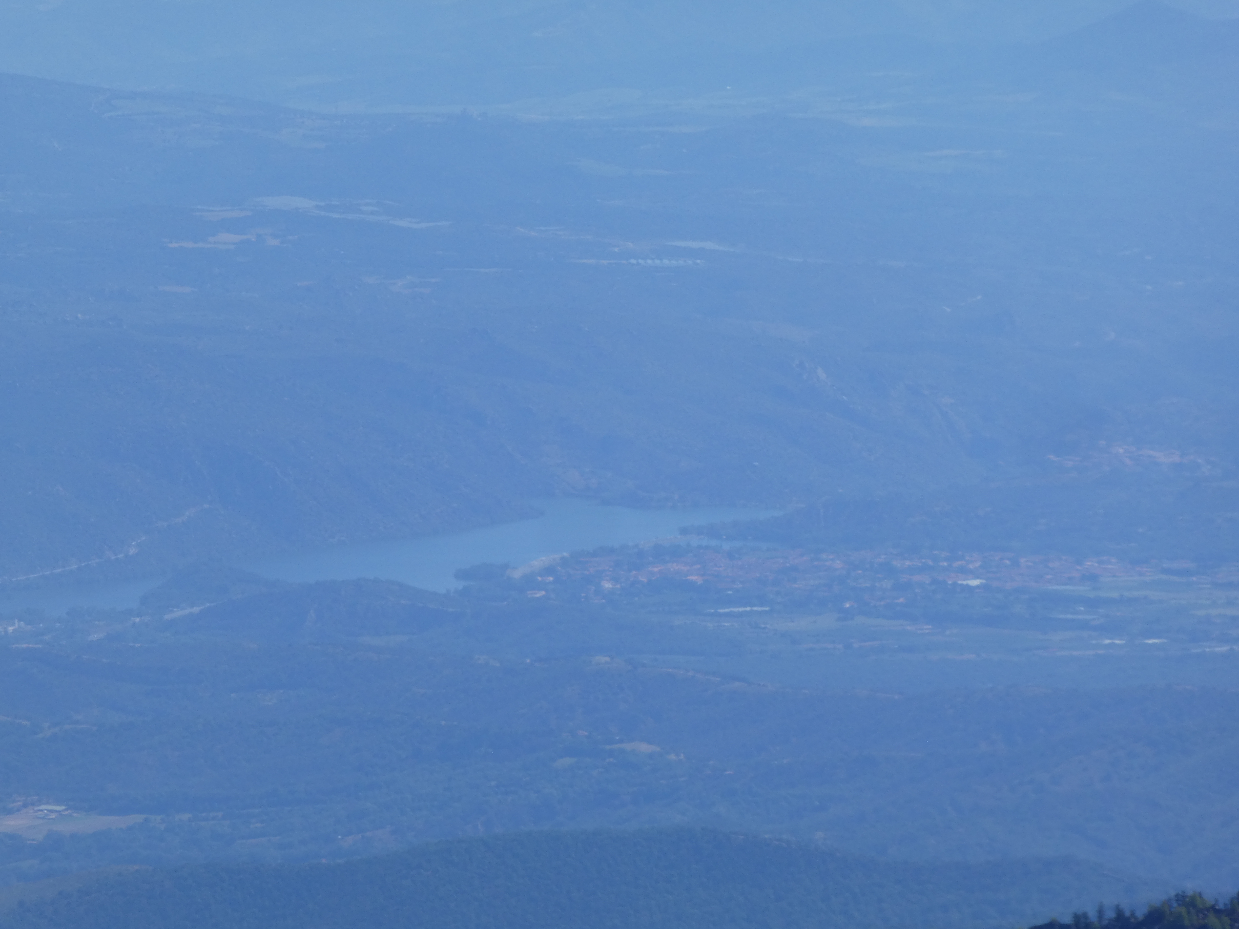 Zoom sur le Pic de Montaud (1031 m) à gauche et le Pic de Nore (1211 m) à droite situés dans la Montagne Noire ... en bas à droite, on aperçoit le Pech de Bugarach (1230 m)