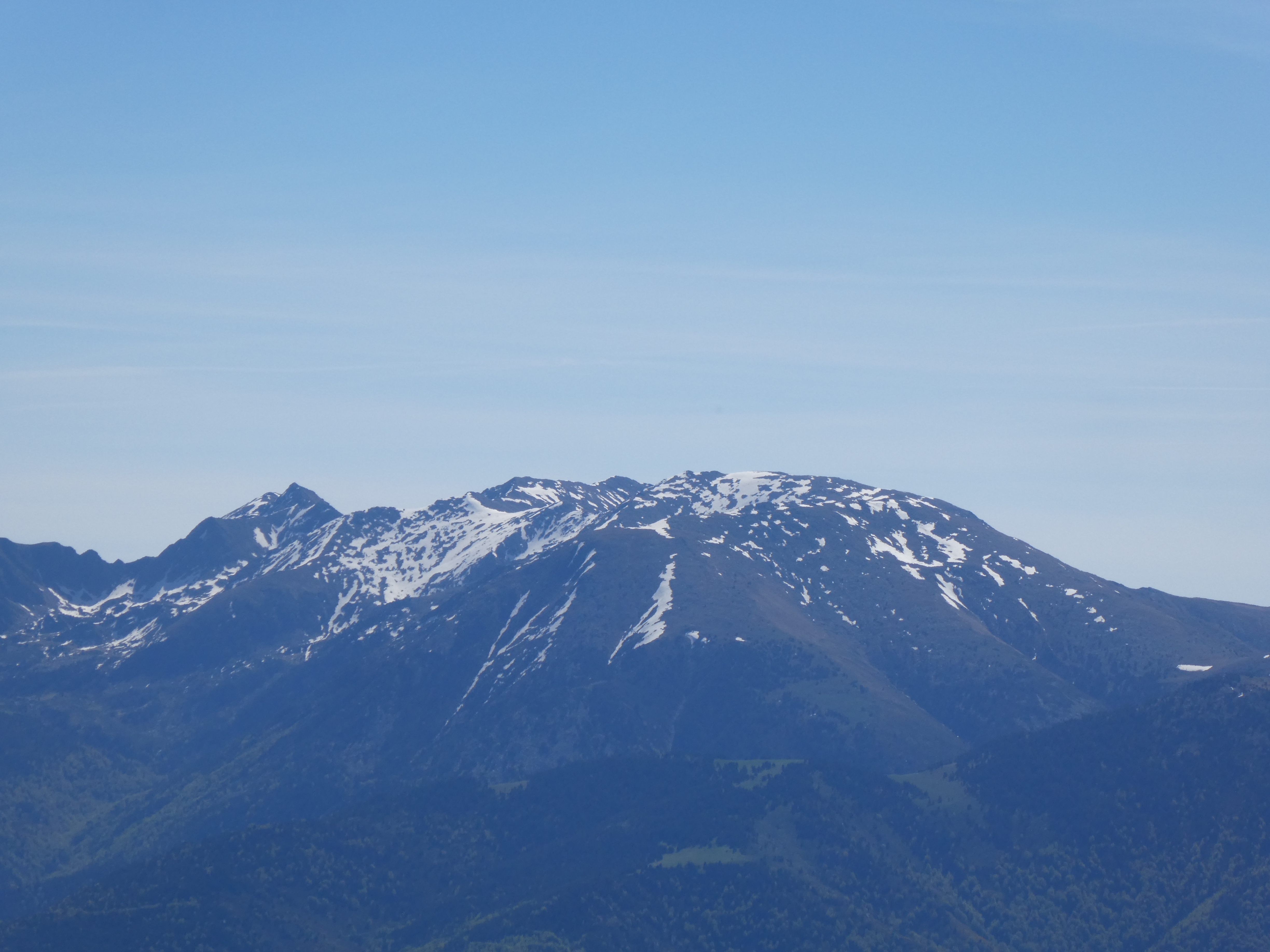 Zoom sur le Pic du Canigou (2784 m) au centre-gauche et le Quazemi de Dalt (2721 m) au centre-droit