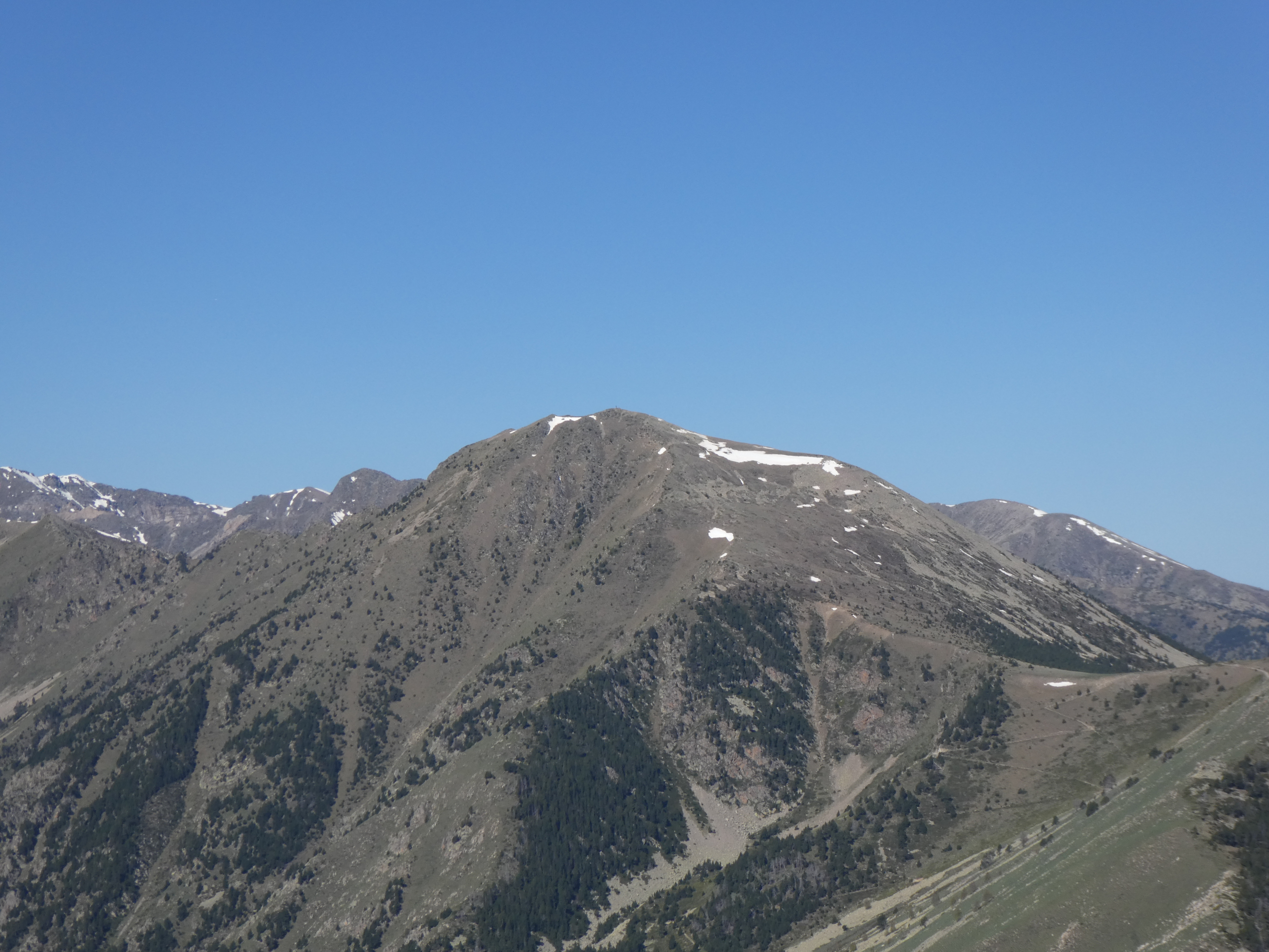 Zoom sur el Madres (2469 m) au centre-gauche et le Roc Negre (2459 m) au centre-droit