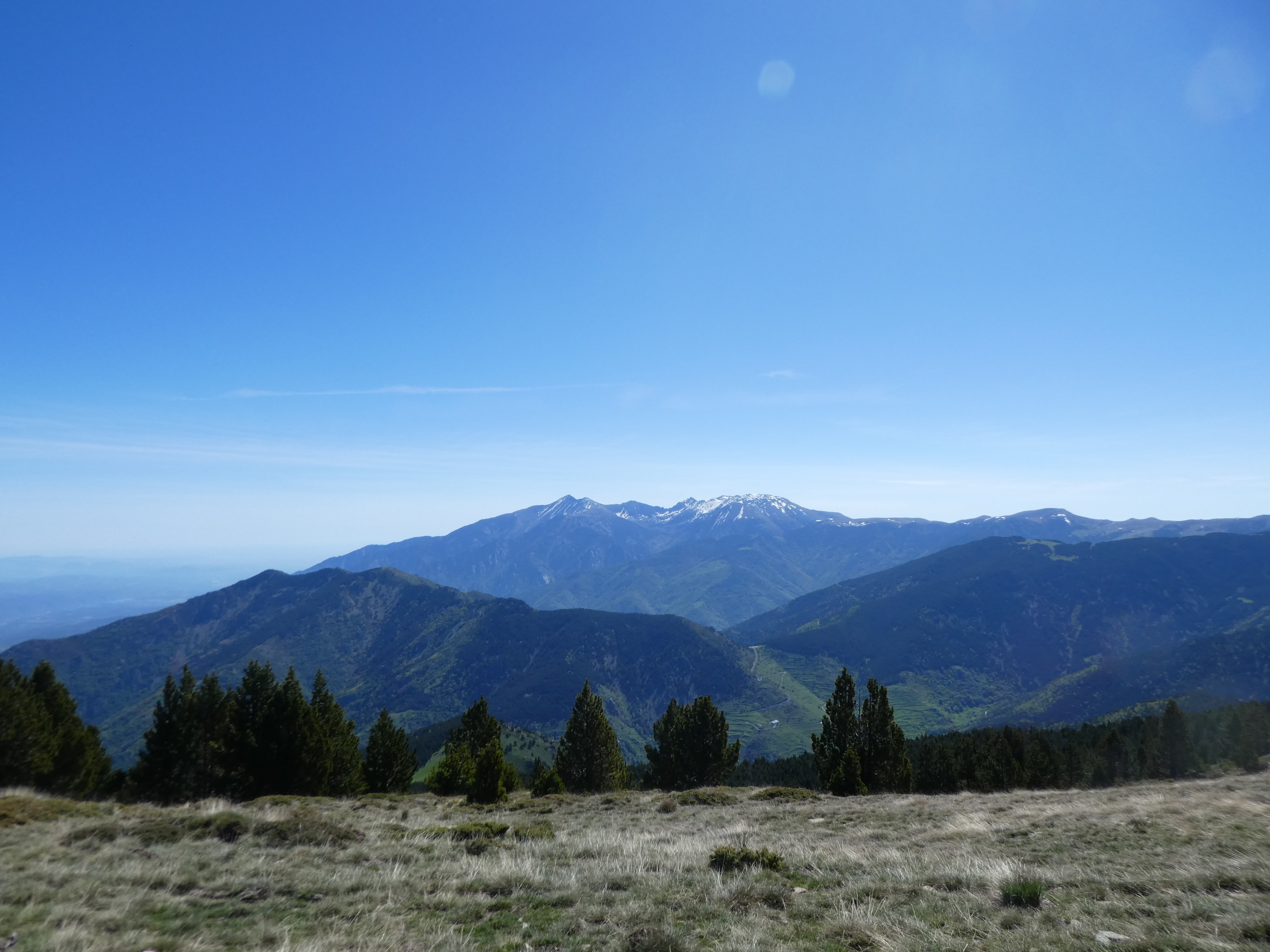 Vue arrière sur le massif du Canigou
