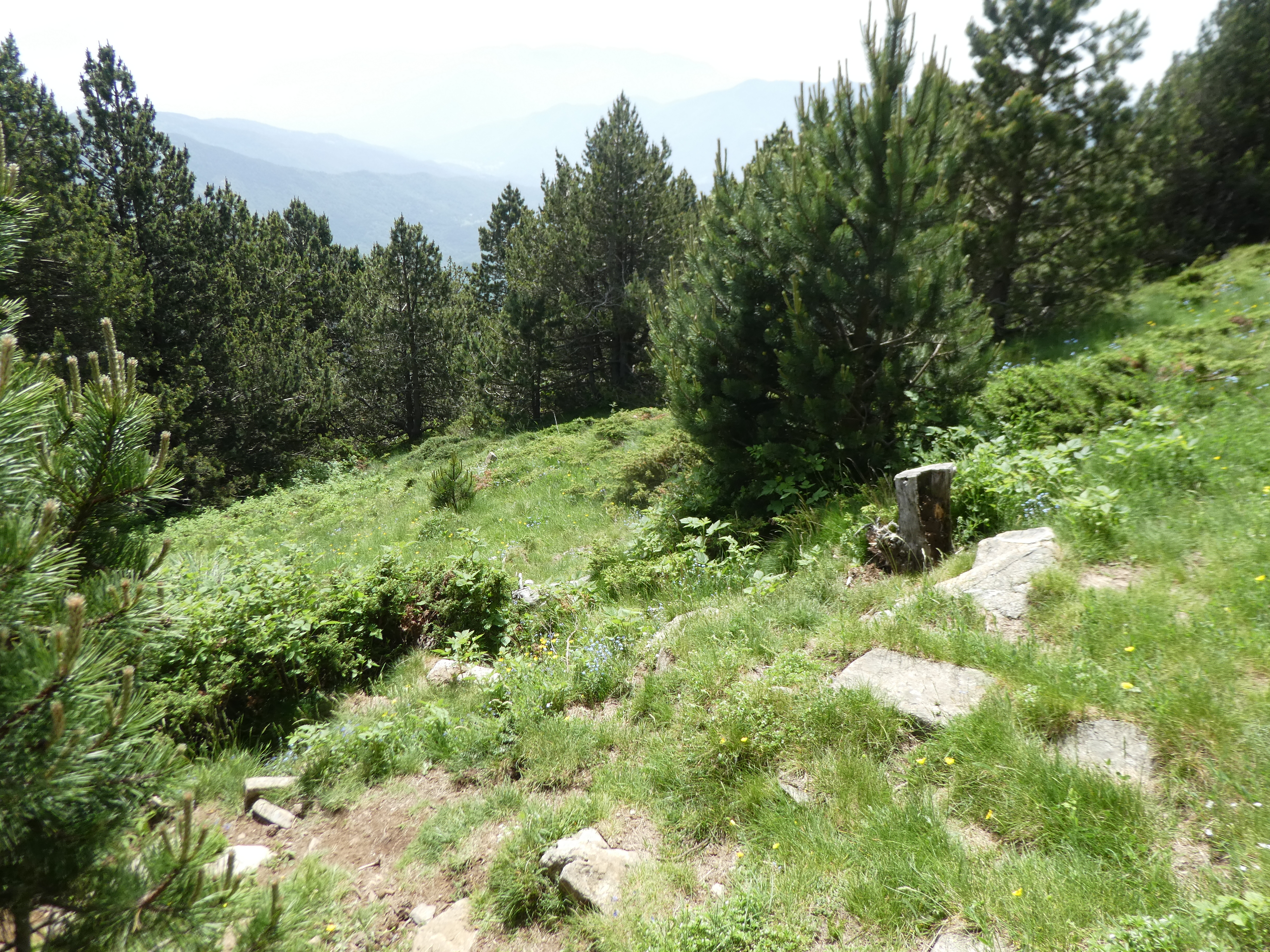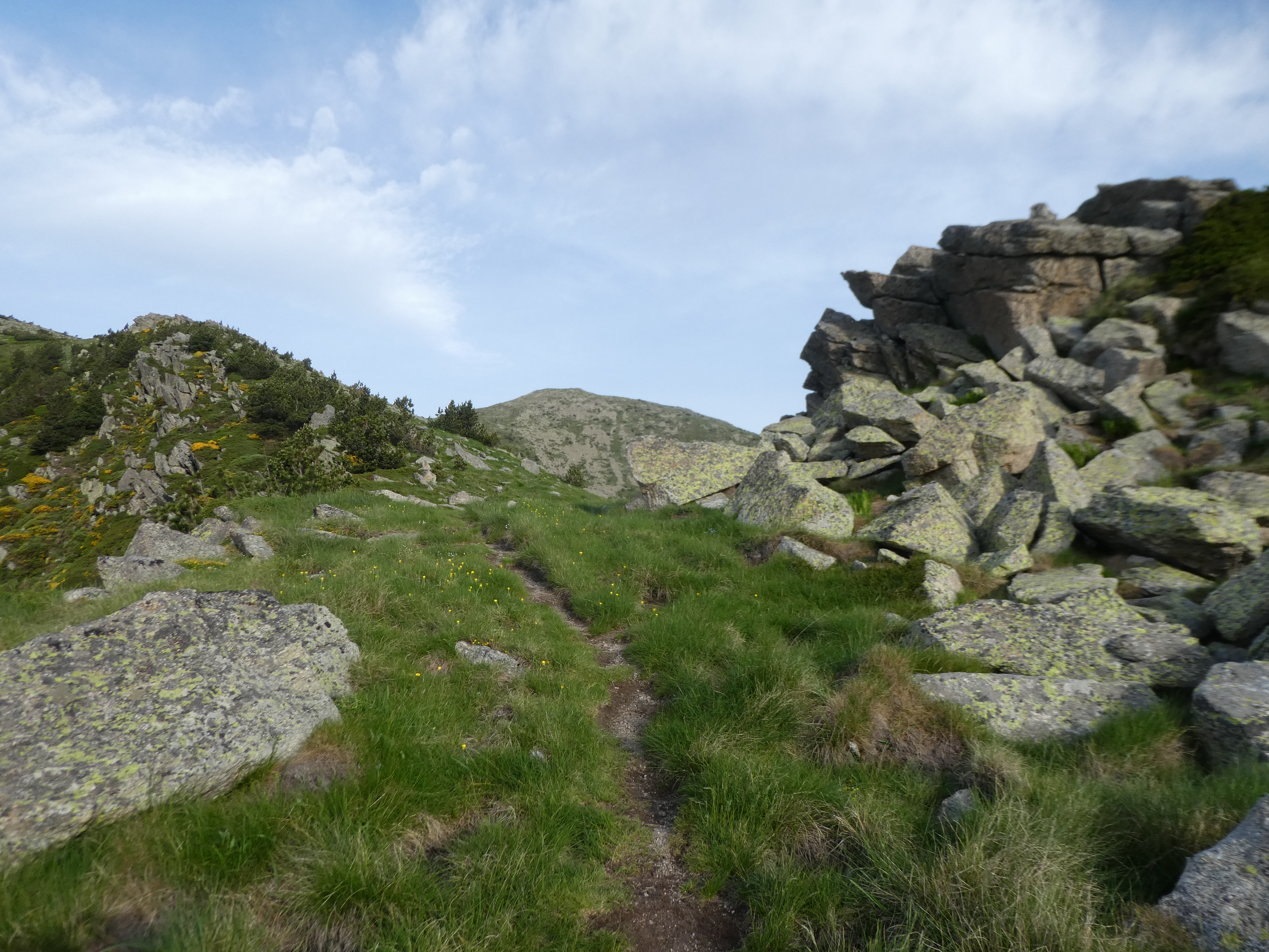 Coll de la Cirera (1729 m) : suivre le chemin partant tout droit direction Pic Gallinàs, balisé sporadiquement en orange dorénavant