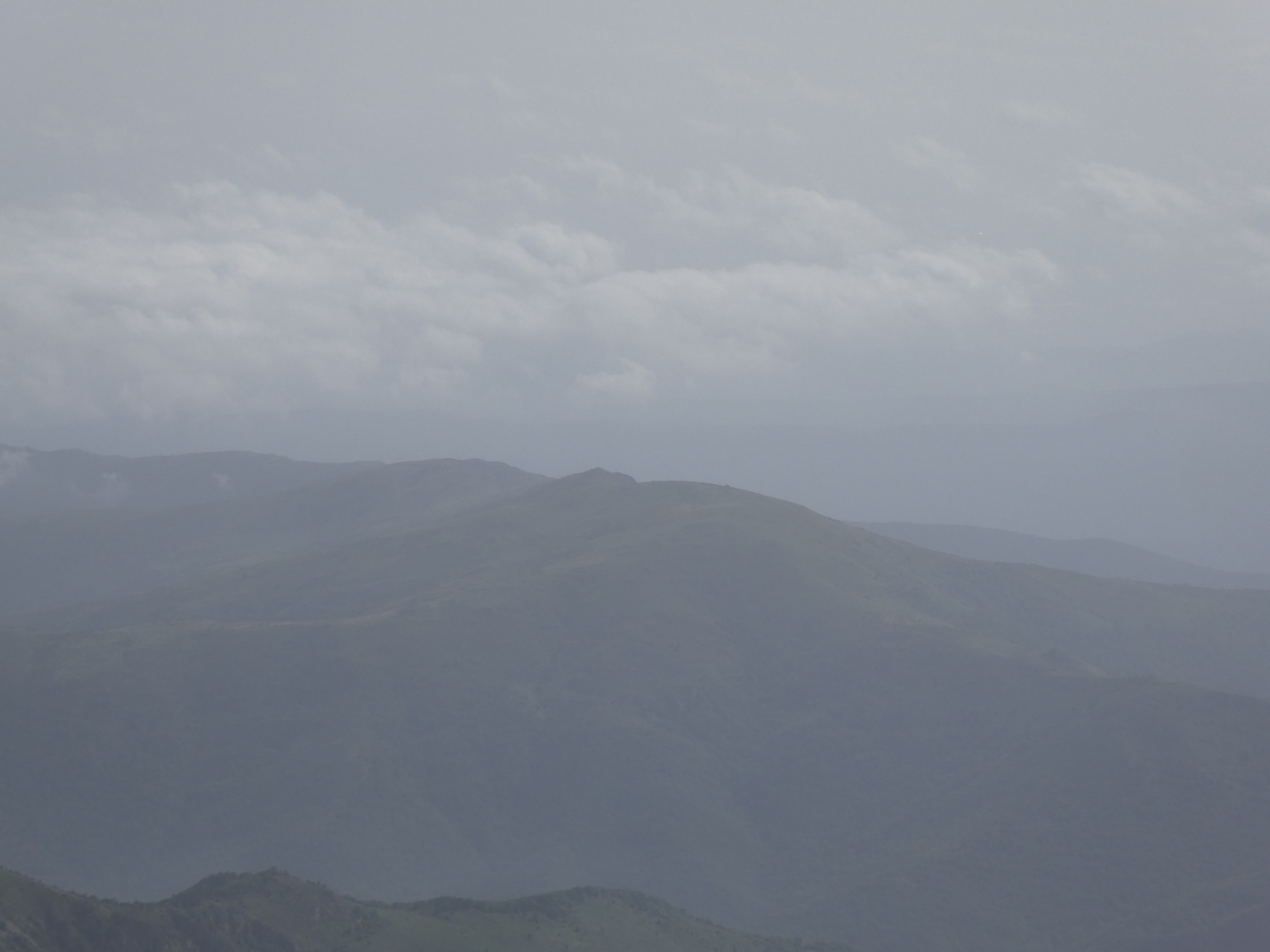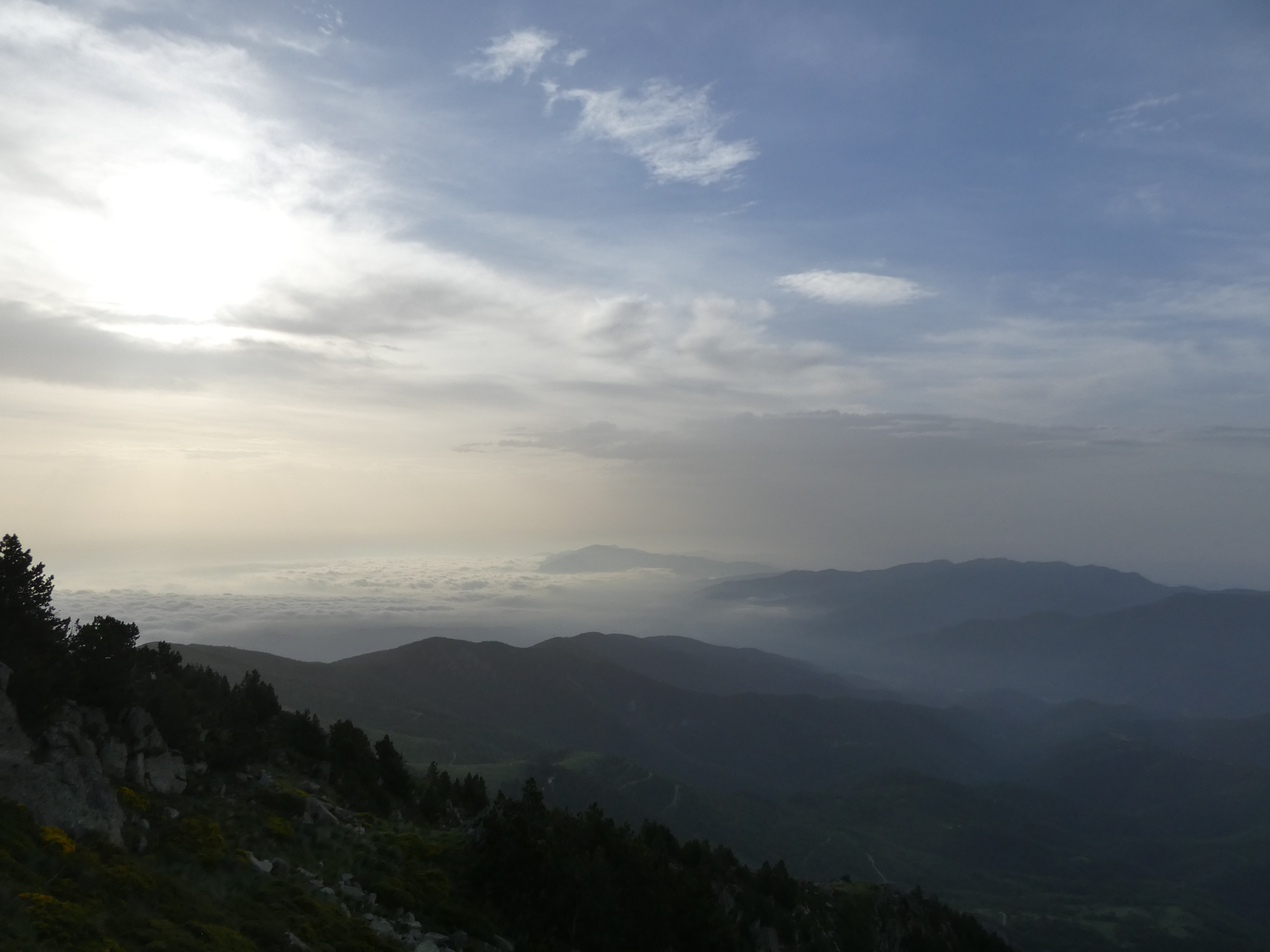 Vue brumeuse en direction de la chaîne des Albères