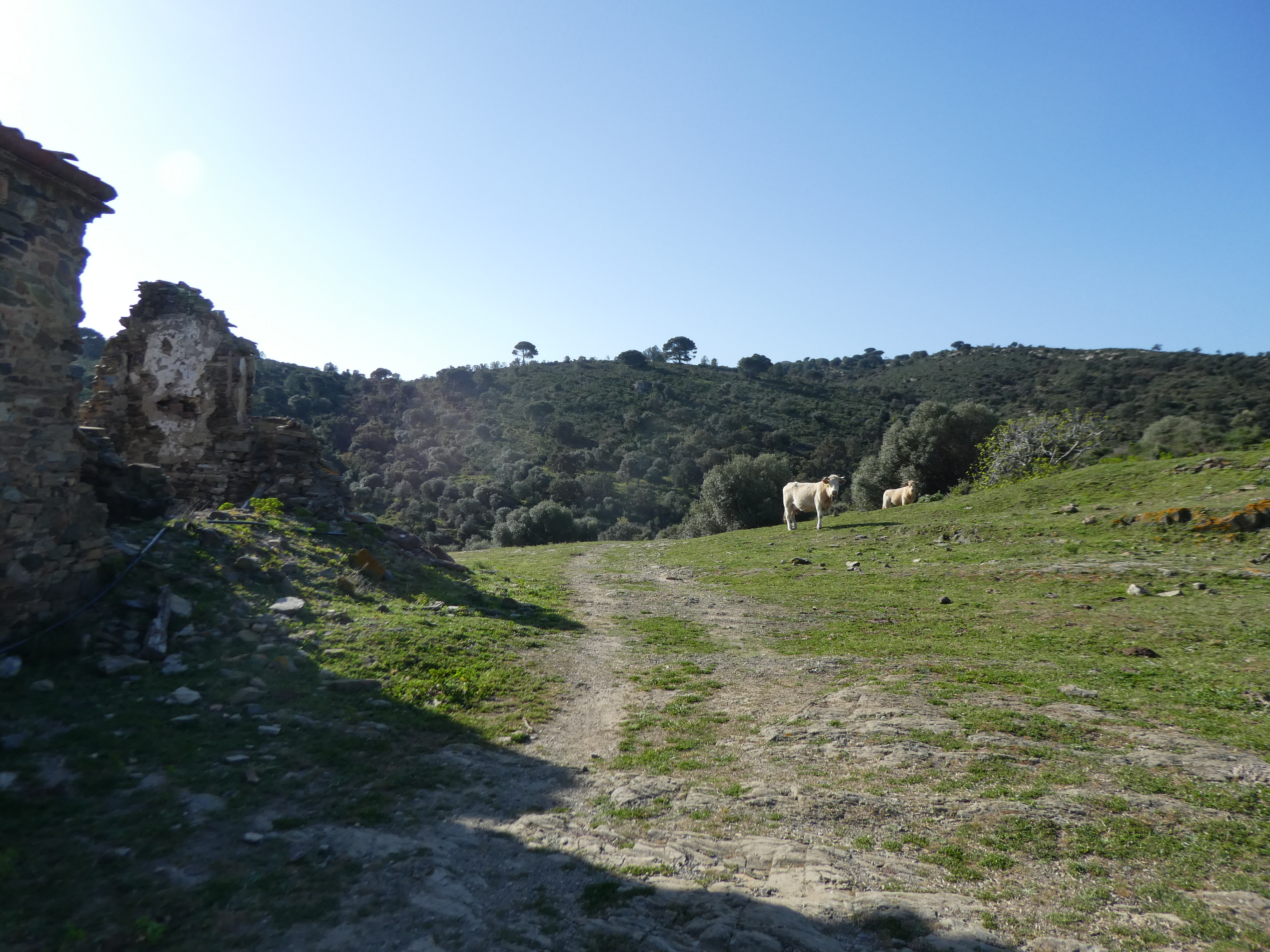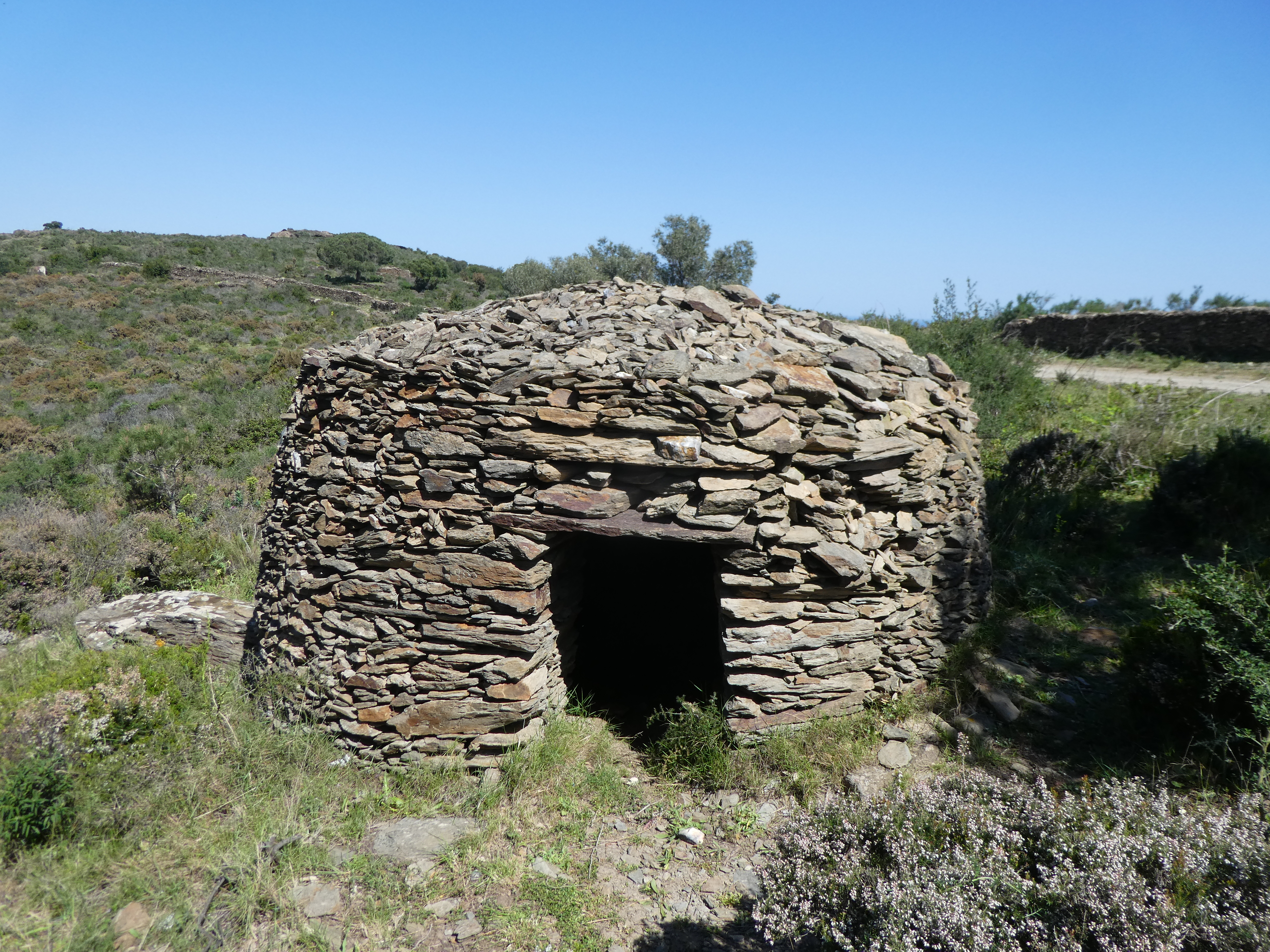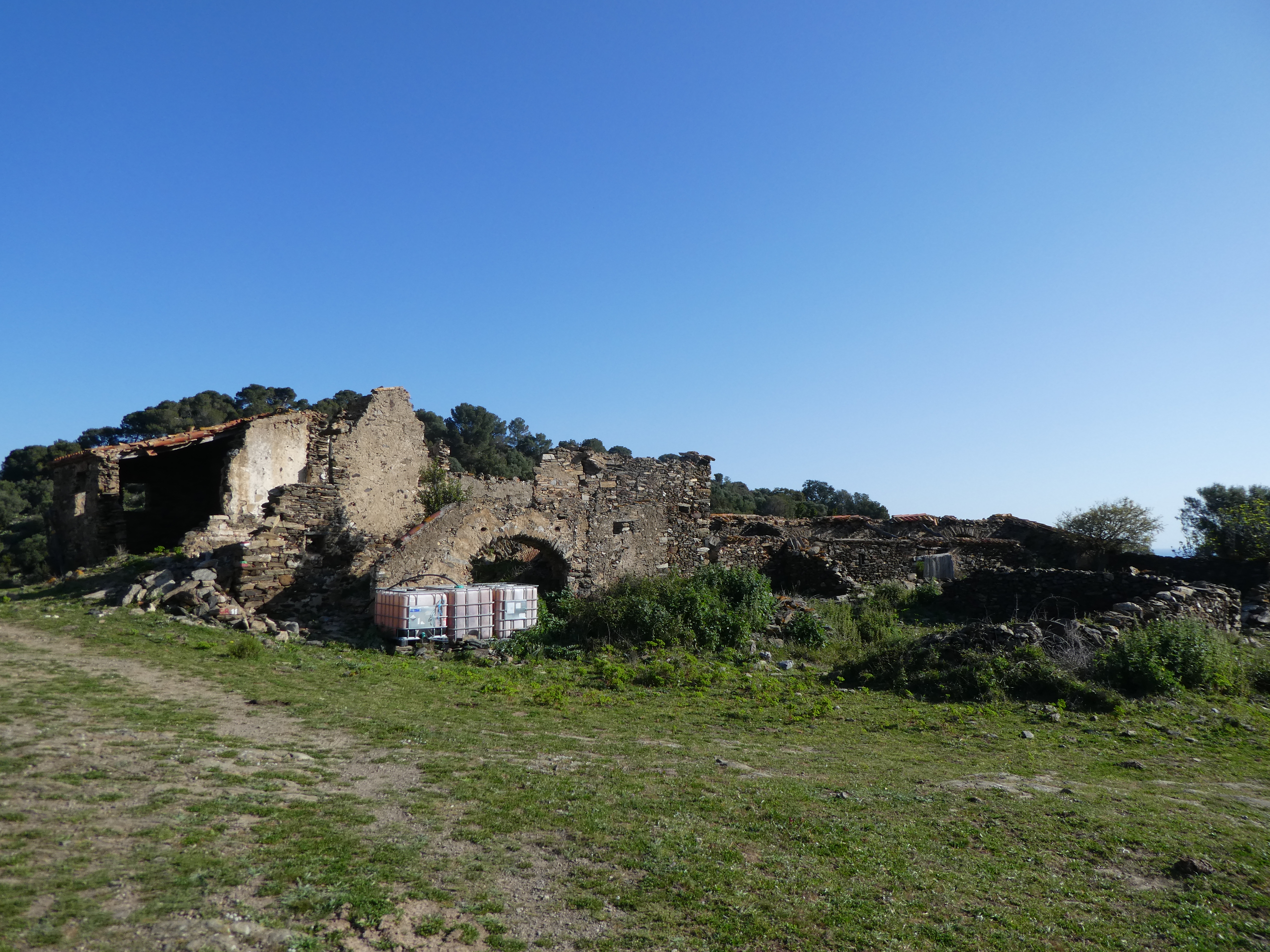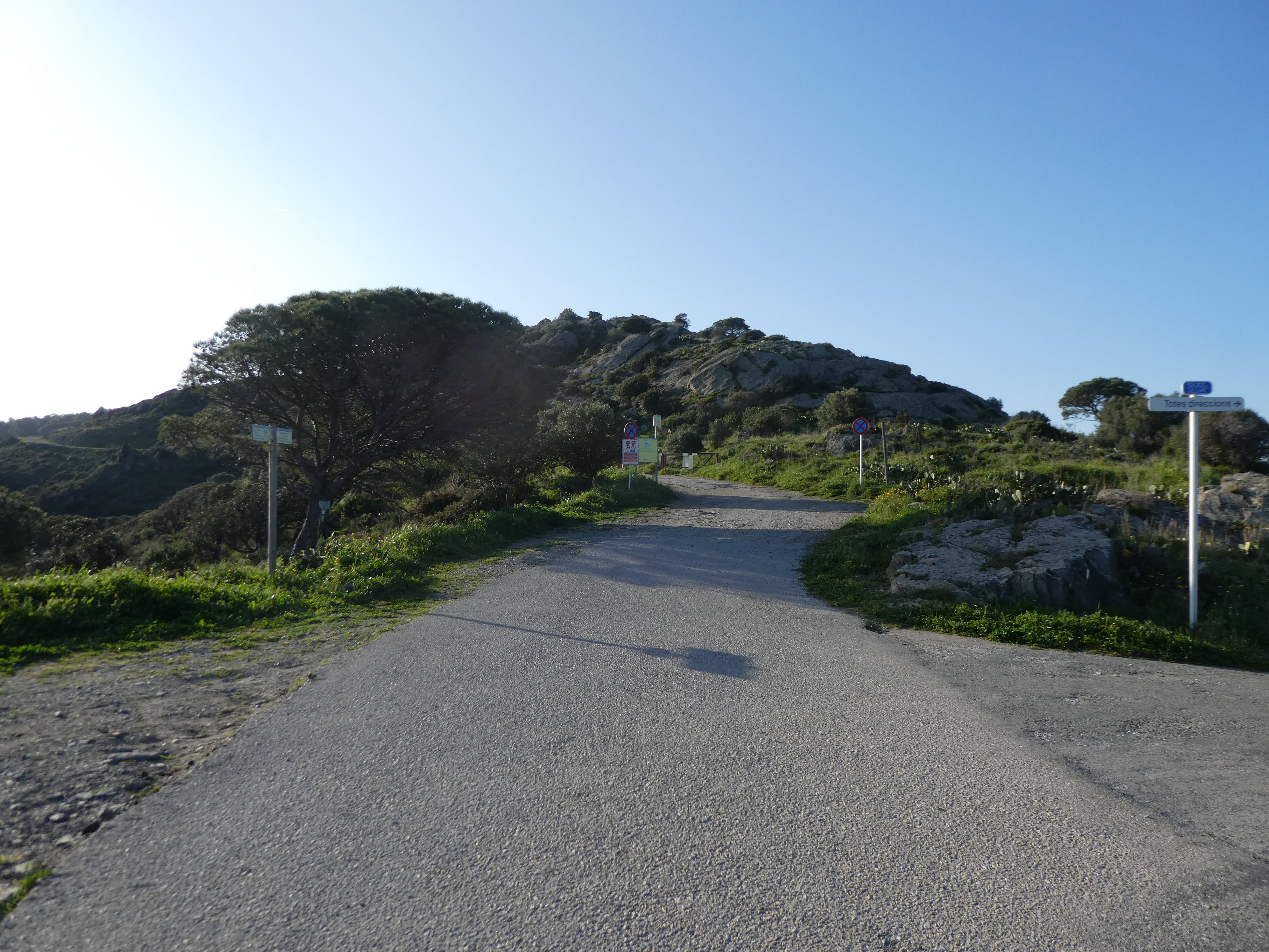 Mas dels Bufadors (290 m) : suivre le large chemin partant tout droit direction el Port de la Selva, balisé en rouge et blanc