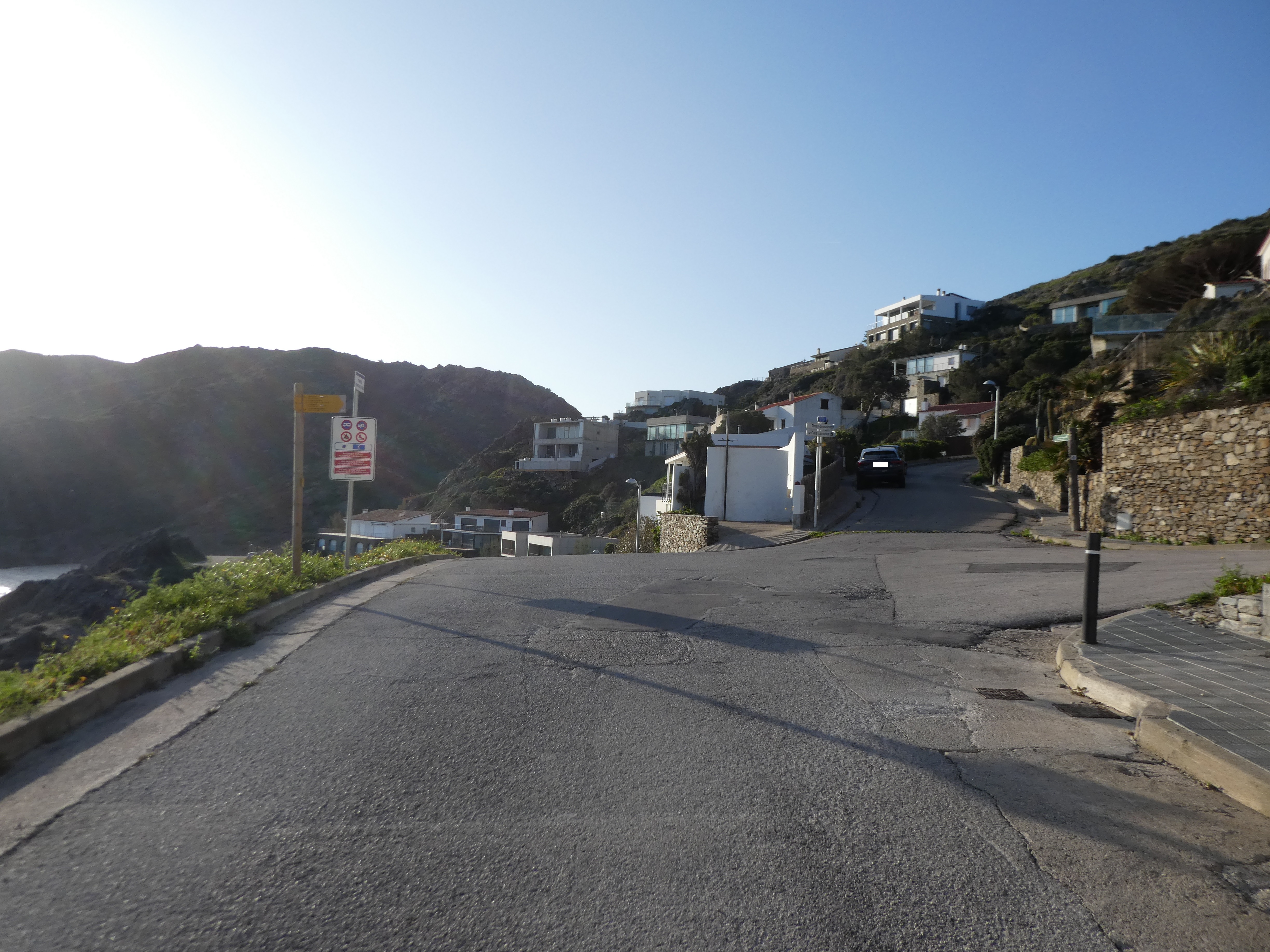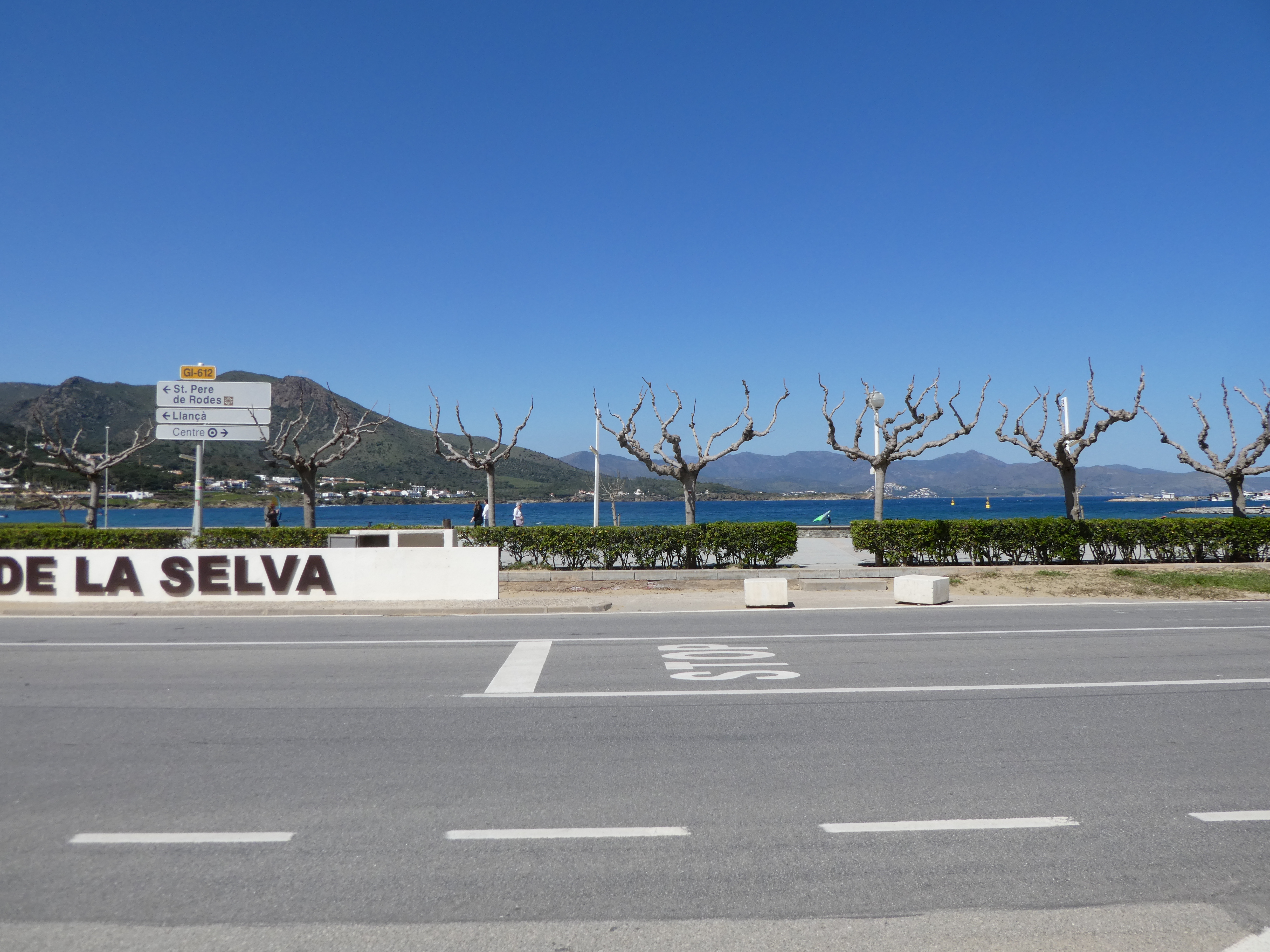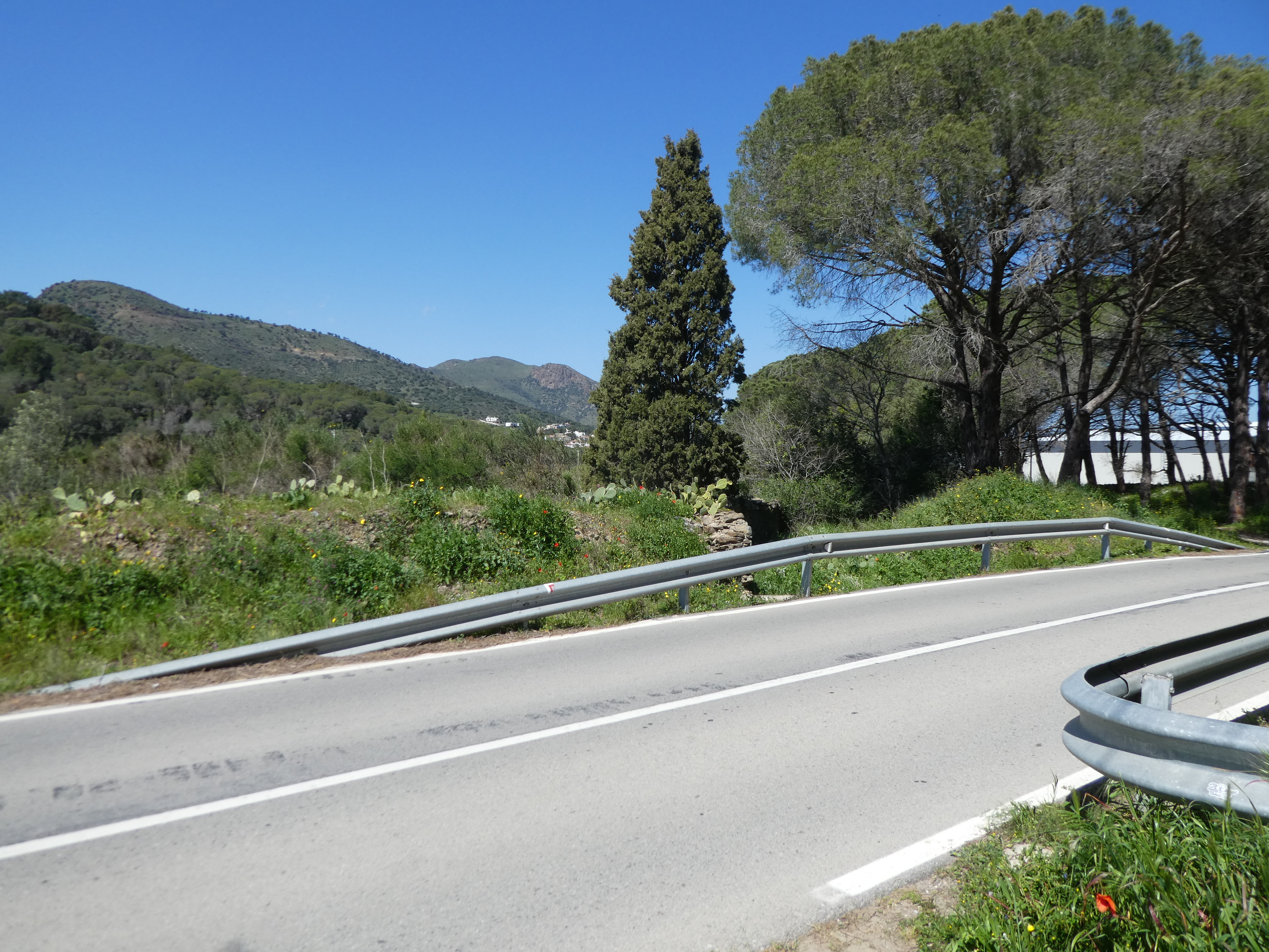 A cette intersection avec la GI-612 (900 mètres après avoir rejoint la GI-613), suivre cette dernière partant sur la droite vers le centre-ville direction el Port de la Selva, balisé en rouge et blanc