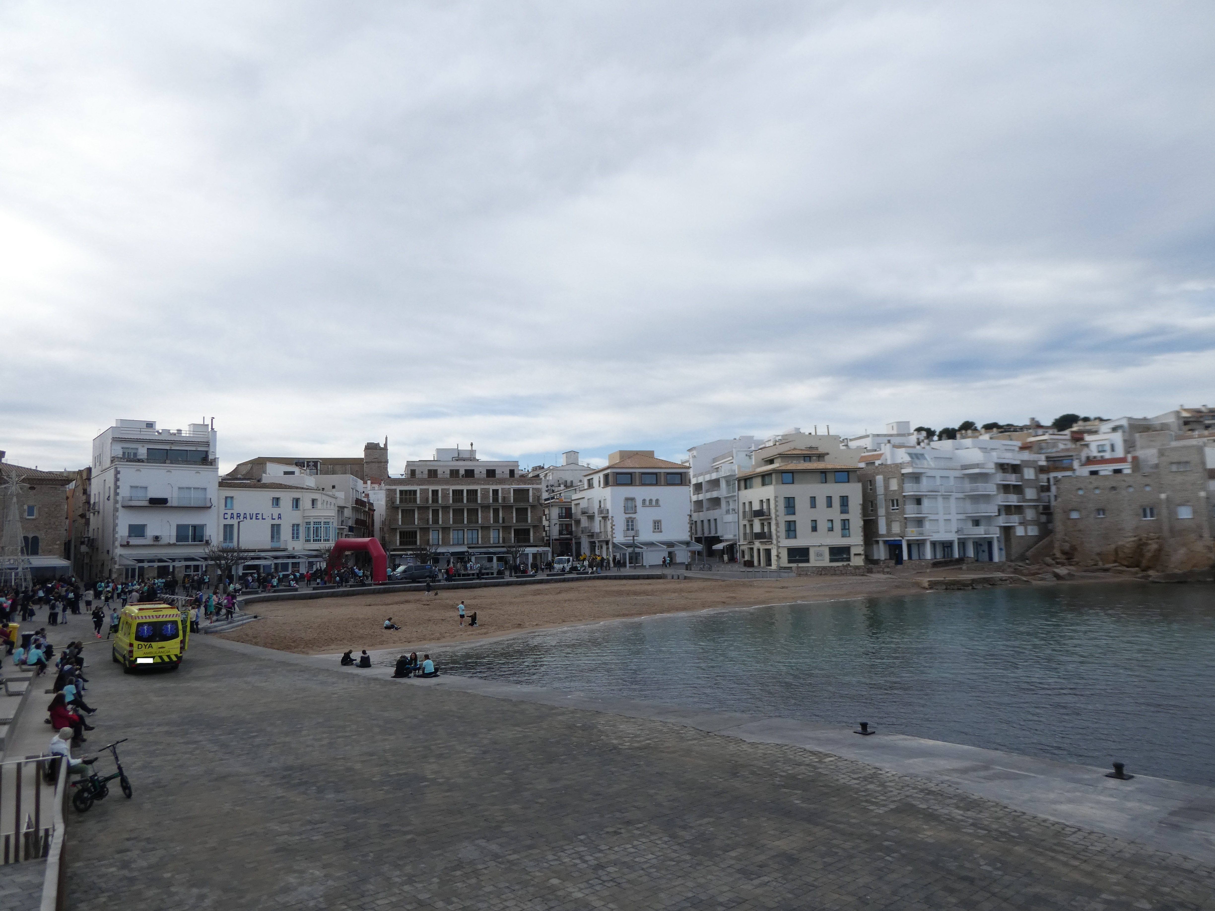 A cette intersection située au niveau de la Plaça de Catalunya (100 mètres après le départ), suivre la route partant légèrement sur la droite direction l'Escala, balisé sporadiquement en jaune