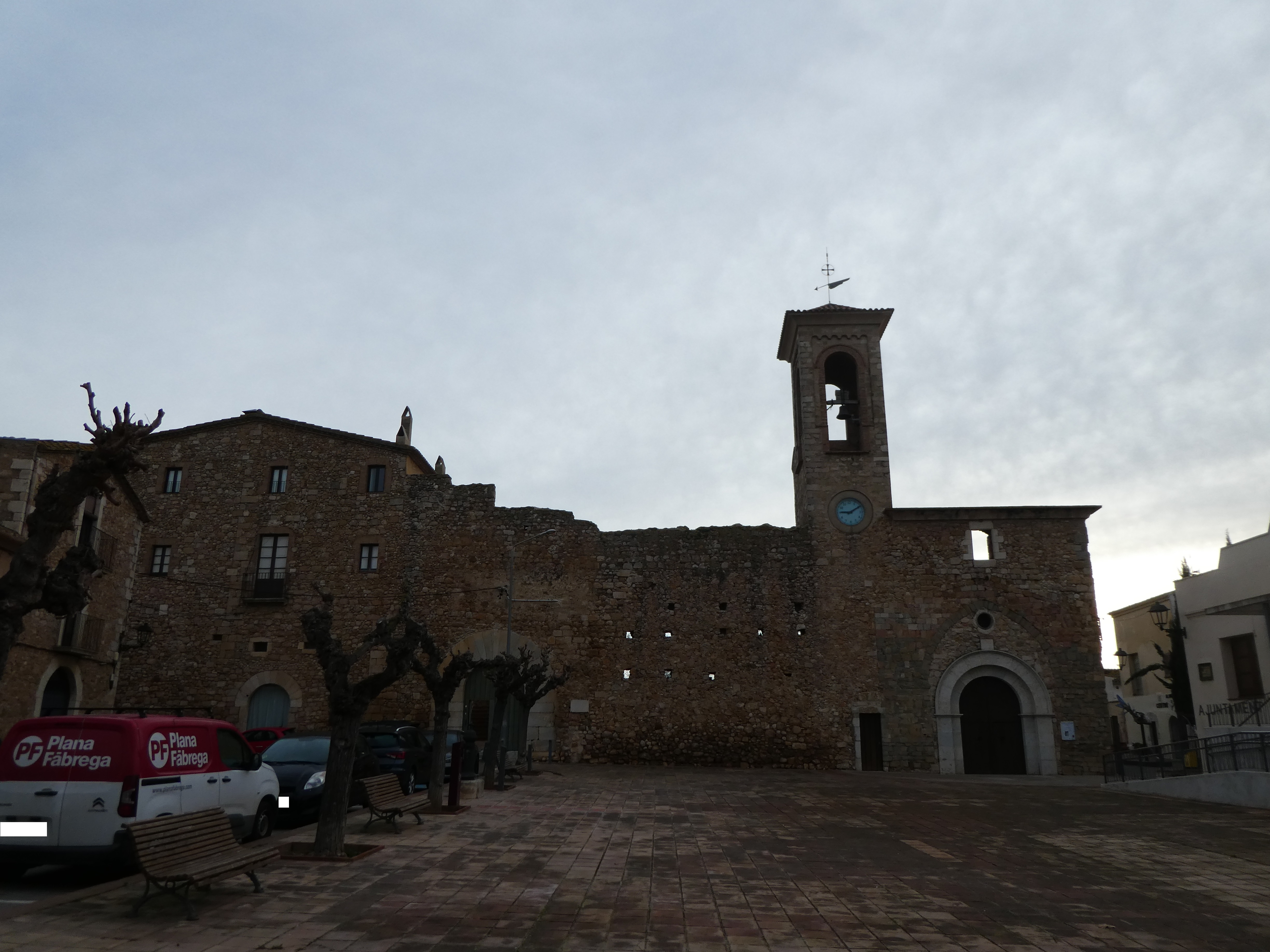 A cette intersection située au niveau de la Plaça de Catalunya (350 mètres après le précédent rond-point), suivre la rue partant sur la droite vers la mairie direction Viladamat - Ajuntament, balisé sporadiquement en jaune dorénavant (boucle bouclée)