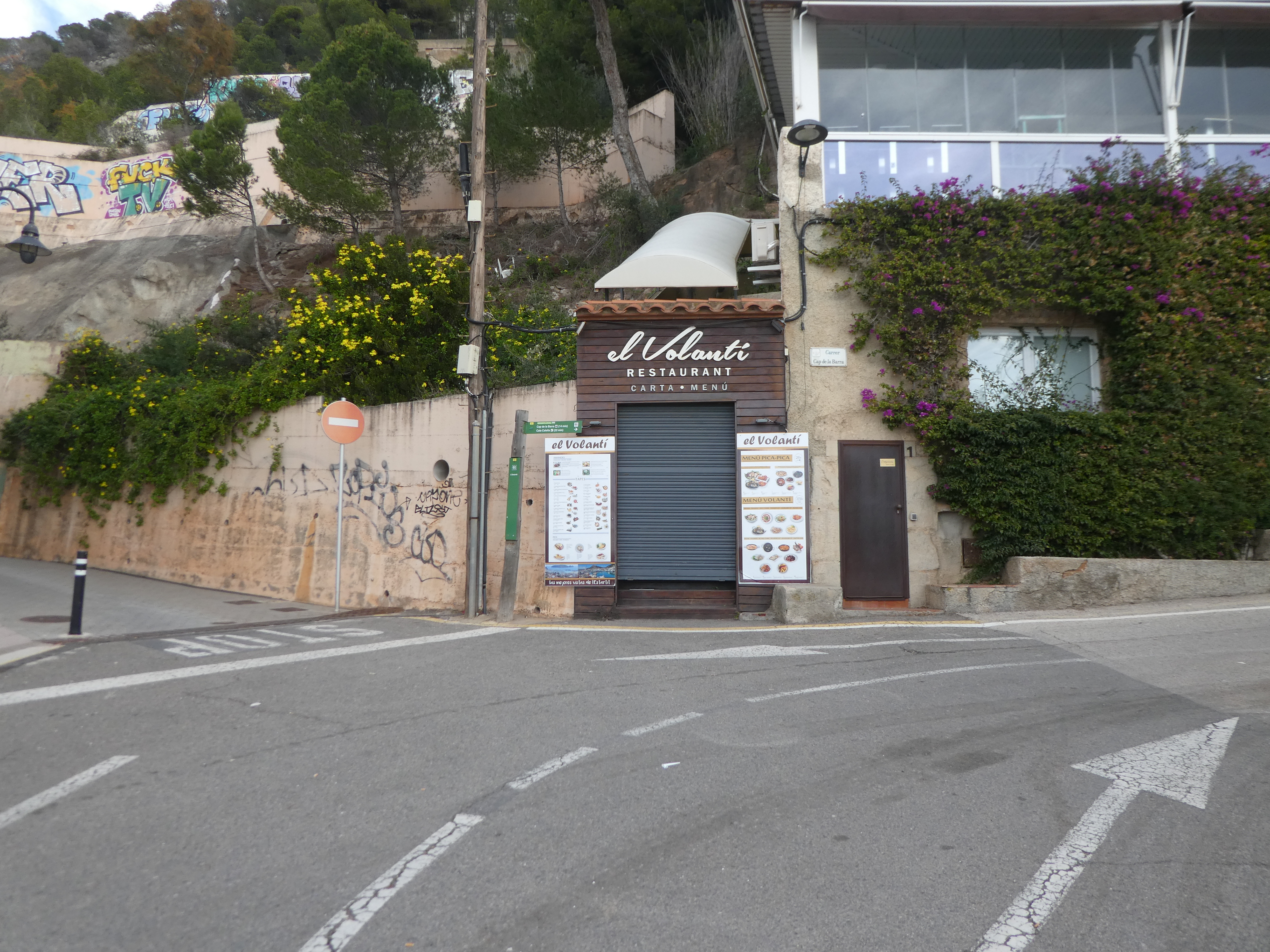 A ce croisement situé au bout du port de l'Estartit (500 mètres après le lieu-dit "l'Estartit - Oficina de Turisme"), suivre la rue montant sur la gauche direction Cap de la Barra