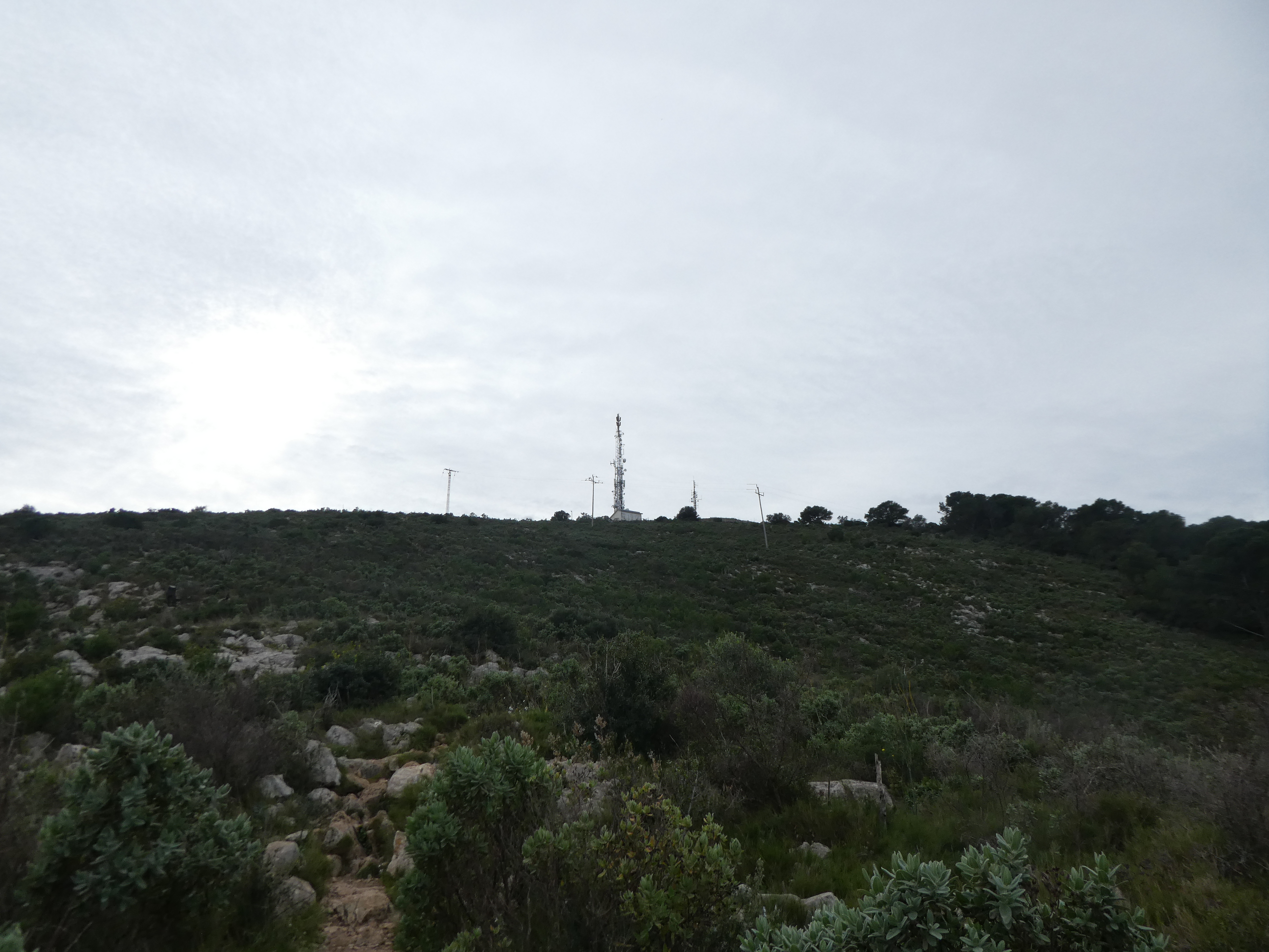 A ce croisement situé au niveau des antennes de la Roca Maura marqué par la présence d'un panneau directionnel (500 mètres après le précédent), suivre le chemin partant tout droit direction Roca Maura, balisé en vert et blanc