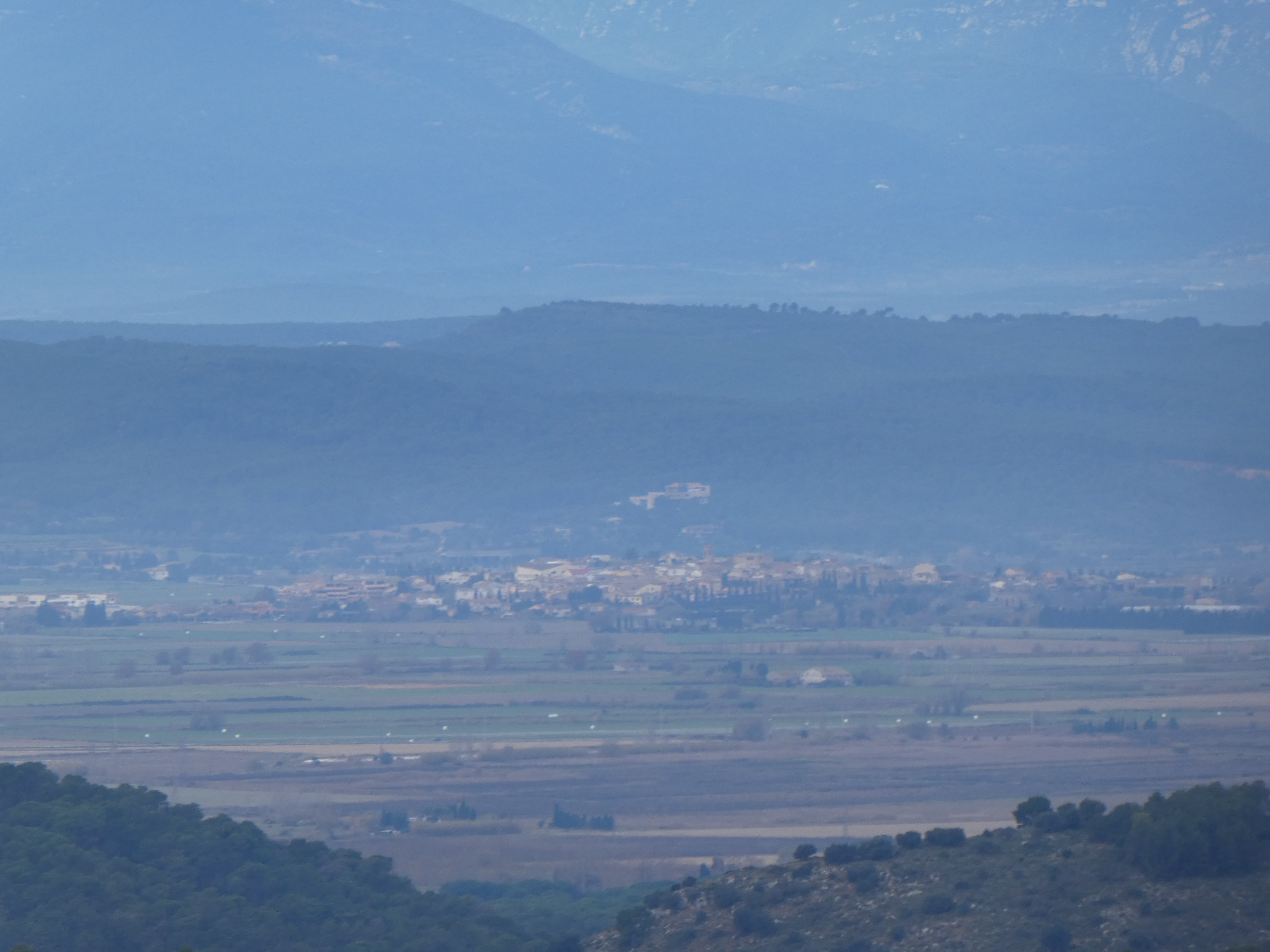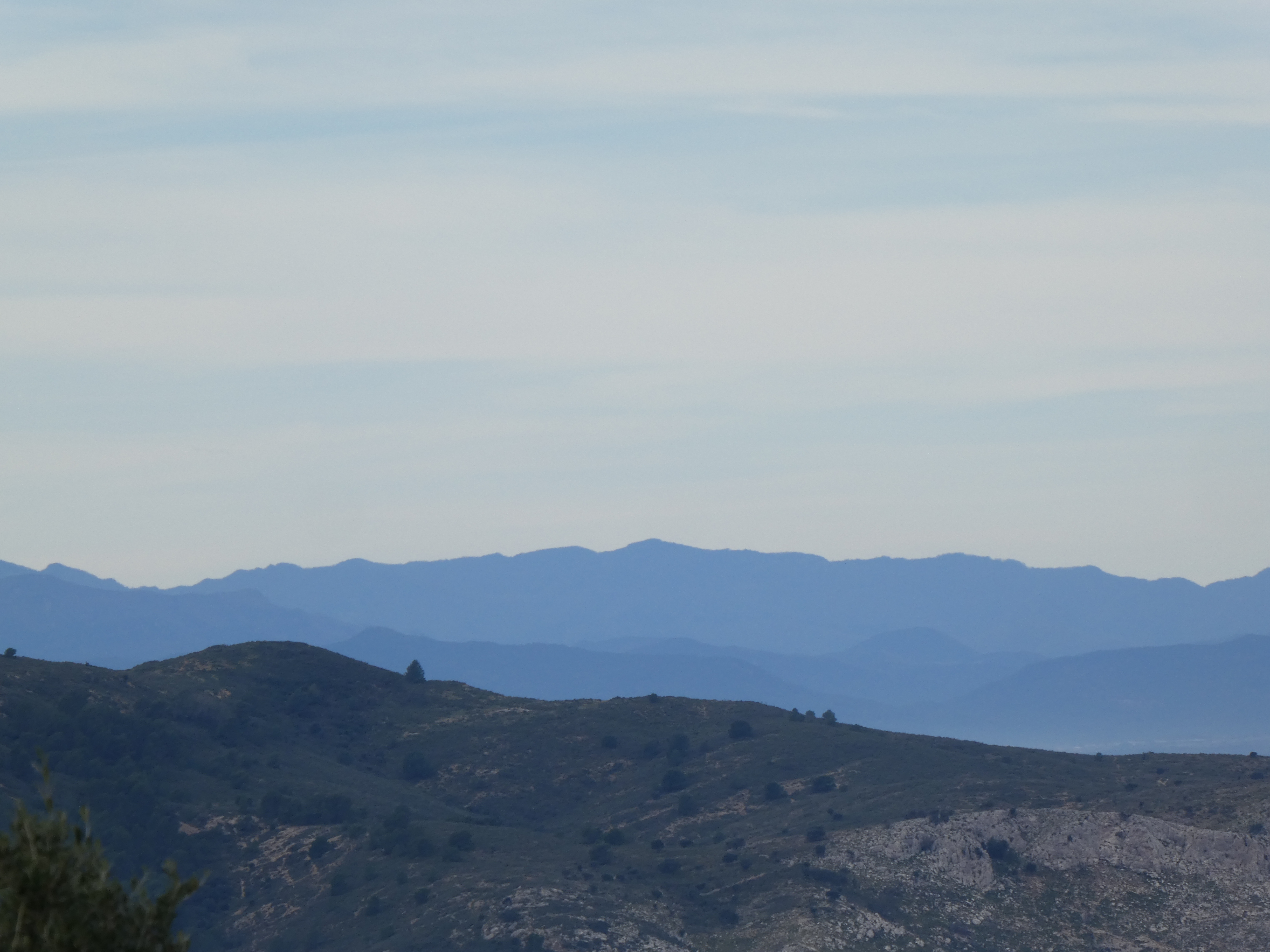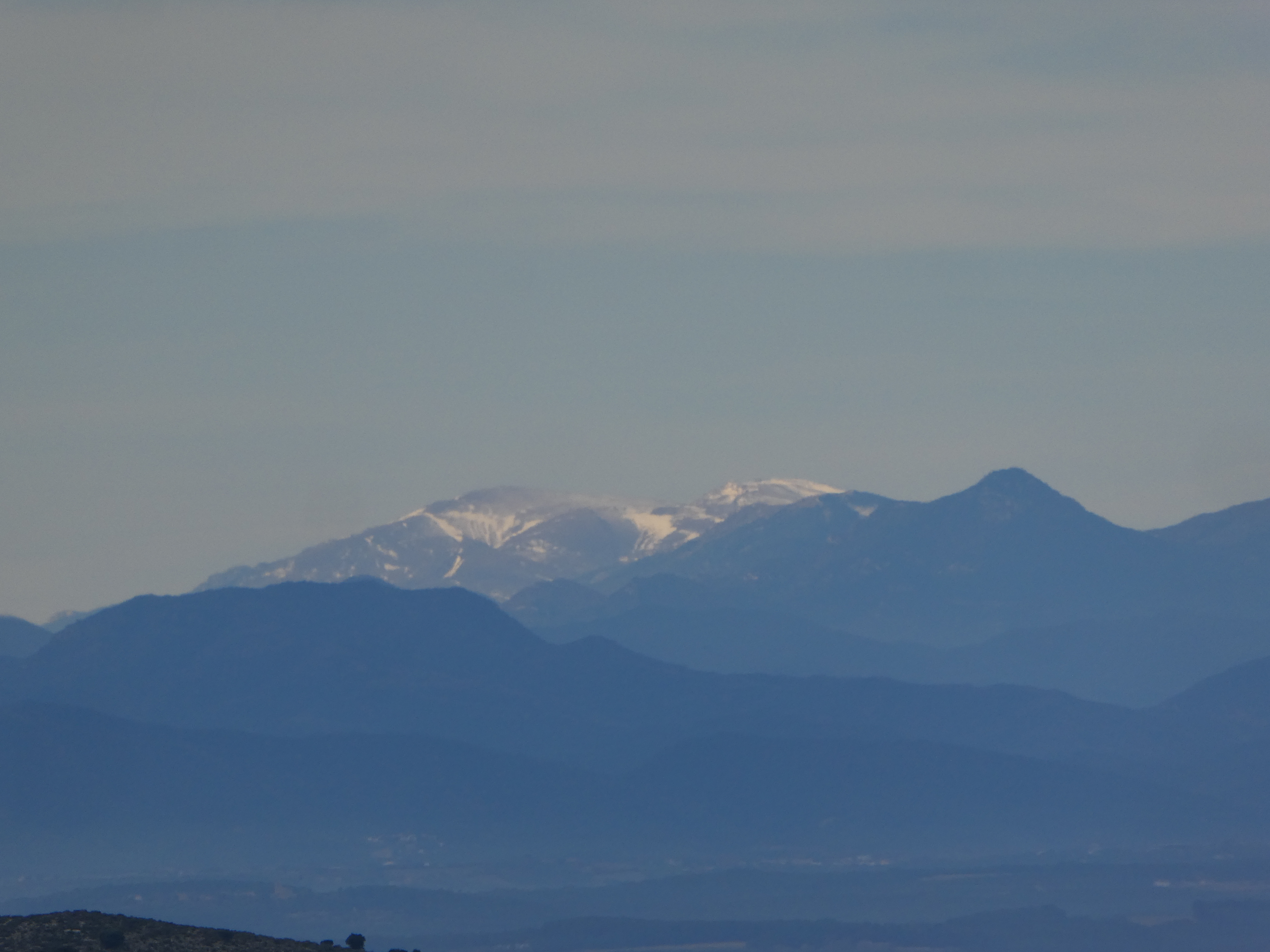 Zoom sur le Puig de la Bicoca (1445 m) à gauche et Santa Magdelena de Cambrils (1547 m) au centre et