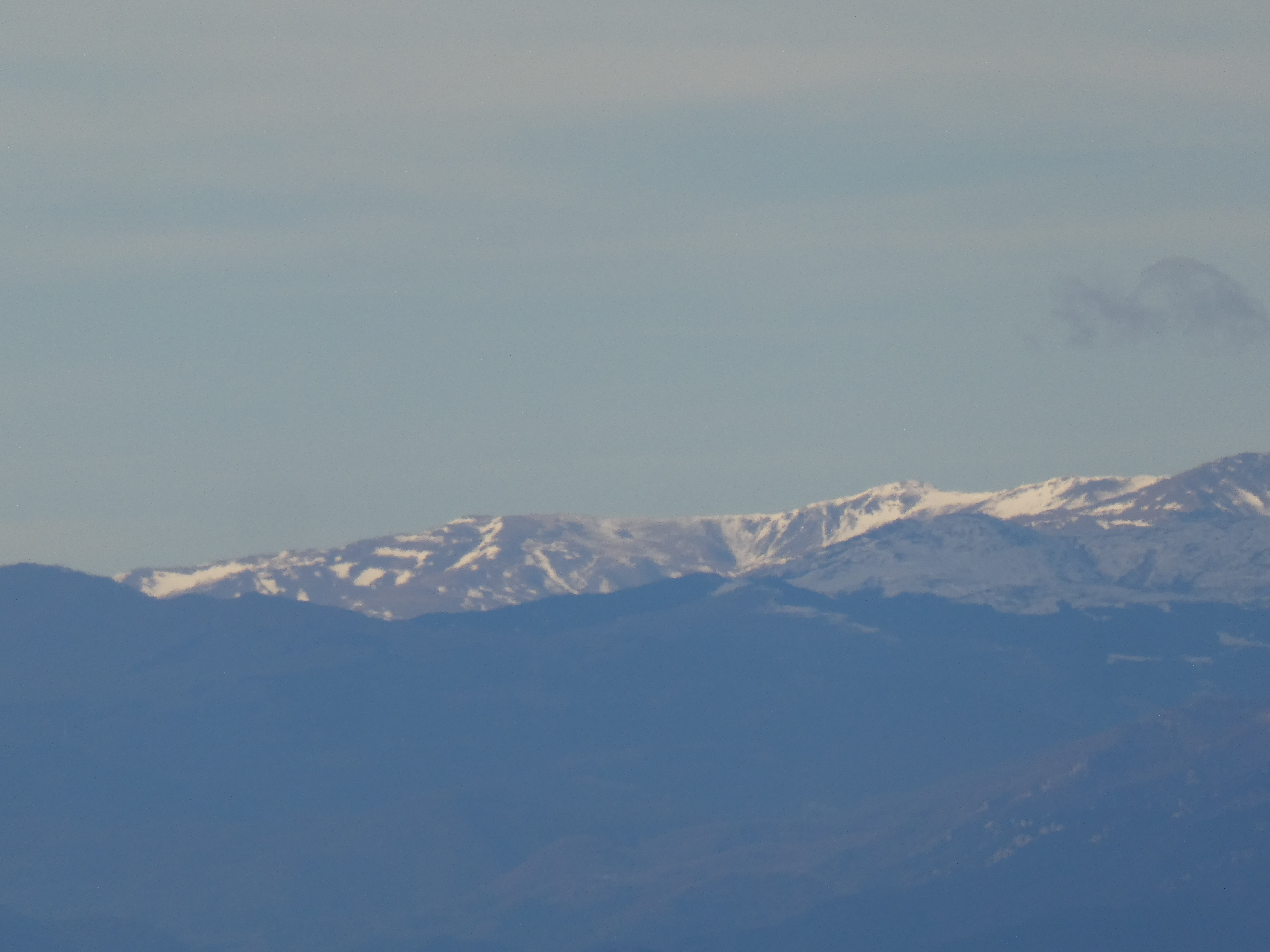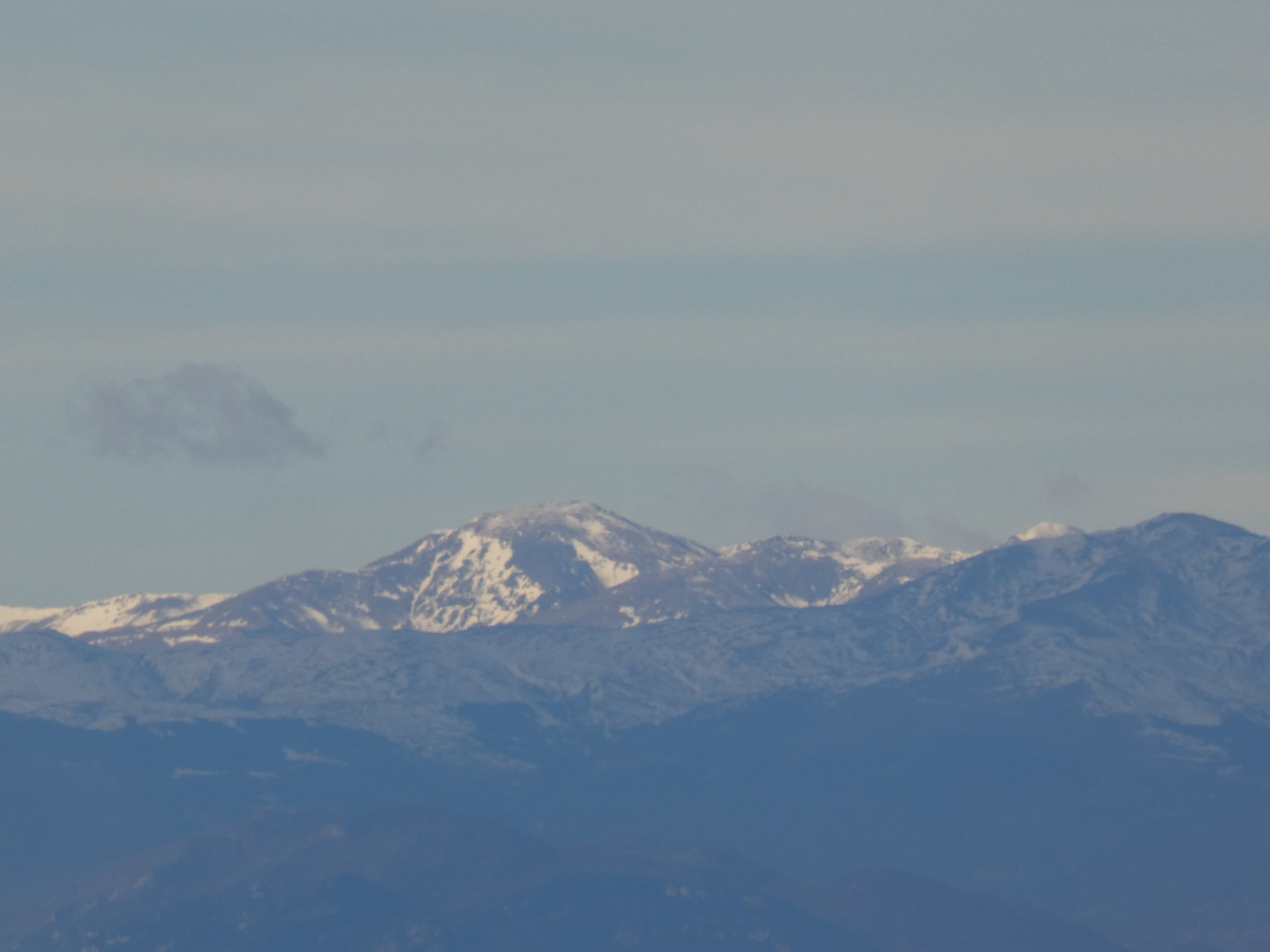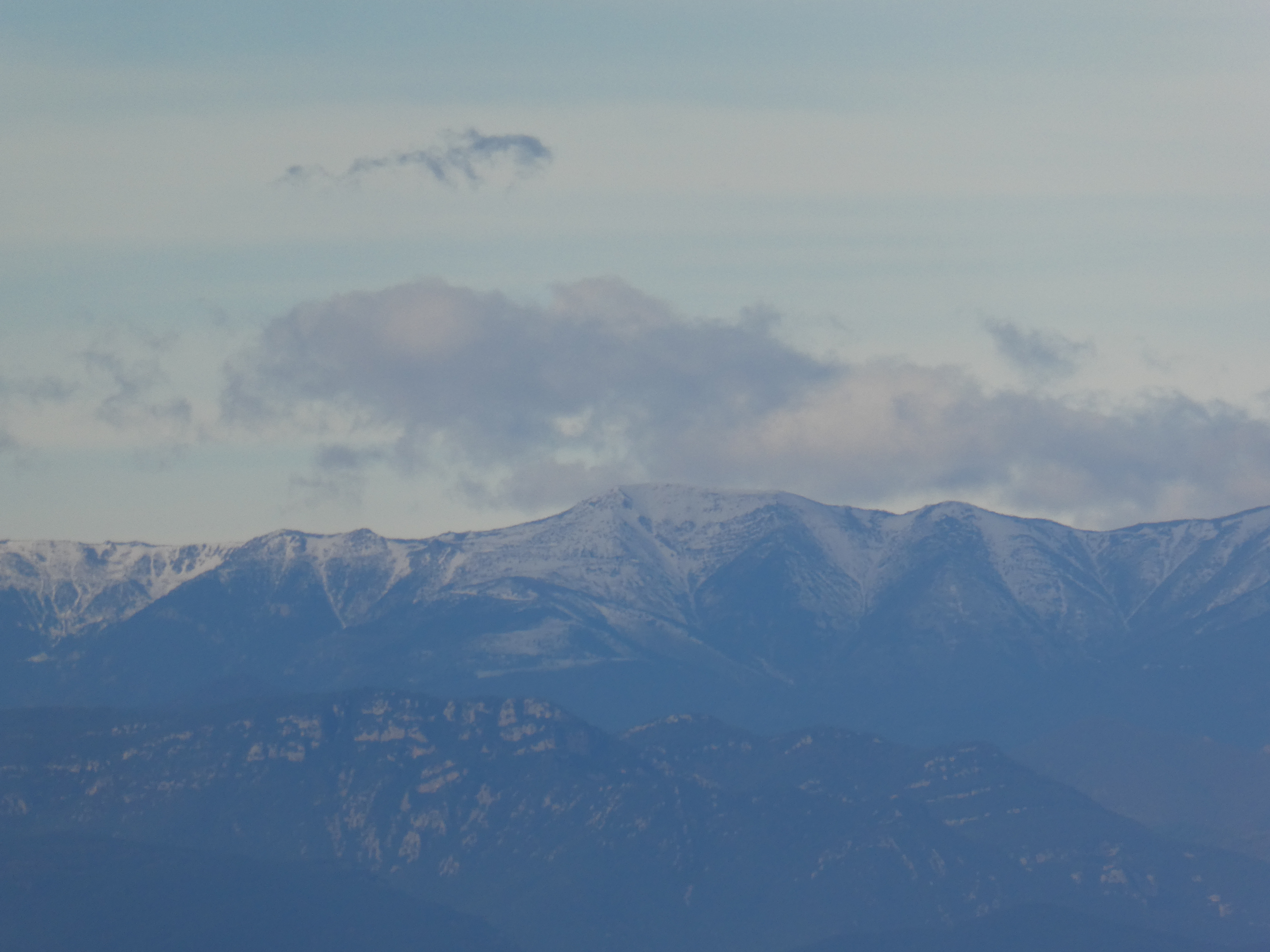 Zoom sur le Puigmal (2910 m) au centre et le Pic de Segre (2843 m) à droite