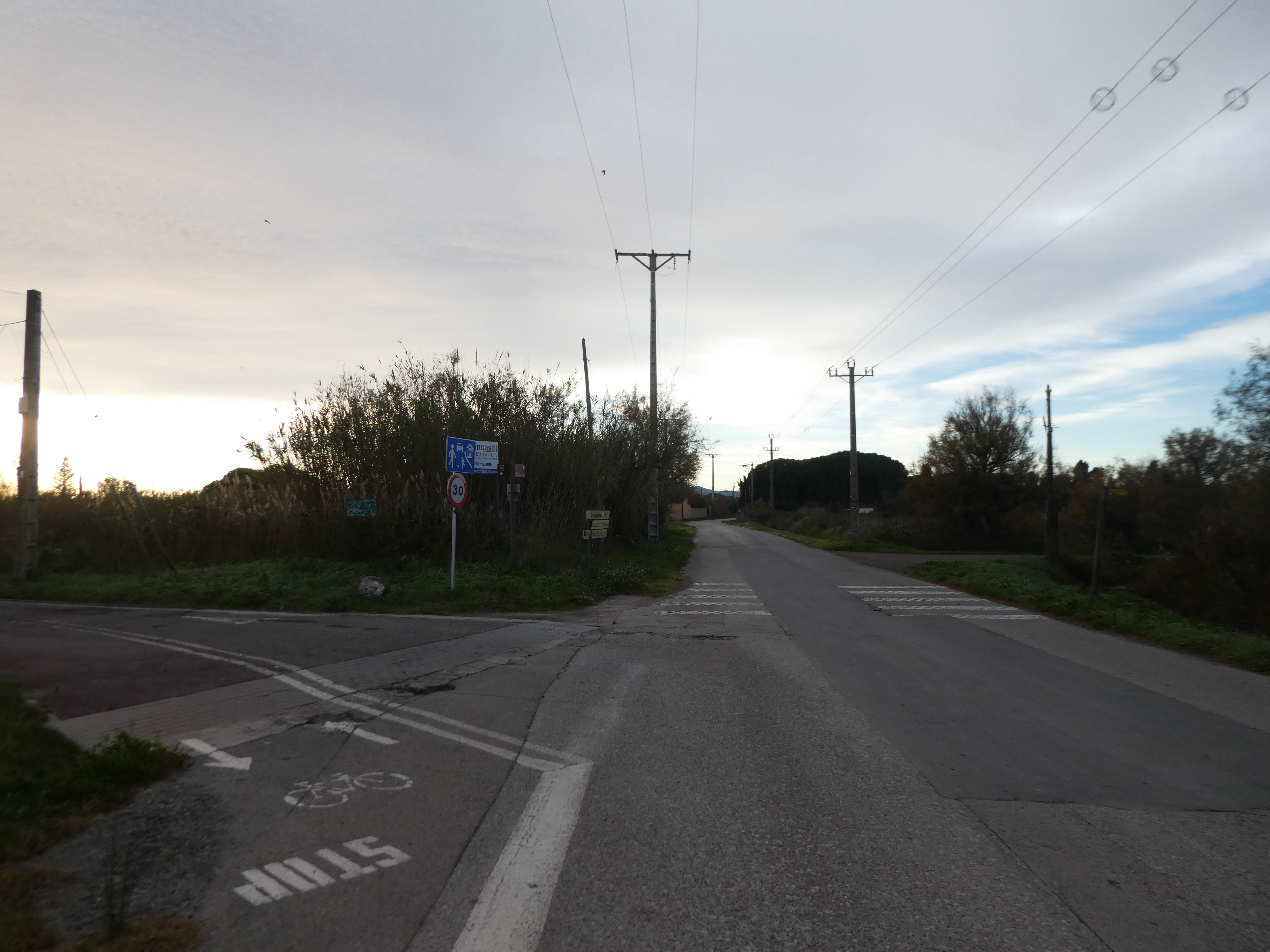 A ce croisement marqué par la présence d'un panneau directionnel (400 mètres après la précédente intersection), suivre la piste cyclable partant tout droit direction l'Estartit, aucun balisage dorénavant