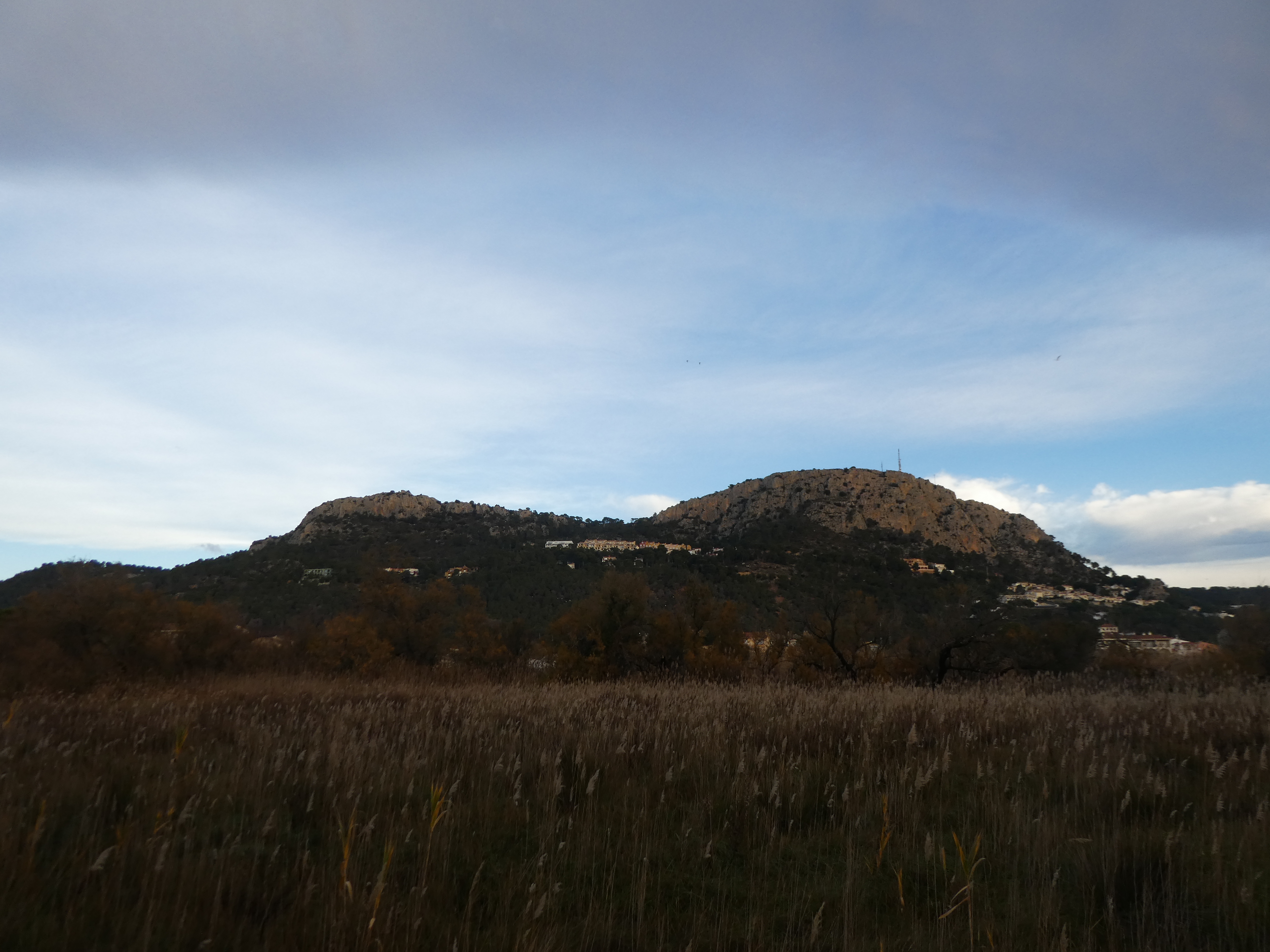 Zoom sur le Puig Alt (493 m) à gauche et el Pení (608 m) au centre
