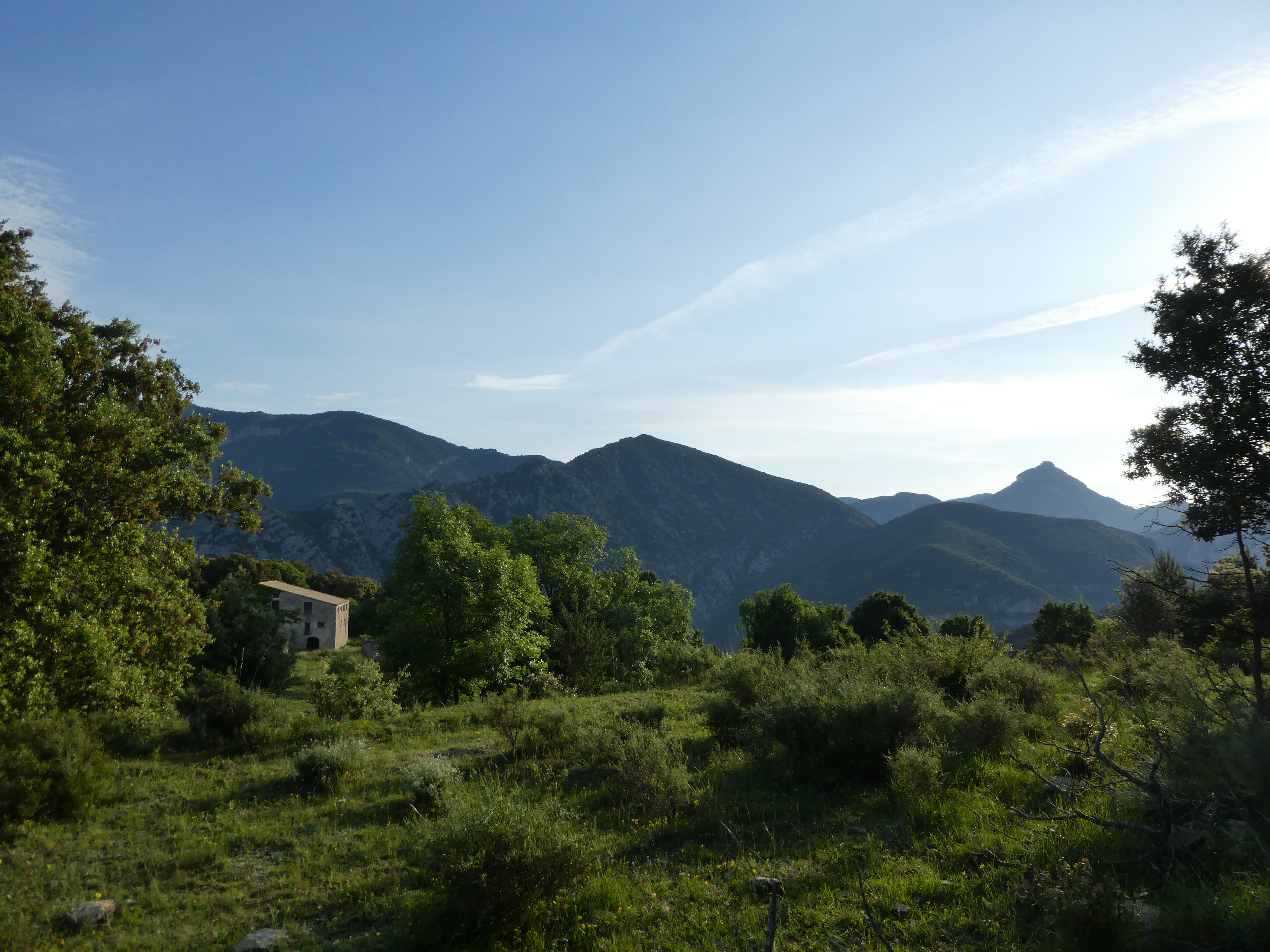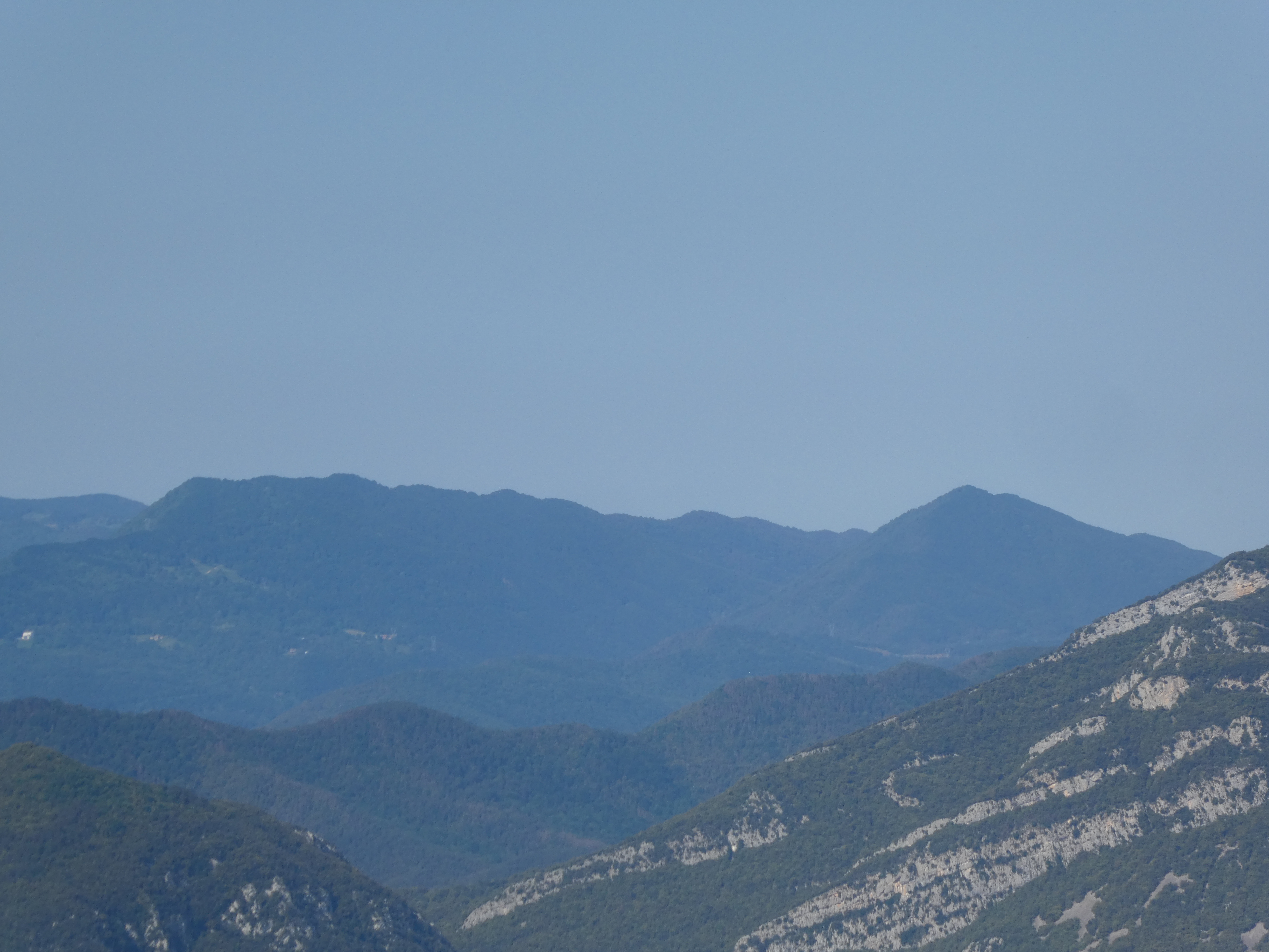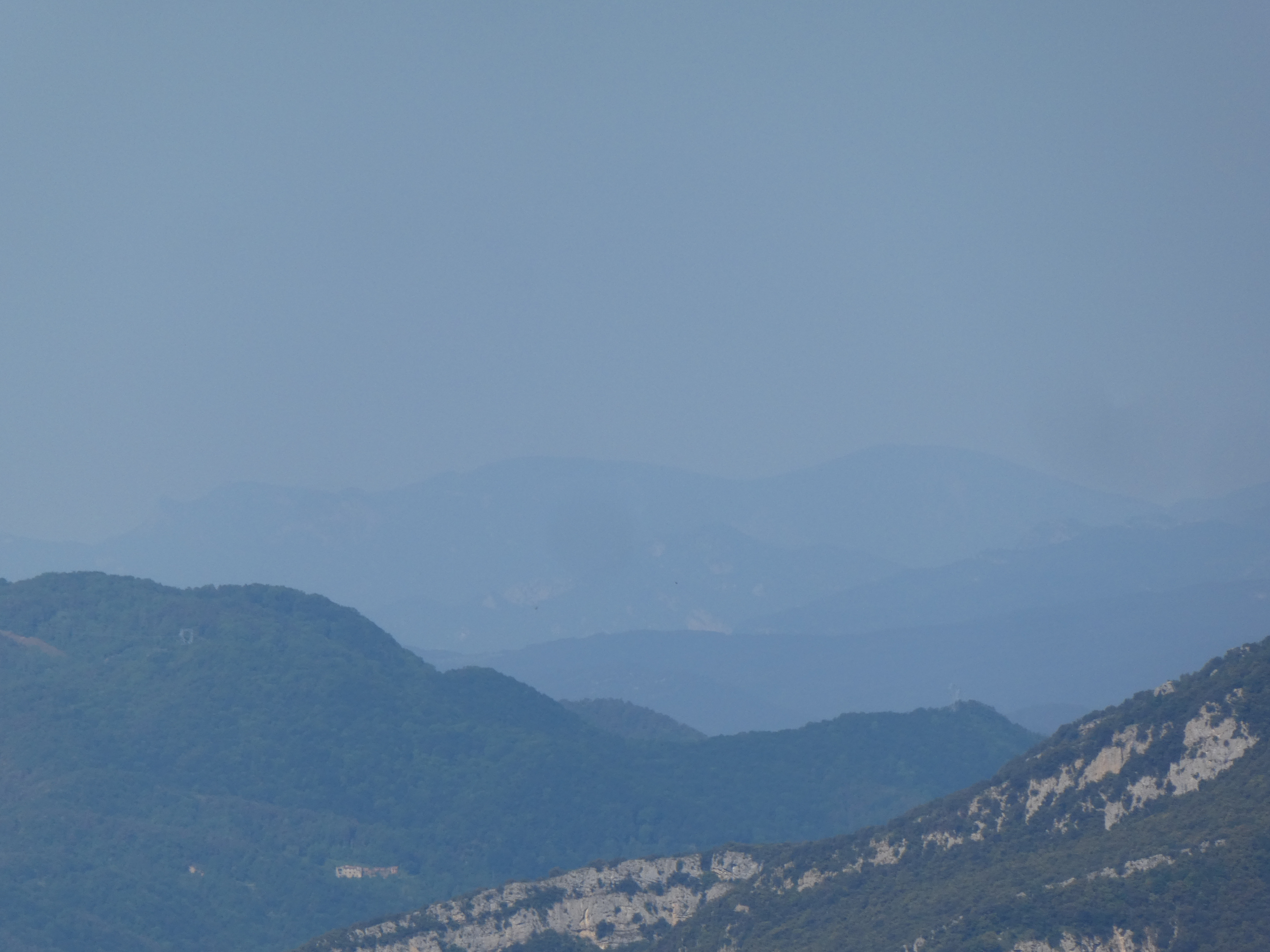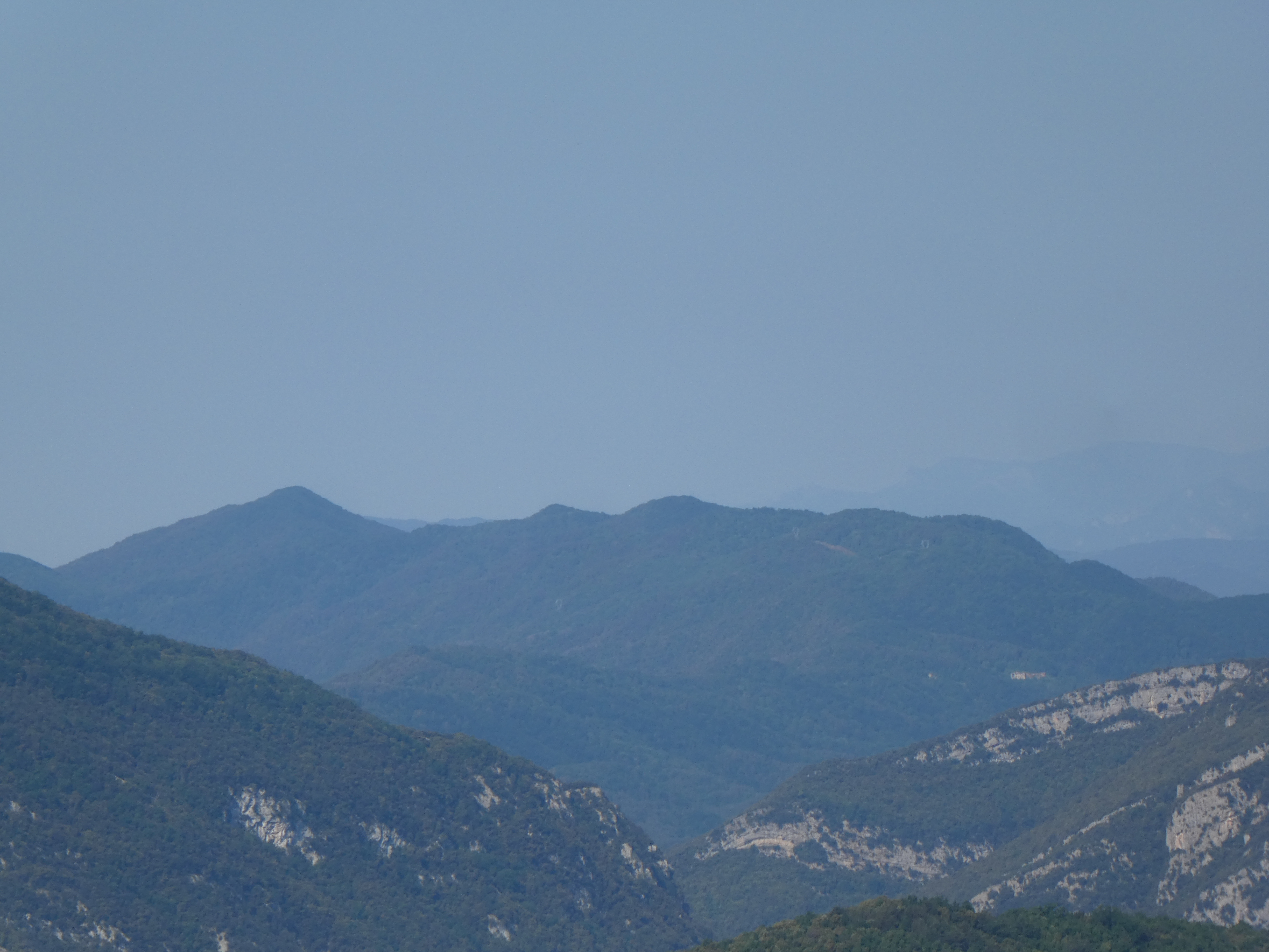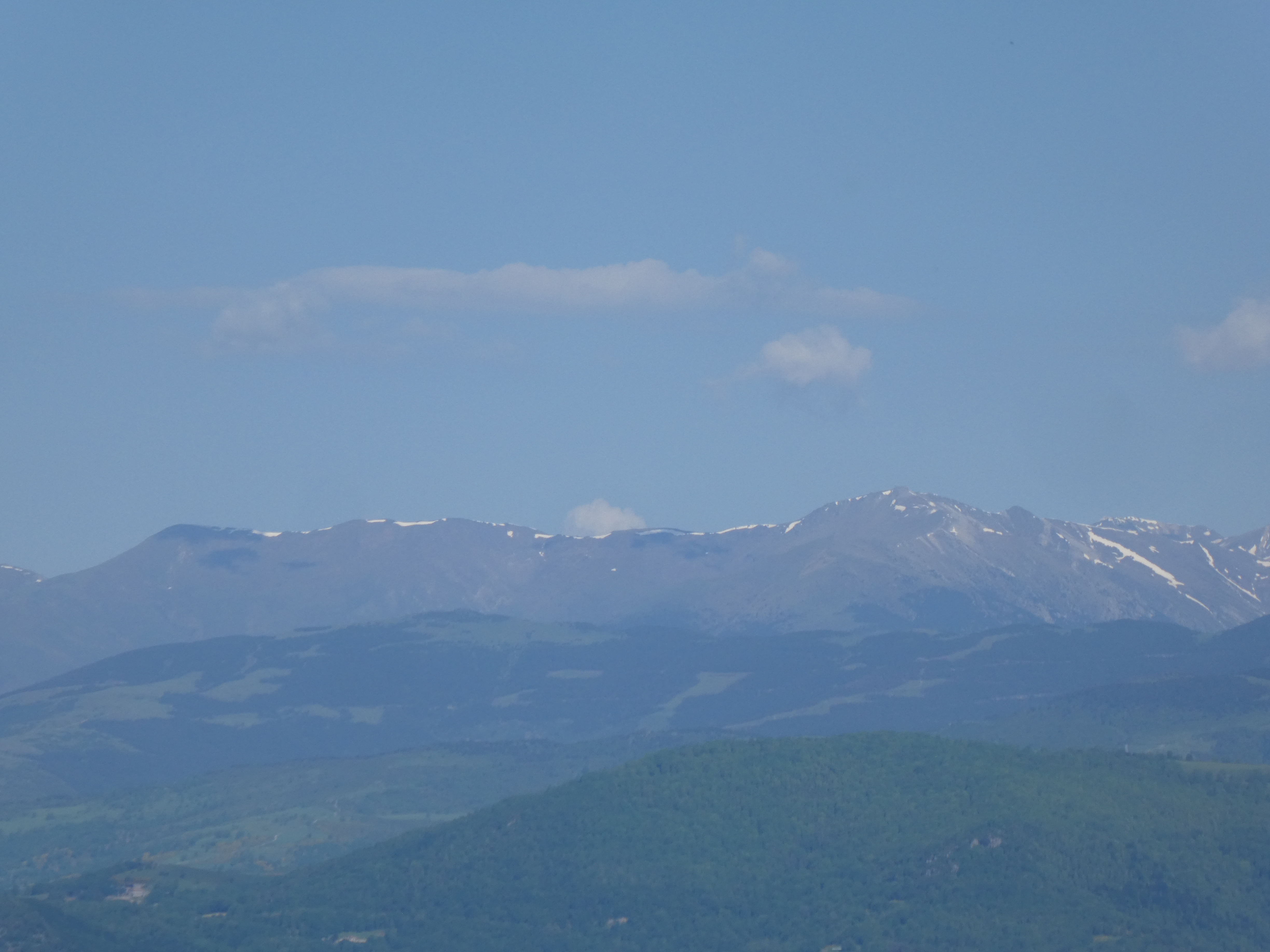 Zoom sur Santa Magdalena de Cambrils (1547 m) au centre-gauche et Milany (1529 m) à droite