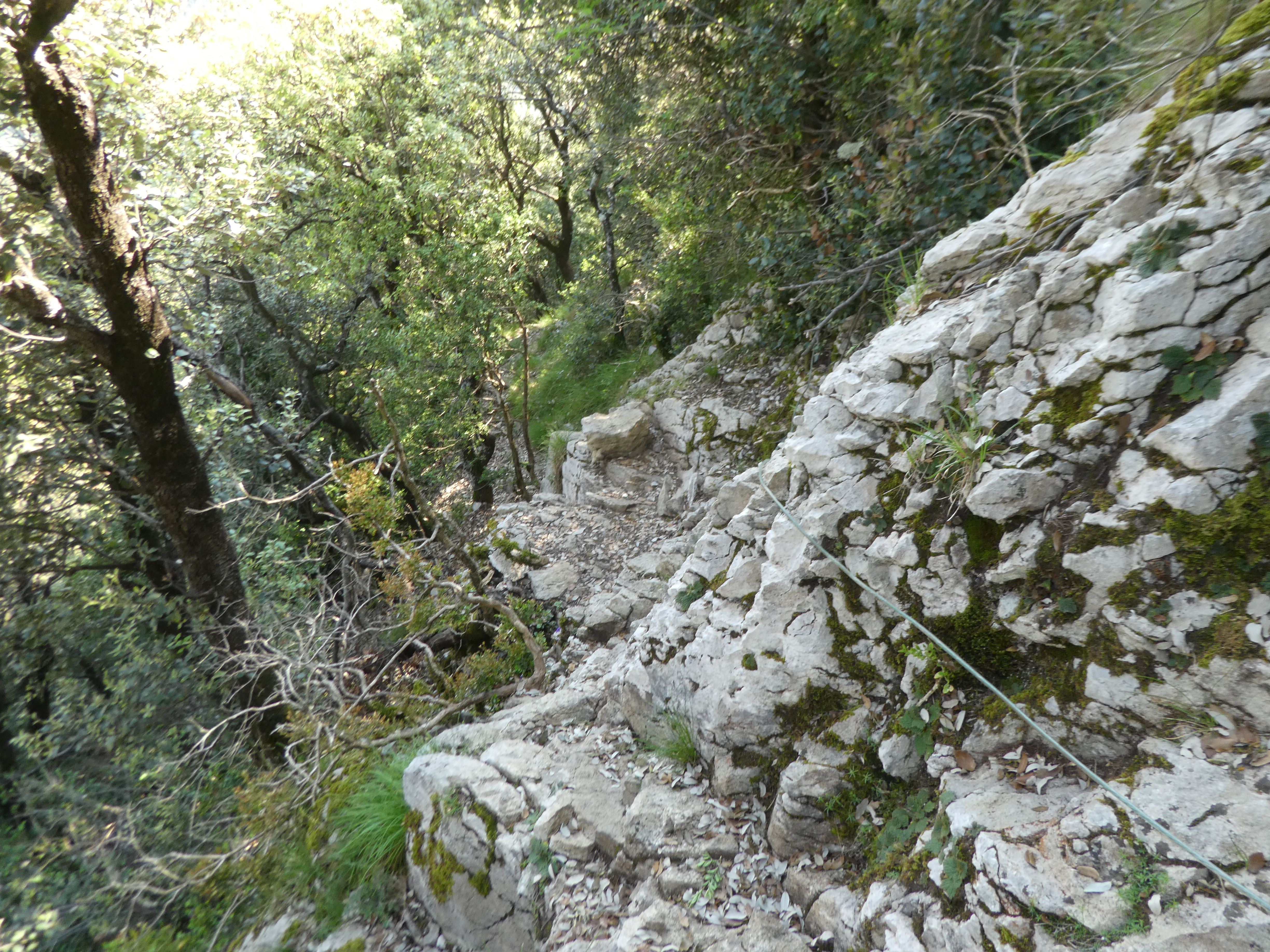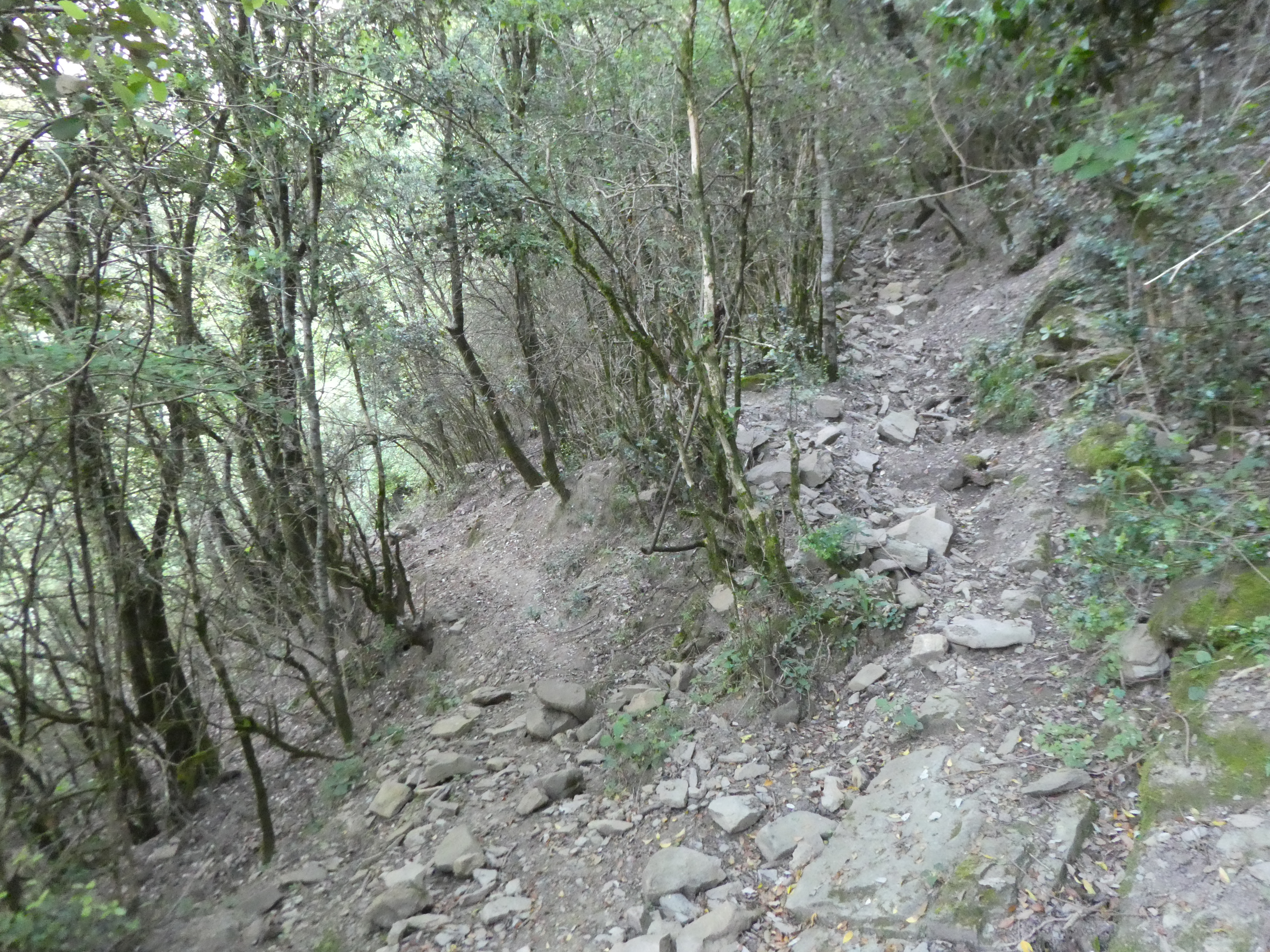 Quelques passages abrupts sur le sentier de descente vers le hameau de Talaixà : attention à ne pas glisser !