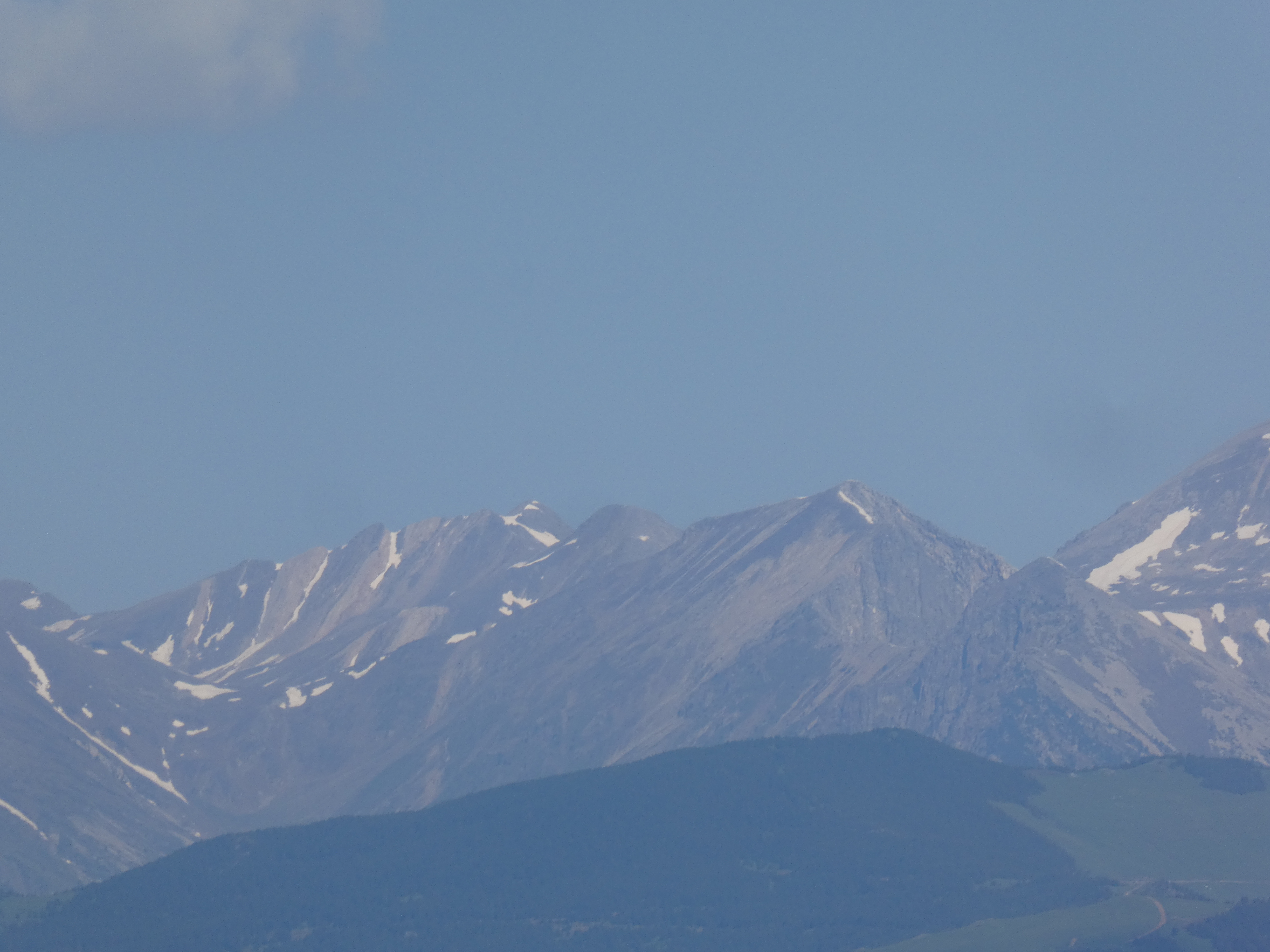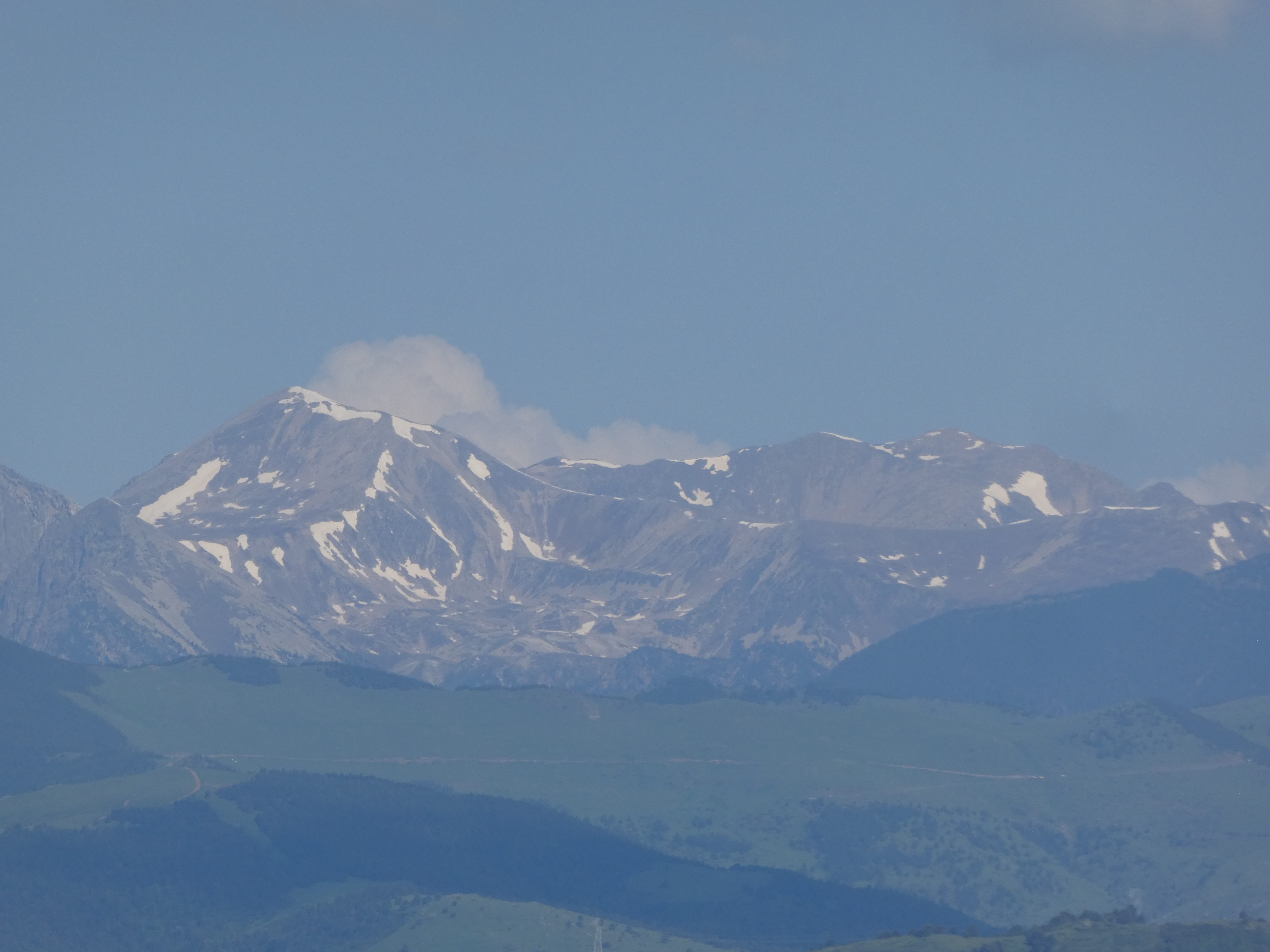 Zoom au loin sur la Torre dels Enginyers (1988 m) à gauche, les Rasos de Baix (2058 m) au centre et el Pedró (2081 m) à droite