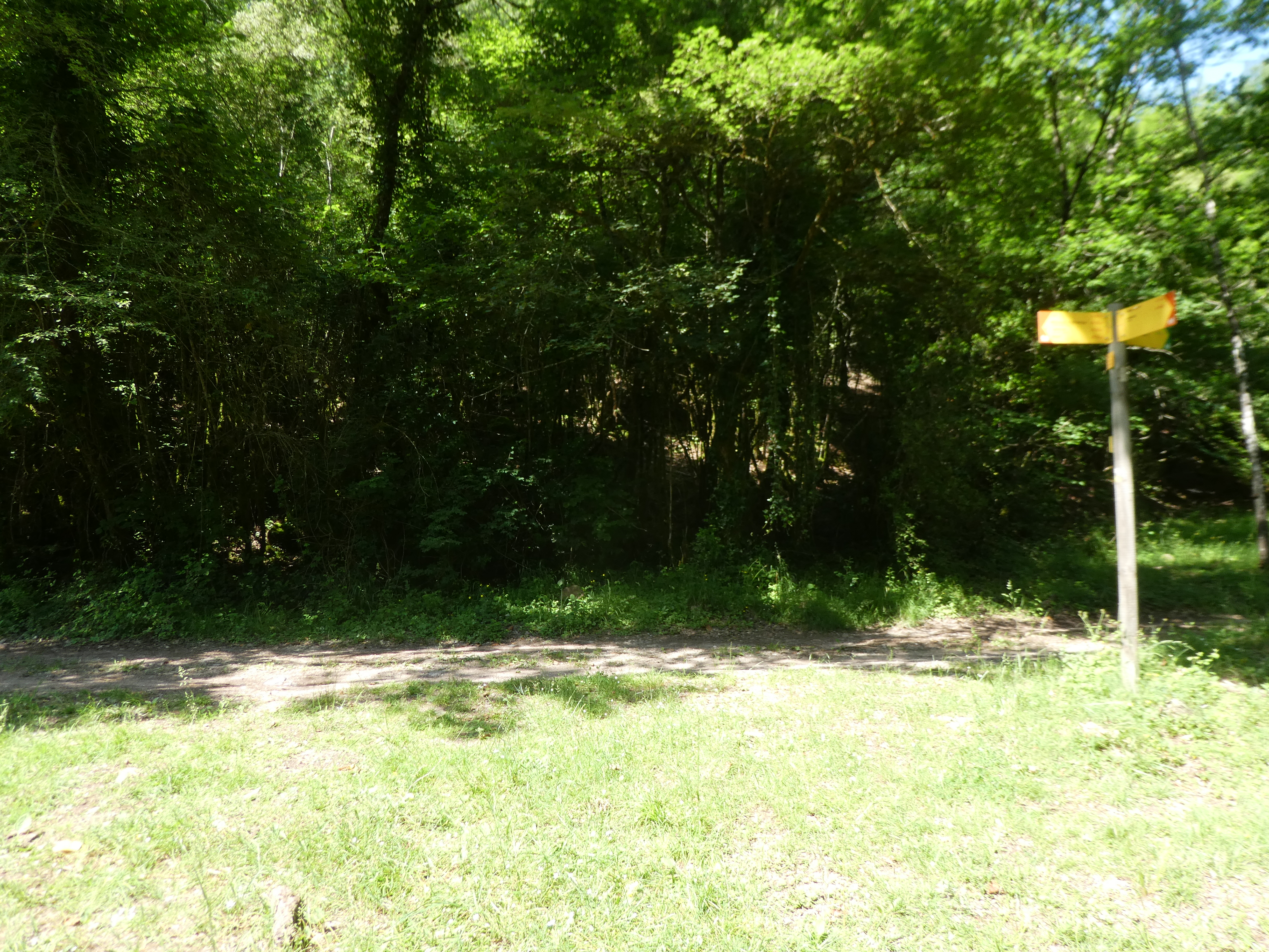 A ce croisement marqué par la présence d'un panneau directionnel (900 mètres après le lieu-dit "la Plantada"), suivre la piste partant sur la droite direction Oix, balisé en jaune