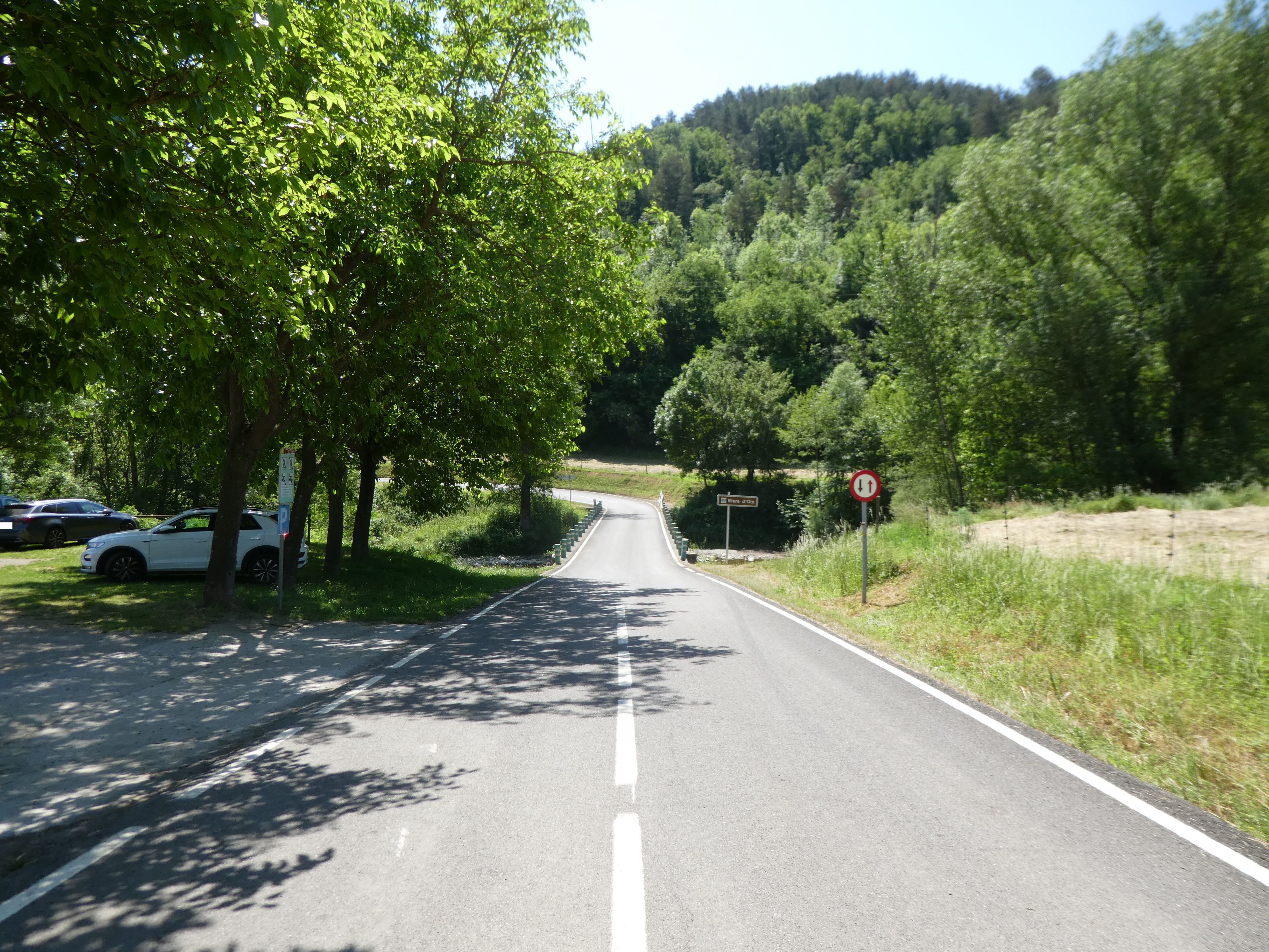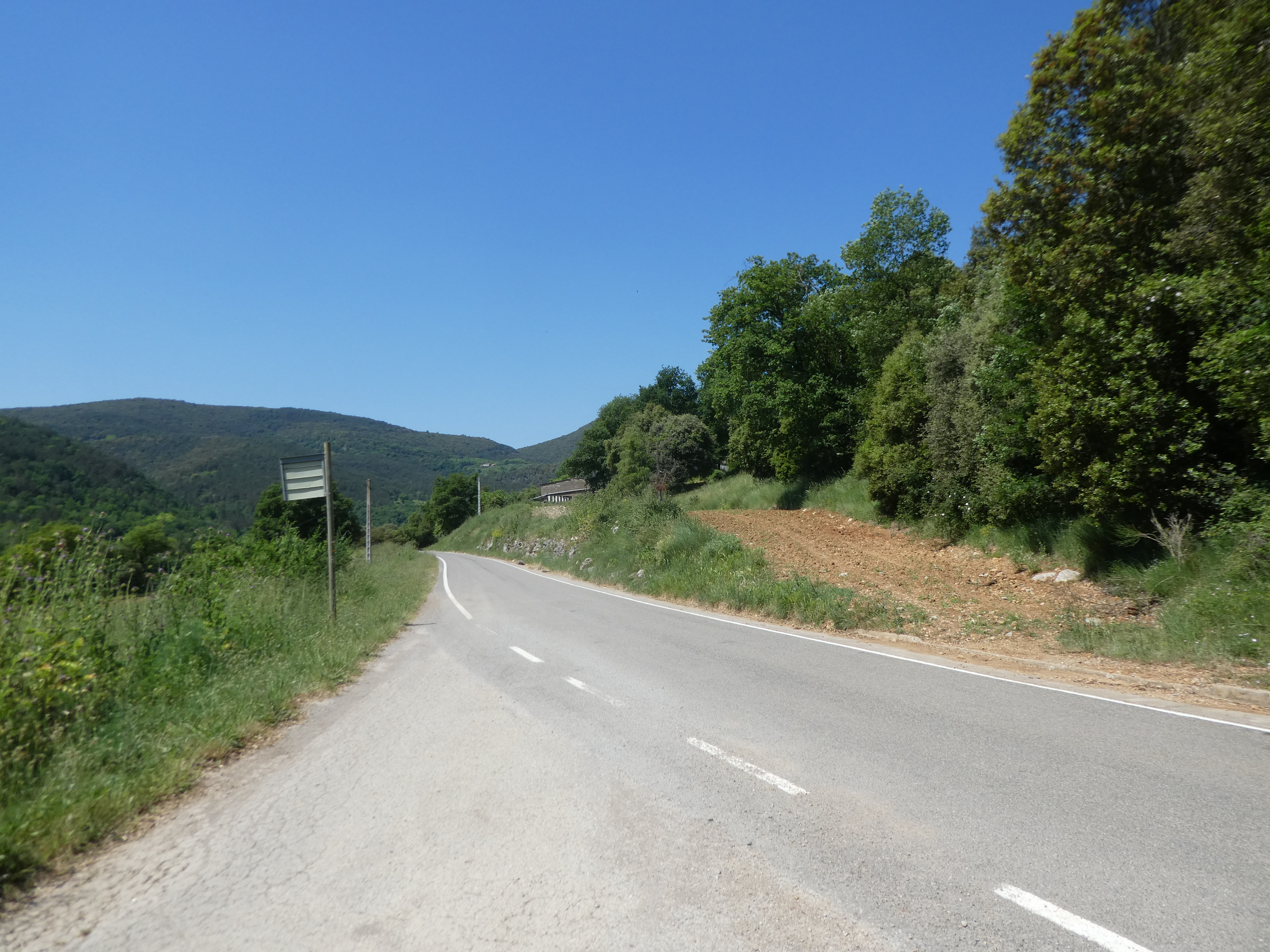 A ce croisement avec la GIV-5221 marqué par la présence d'un panneau directionnel (2300 mètres après le lieu-dit "Pont Trencat"), suivre cette dernière partant tout droit direction Oix, balisé en jaune