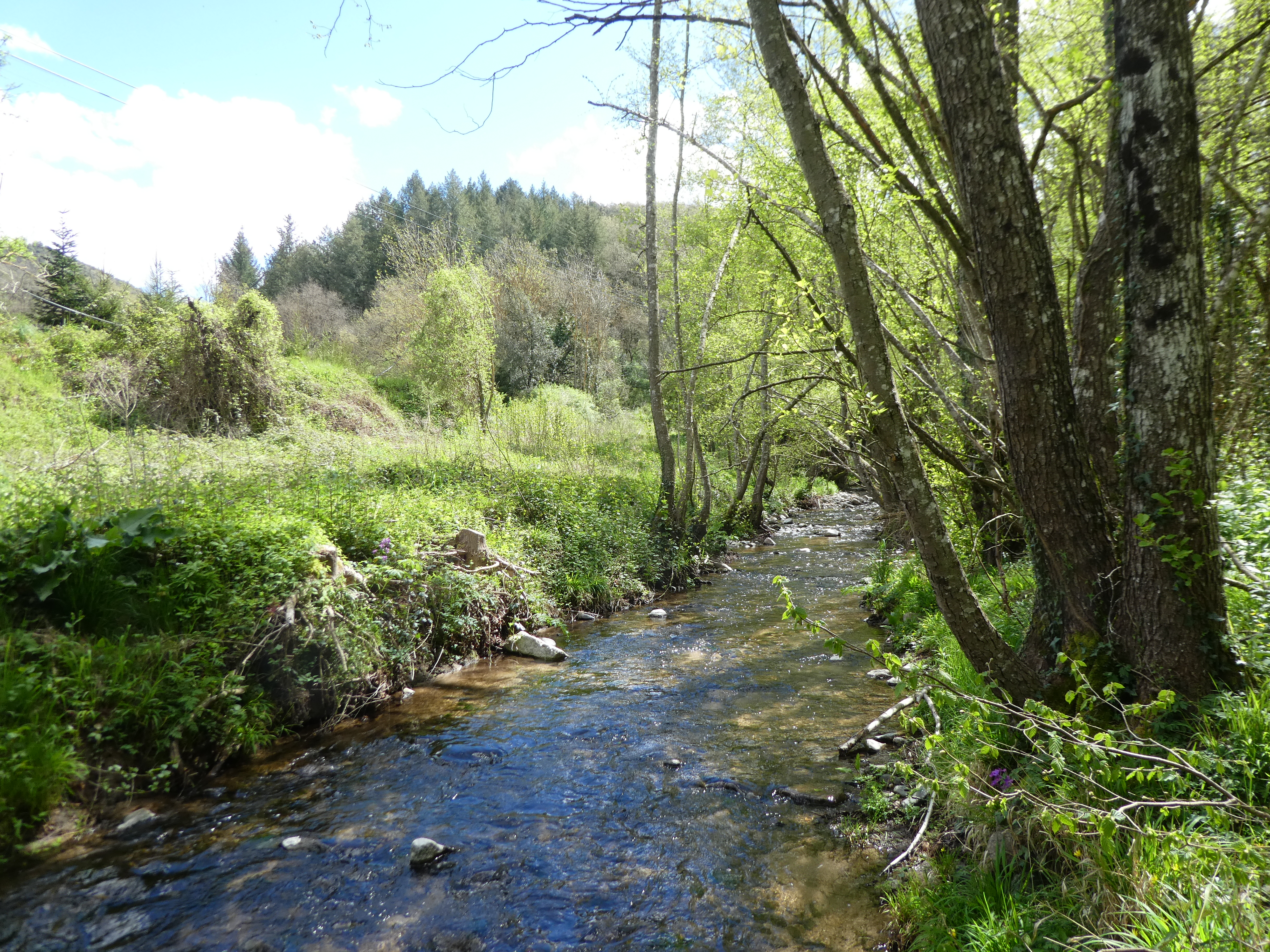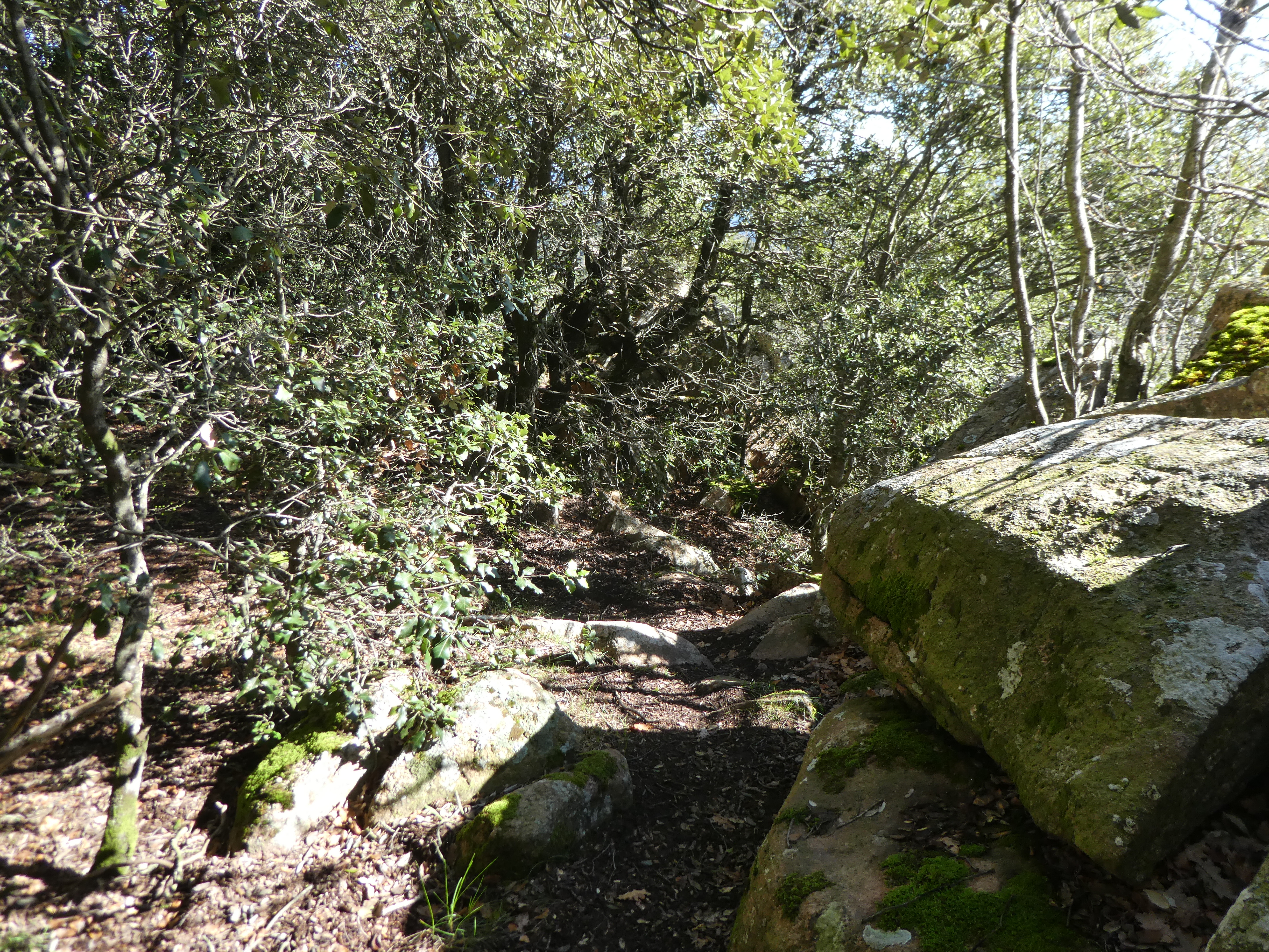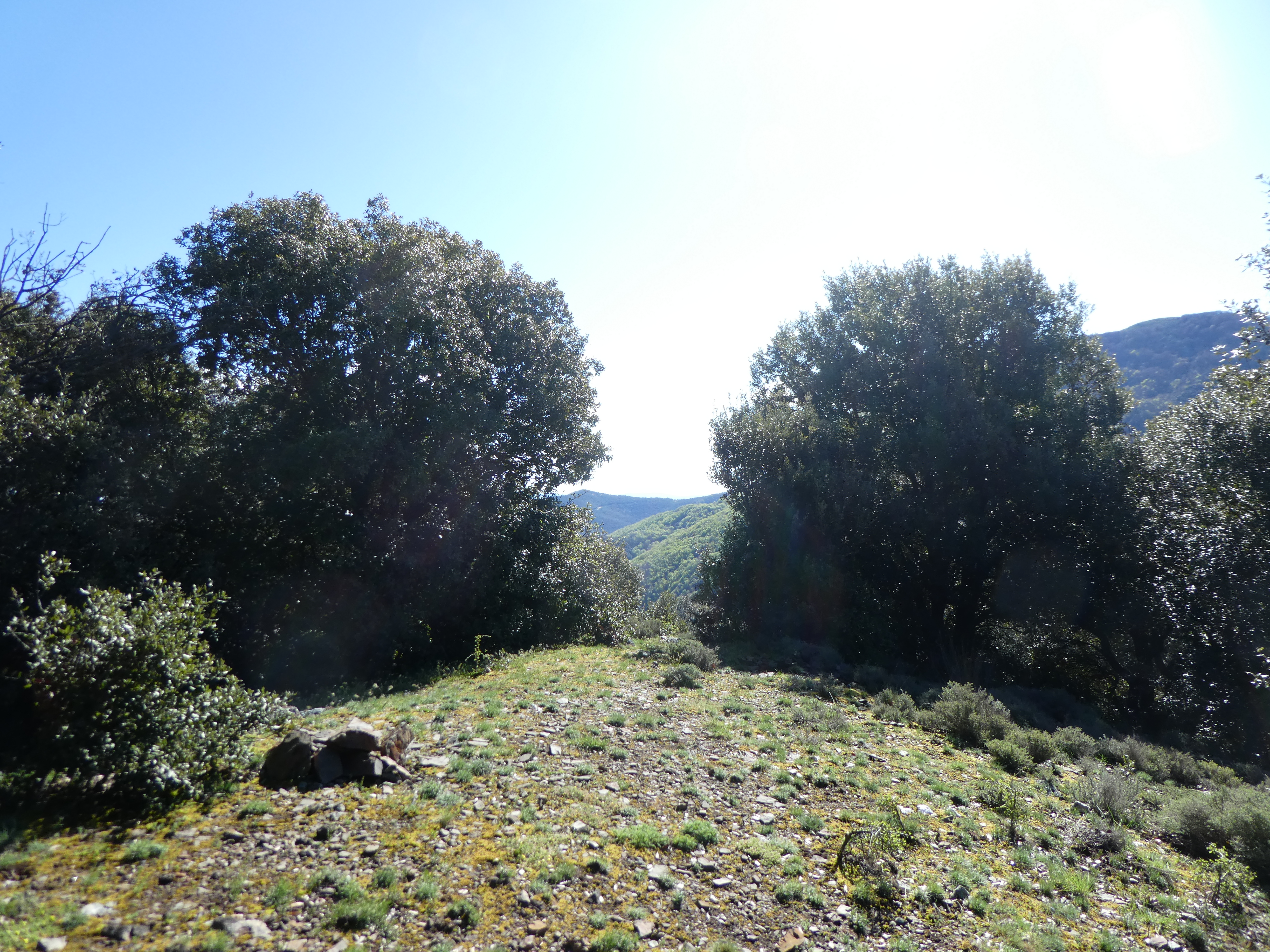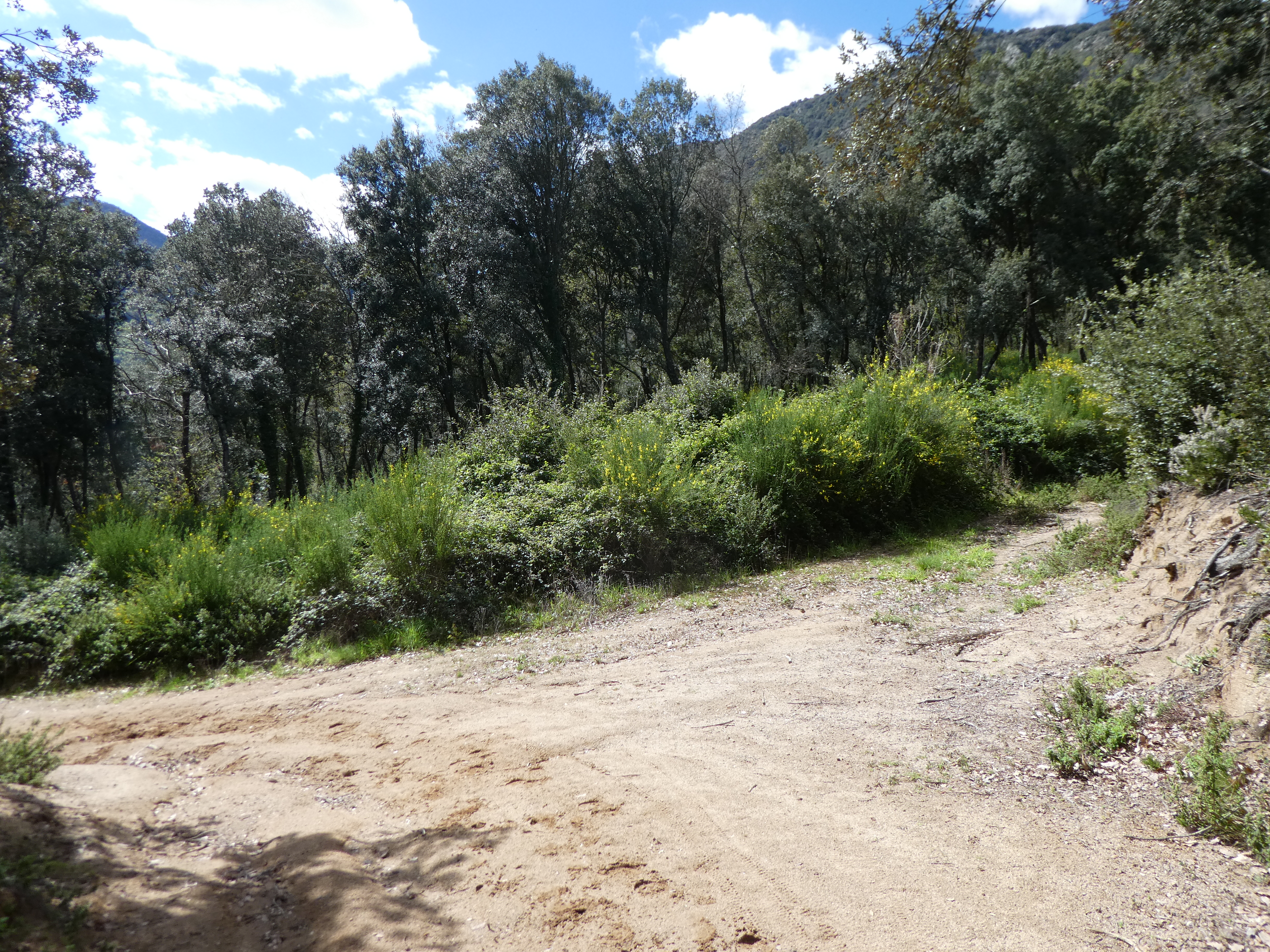 Mas la Sala (746 m) : suivre le chemin partant tout droit puis celui partant sur la droite quelques mètres plus loin et contournant la propriété du Mas la Sala direction Gorg Negre, aucun balisage dorénavant