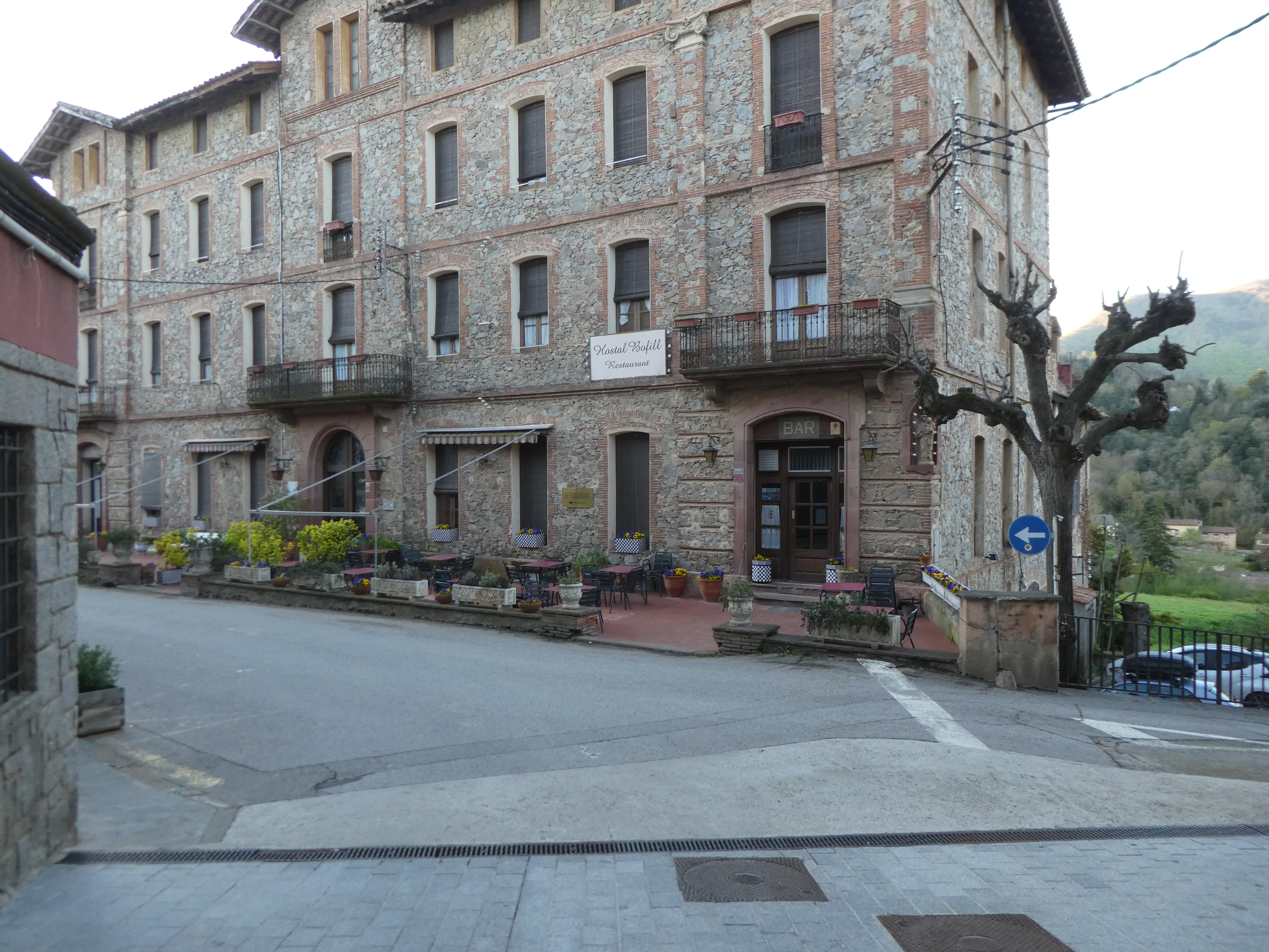 A cette intersection située au niveau de l'Hostal Bofill (150 mètres après la précédente), suivre la rue partant sur la gauche (Carrer de Sant Marçal) direction Matagalls, balisé en jaune et blanc, et en vert et blanc