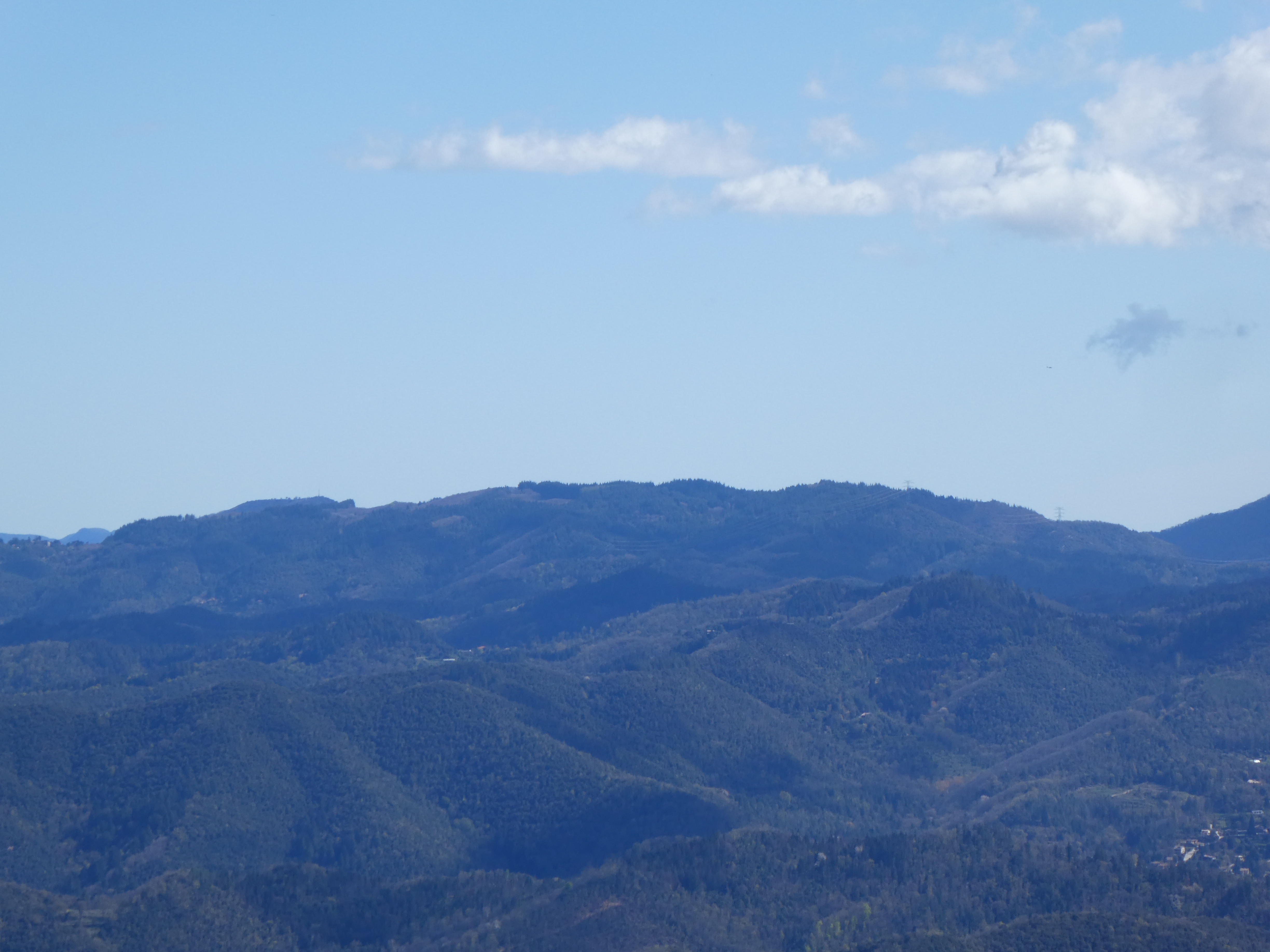 Zoom sur le Comanegra (1554 m) à gauche, et le Puig de les Bruixes (1391 m) et le Puig de Sant Marc (1327 m) à droite
